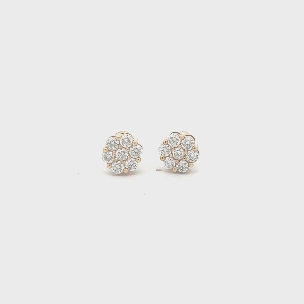 14K GOLD DIAMOND 7-STONE FLOWER EARRINGS 1.60 CT