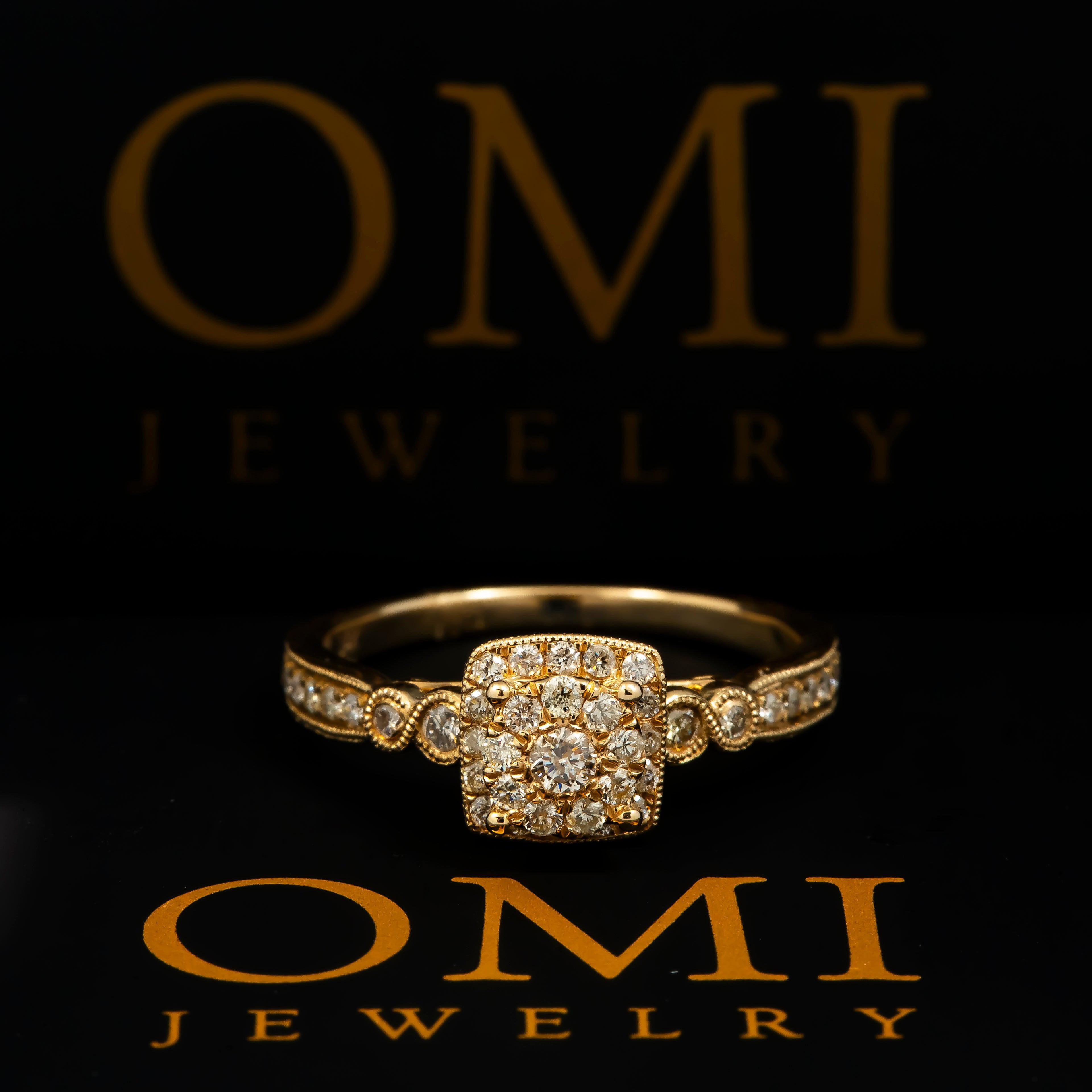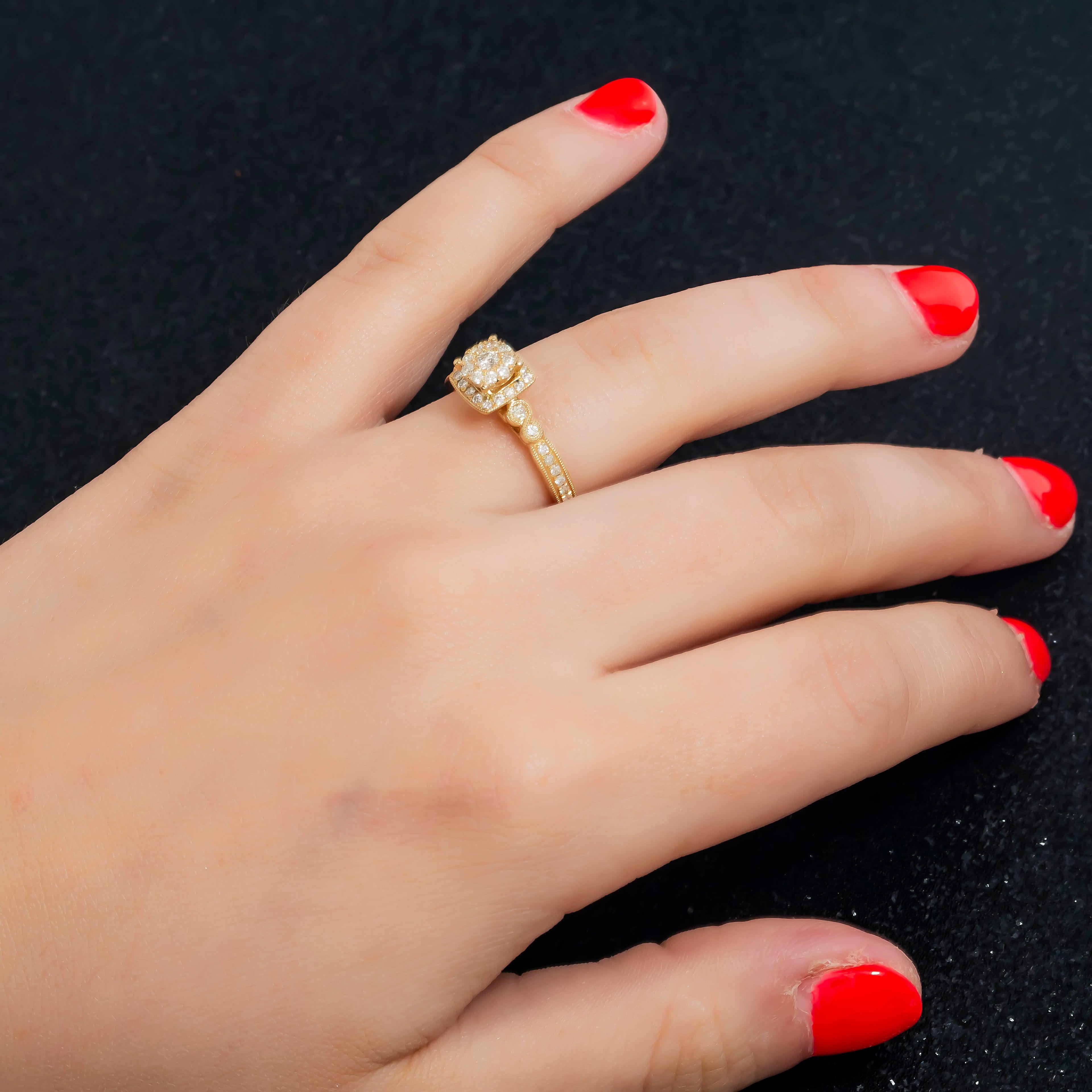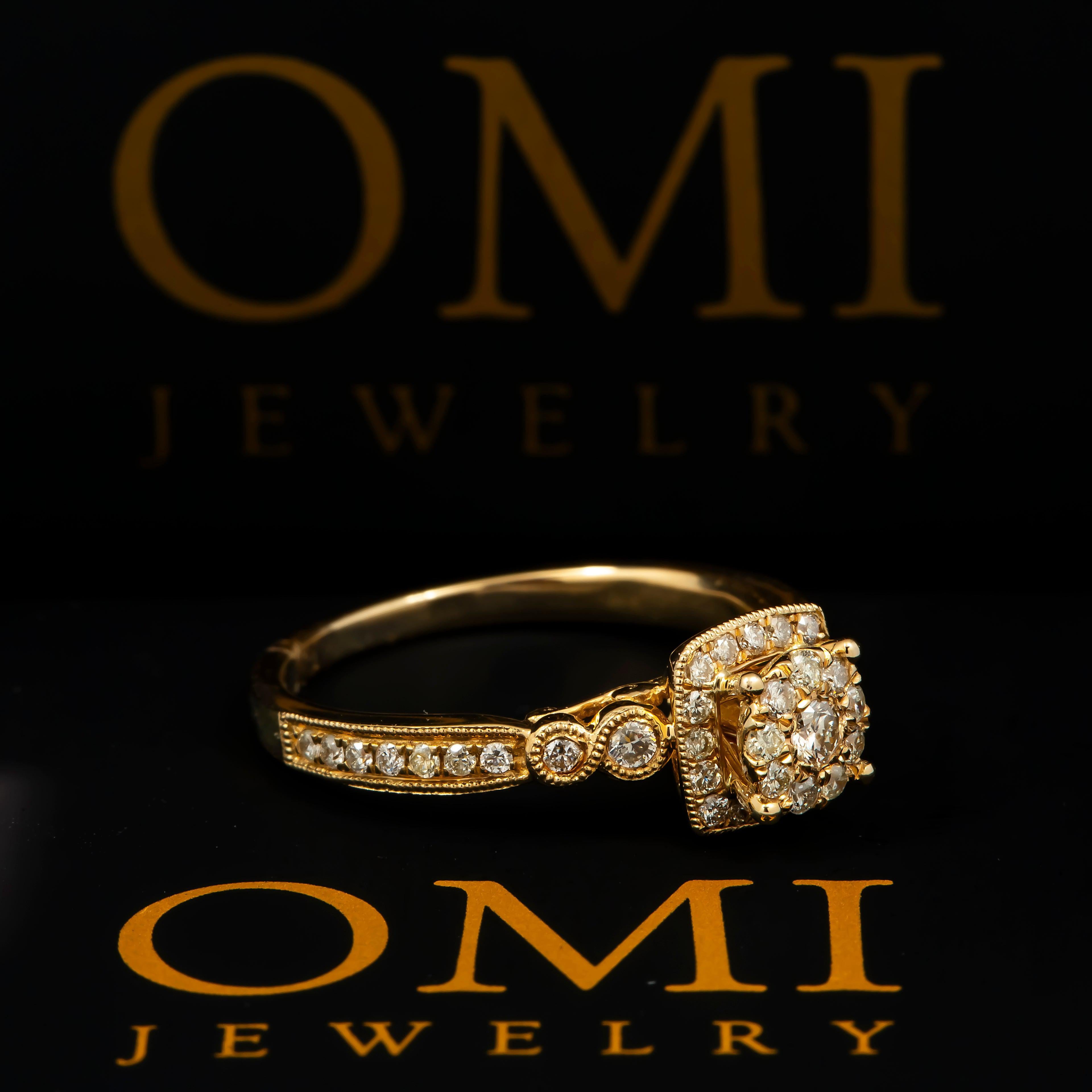 14K GOLD ROUND DIAMOND CLUSTER ENGAGEMENT RING 0.57 CT