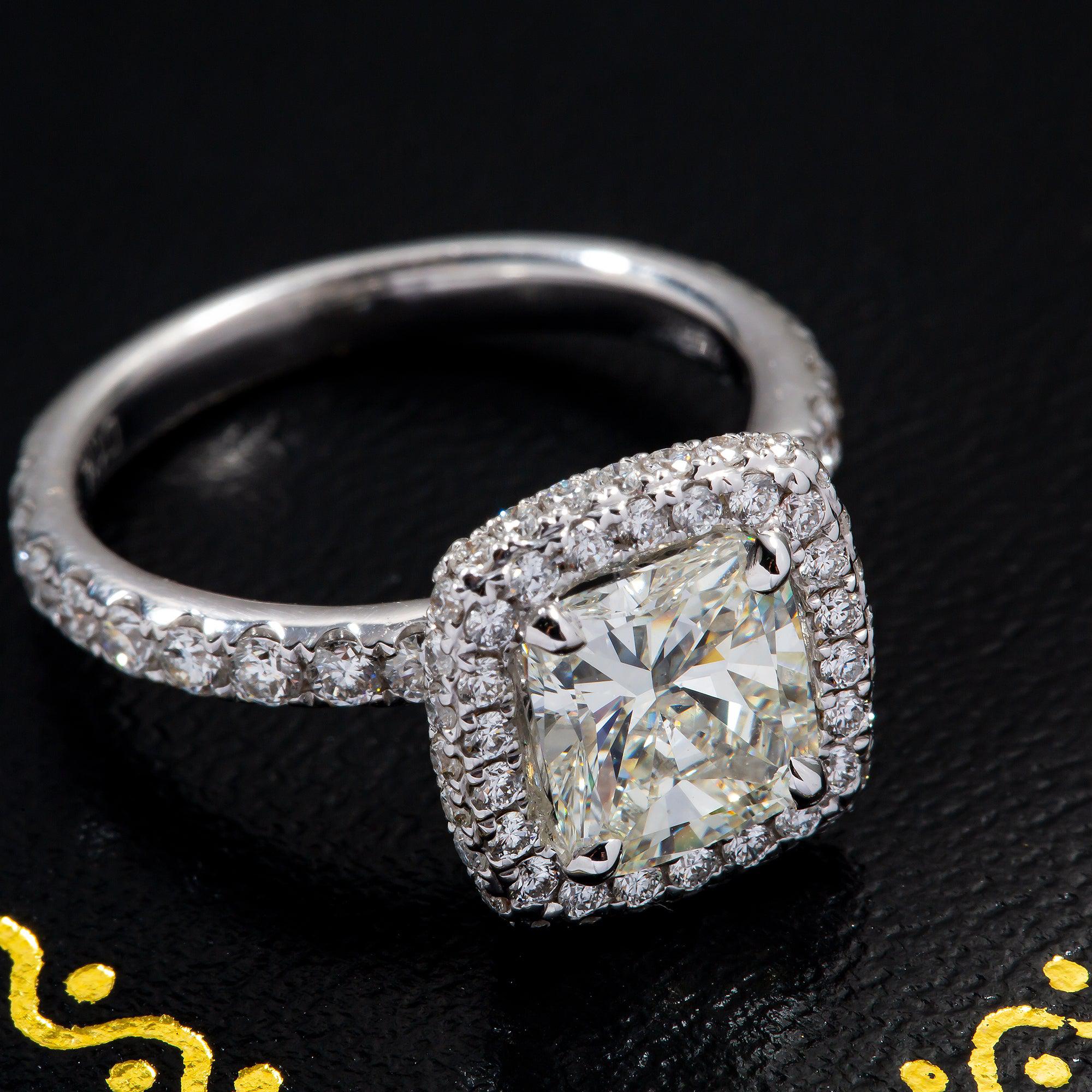 18K GOLD CUSHION CUT DIAMOND ENGAGEMENT RING 2.5 CT GIA