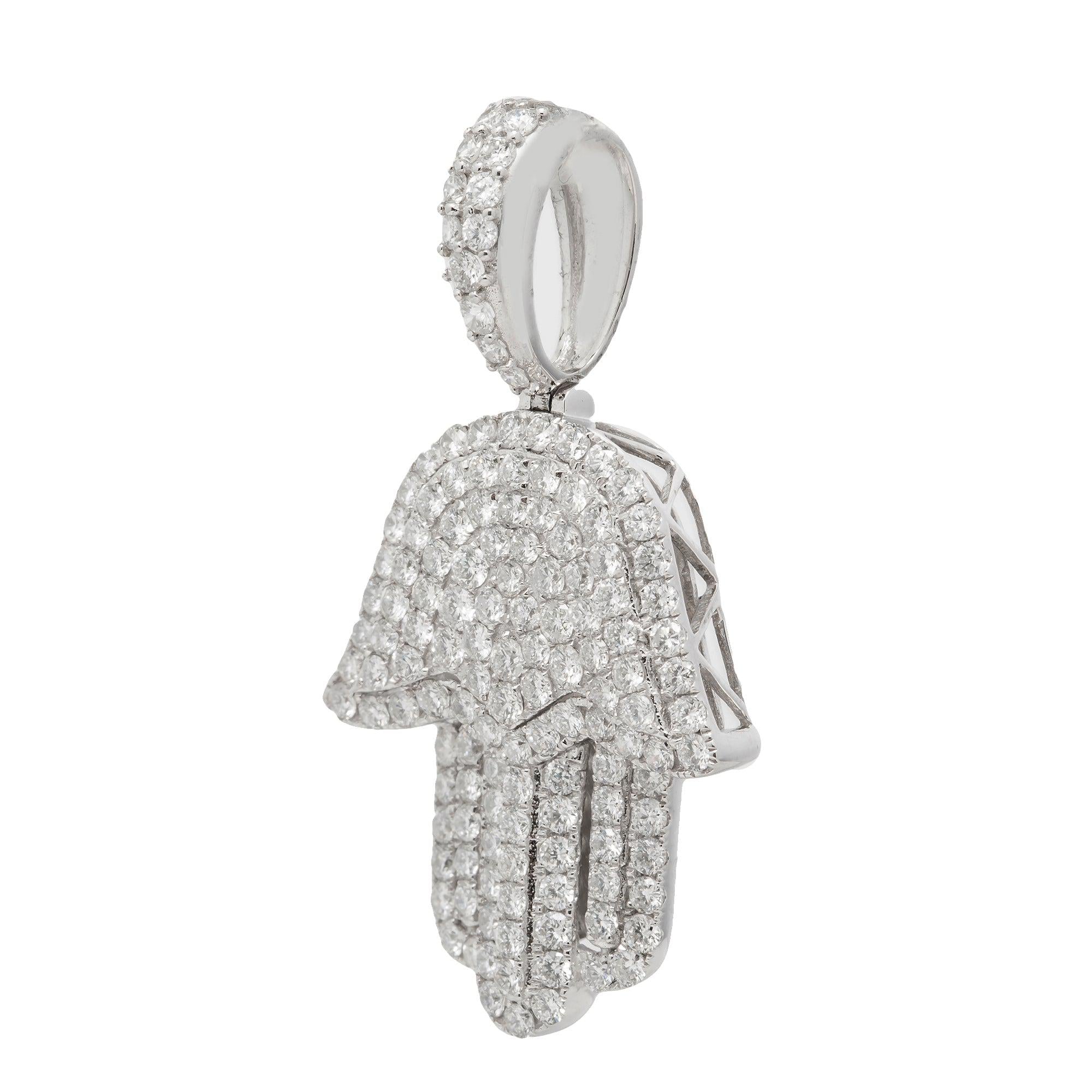 14K GOLD DIAMOND HAMSA PENDANT 4 CT