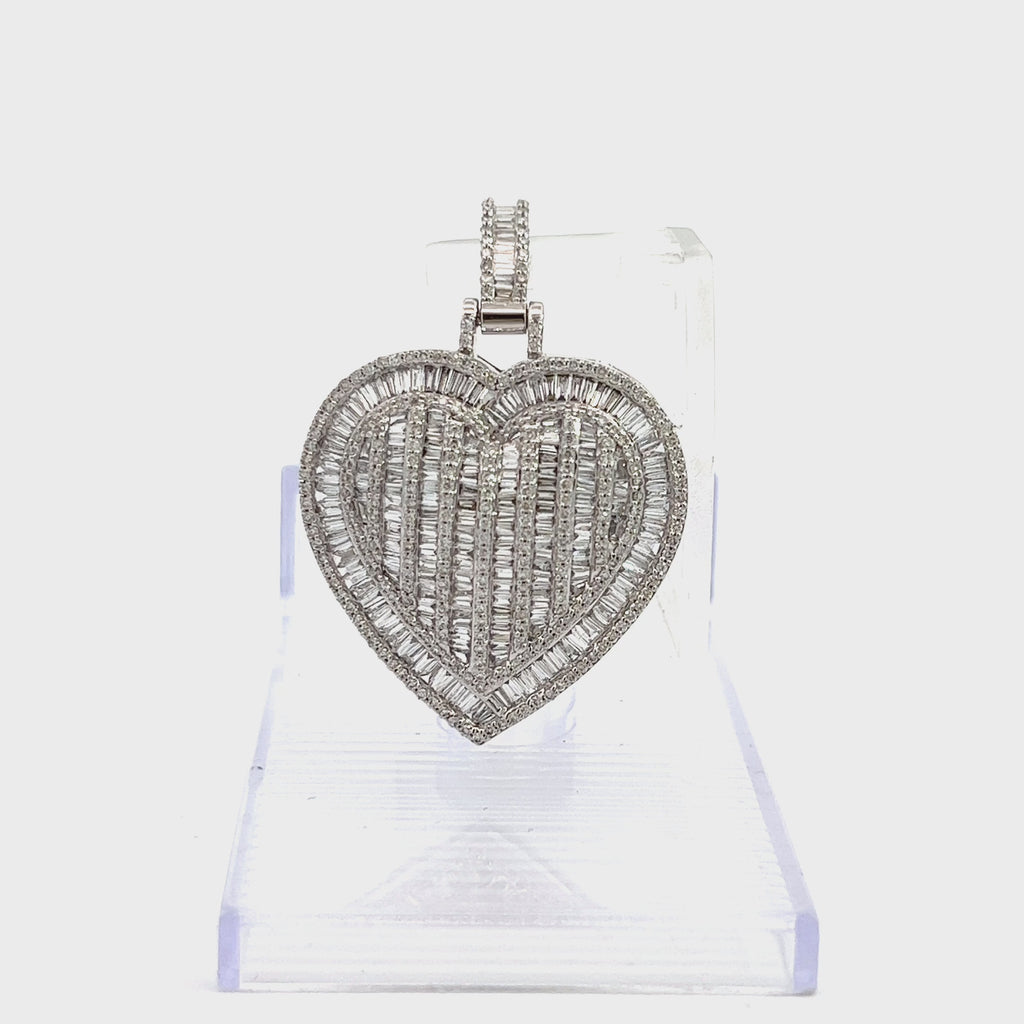 14K GOLD BAGUETTE AND ROUND DIAMOND HEART PENDANT 2.38 CT