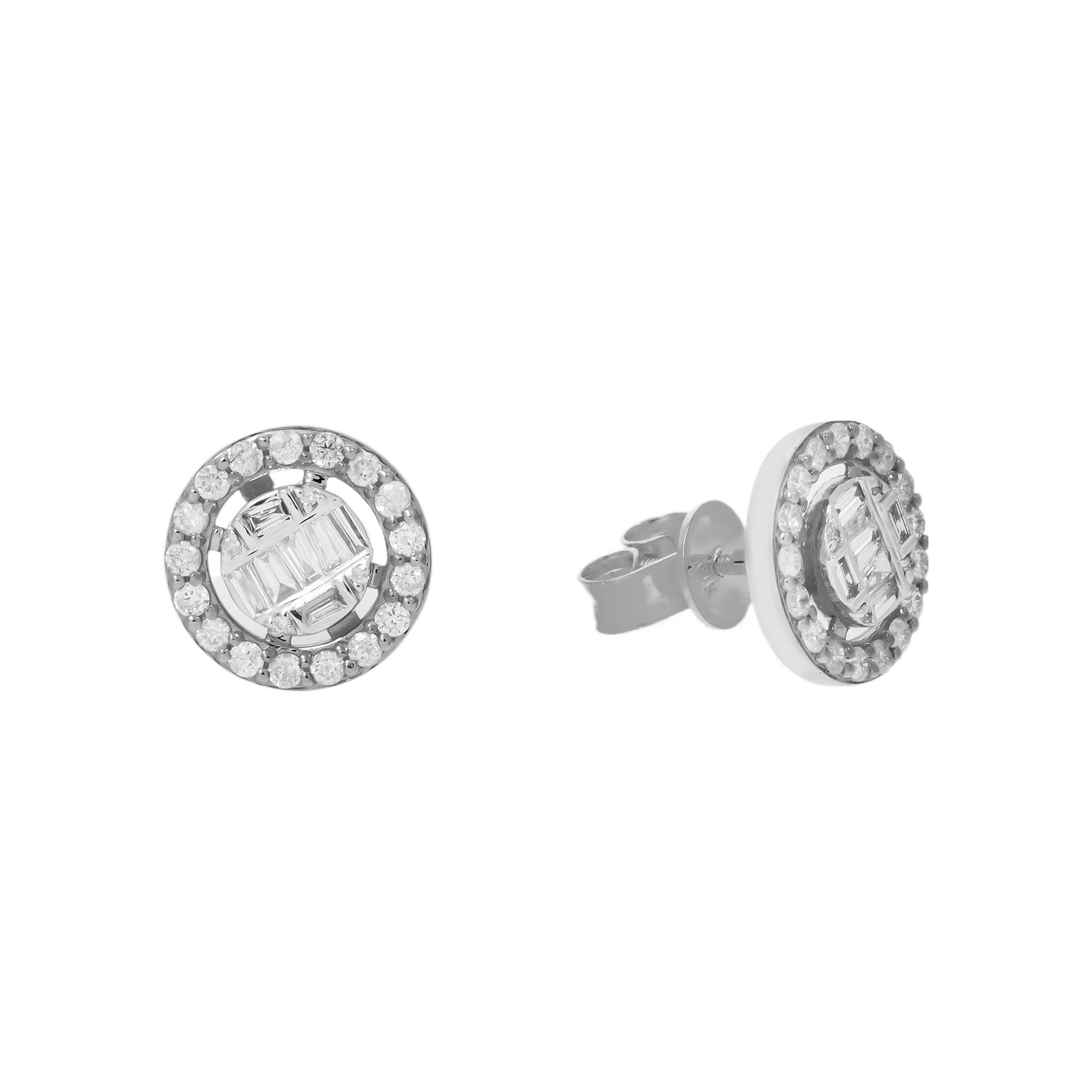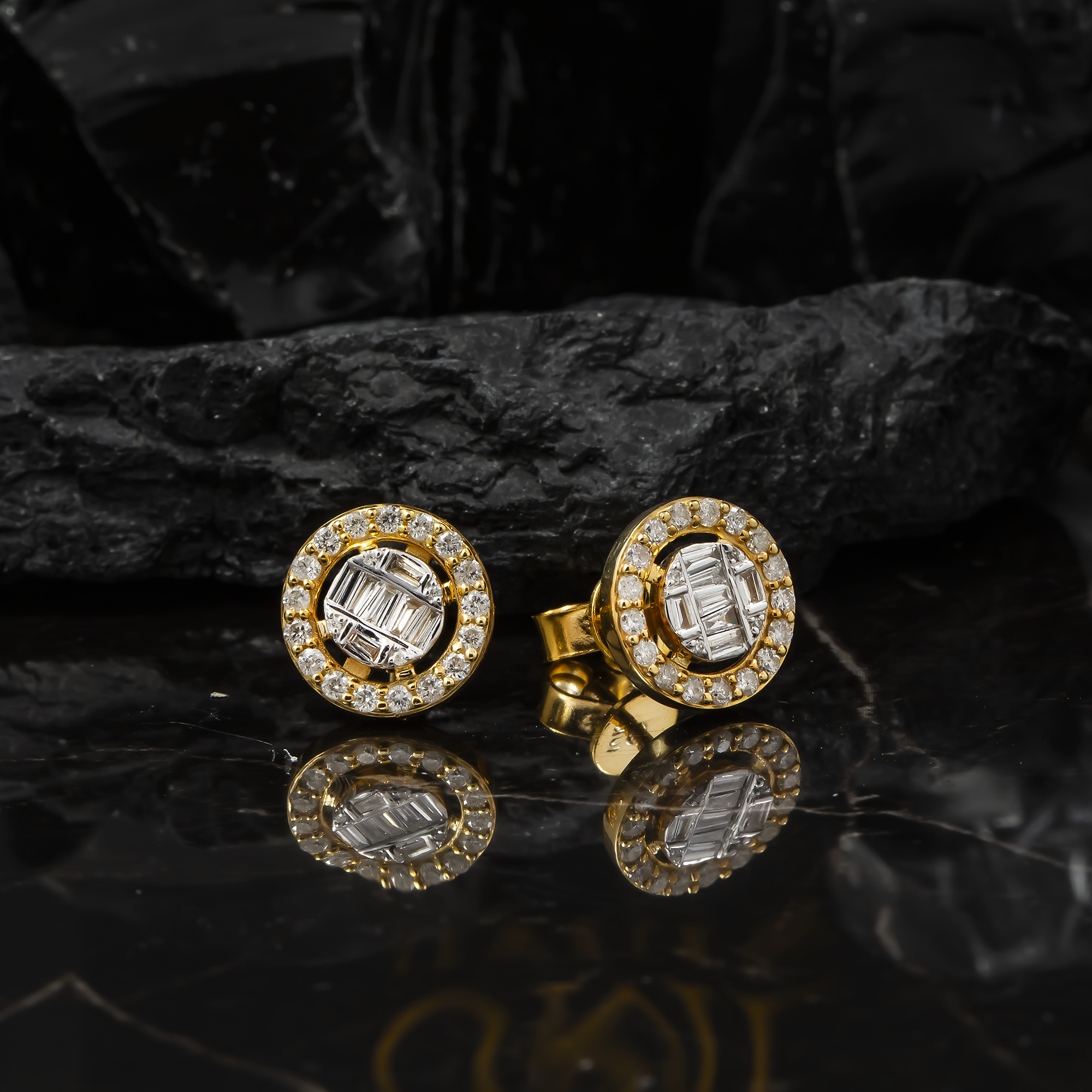 10K GOLD BAGUETTE AND ROUND DIAMOND CIRCLE EARRINGS 0.77 CTW