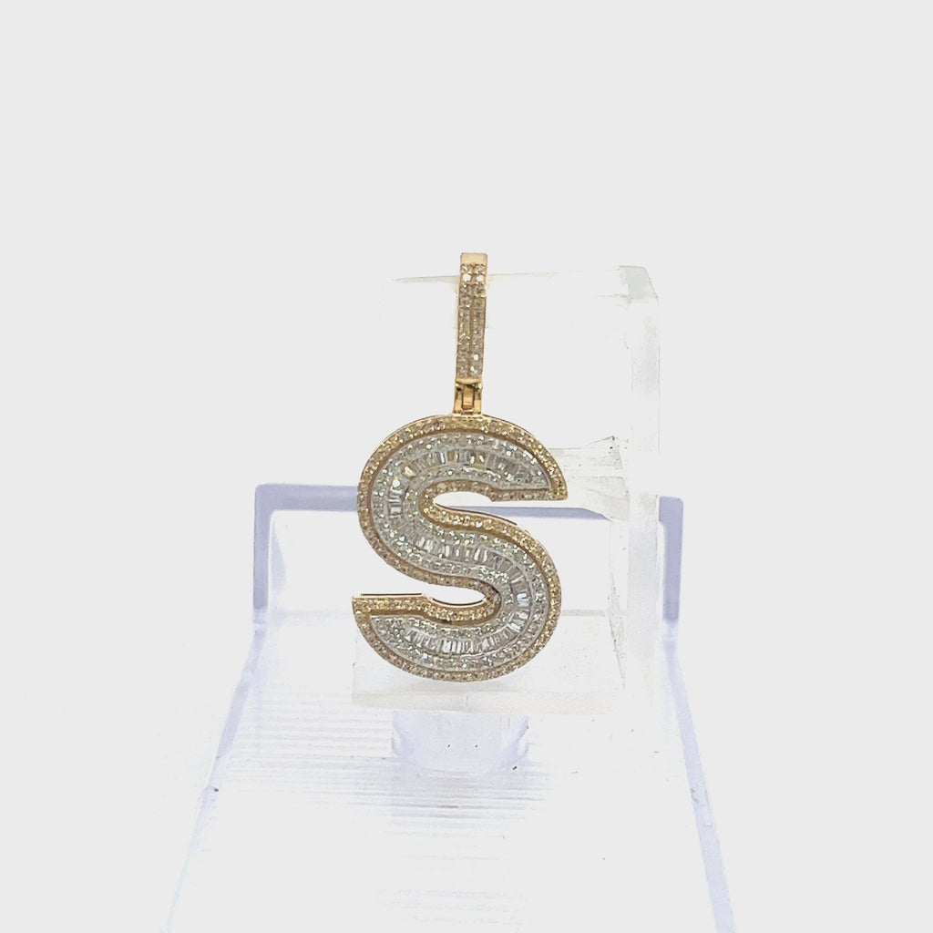 10K TWO-TONE GOLD ROUND AND BAGUETTE DIAMOND LETTER "S" PENDANT 0.62 CT