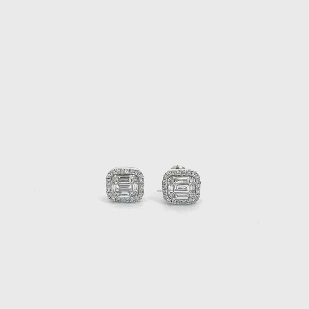 14K GOLD ROUND AND BAGUETTE DIAMOND EARRING STUDS 0.80 CT