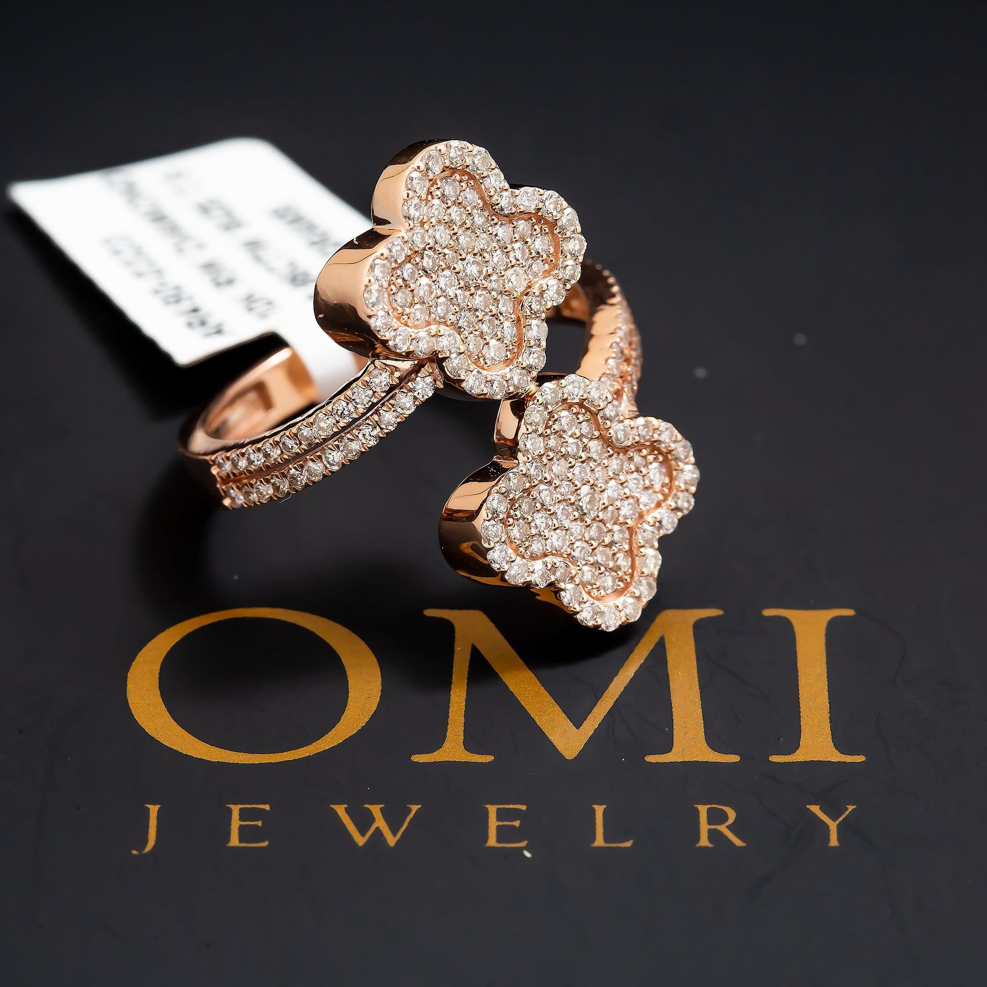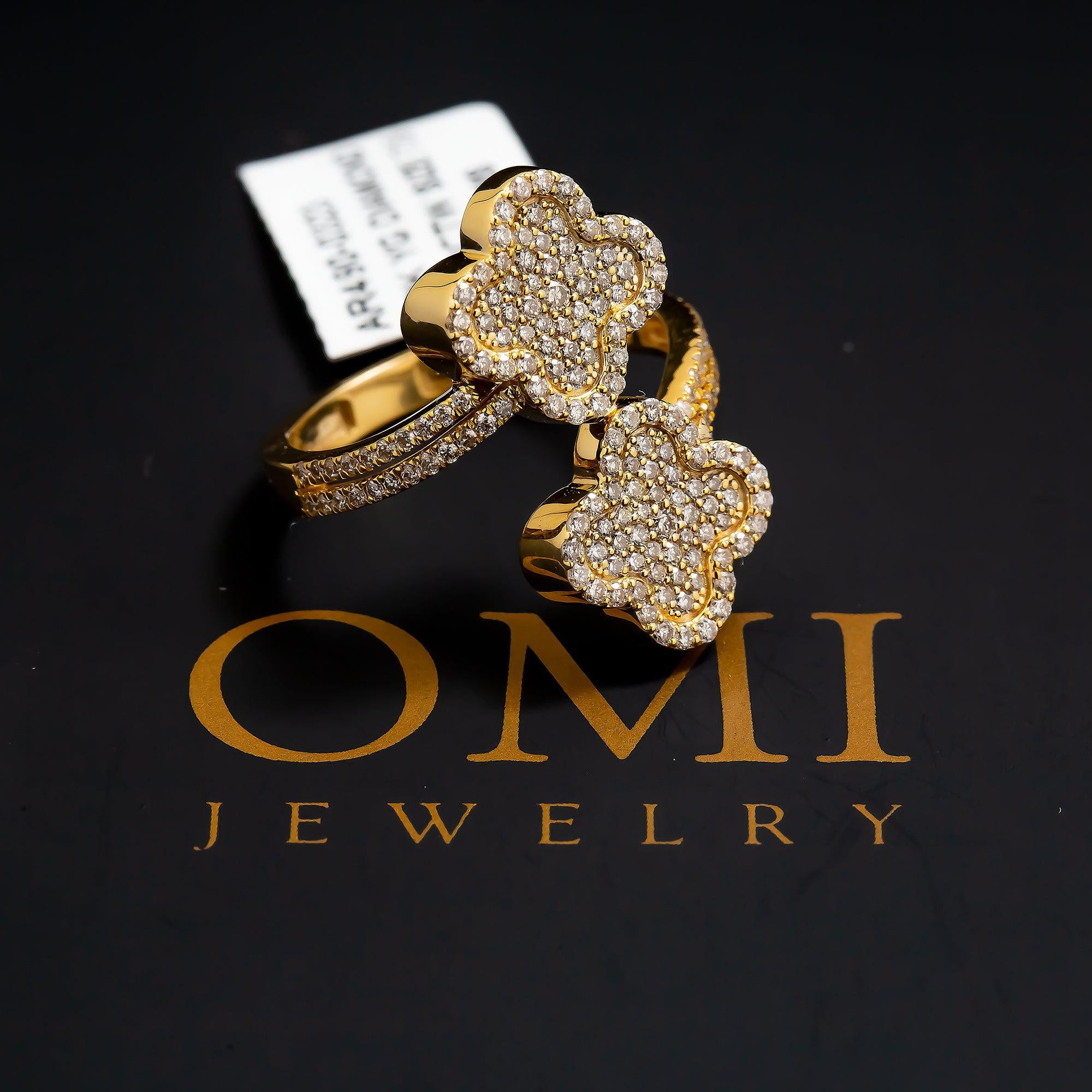 10K GOLD ROUND DIAMOND OPEN DOUBLE CLOVER RING 0.88 CT