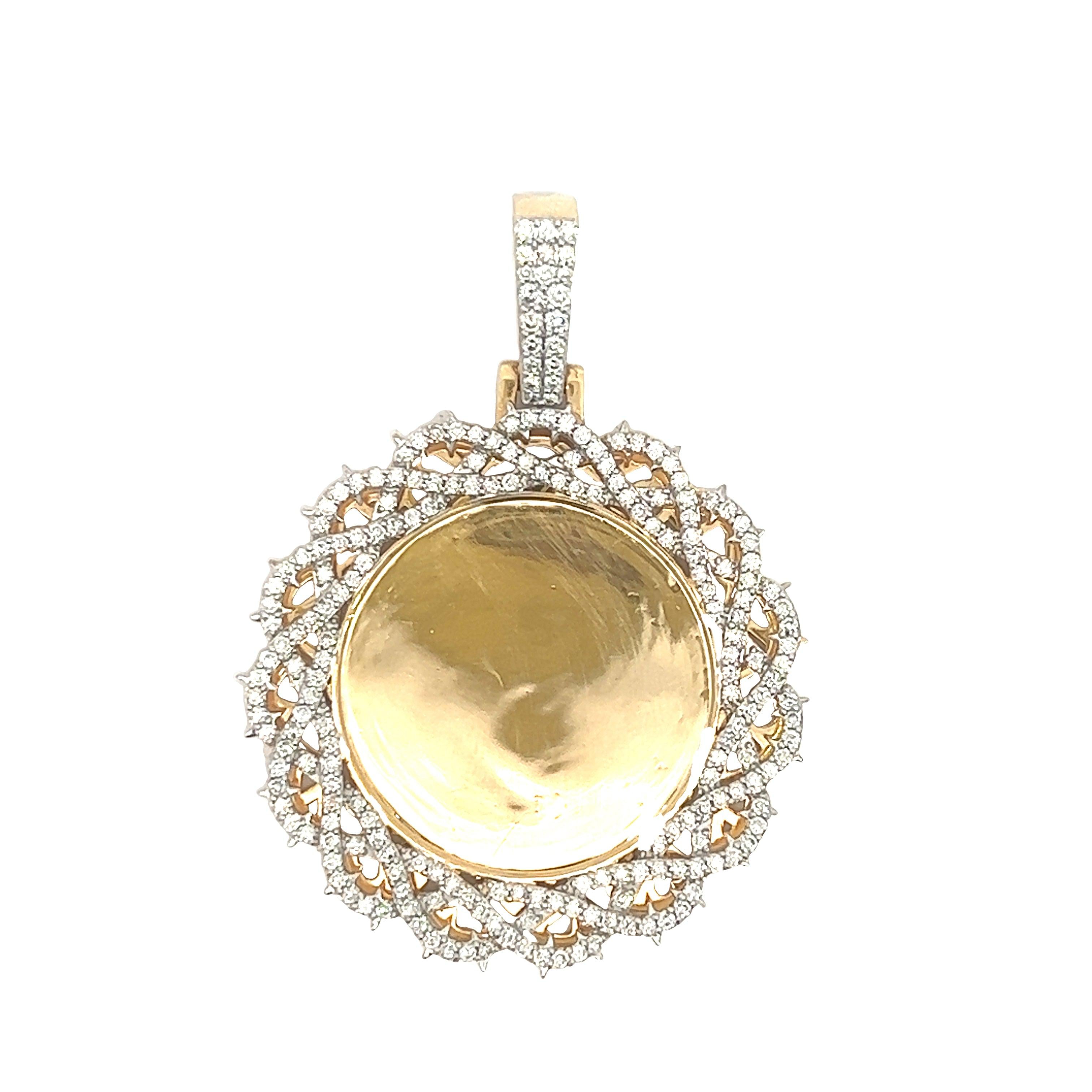 10K GOLD DIAMOND BARBED WIRE CIRCLE PICTURE PENDANT 1.71 CT