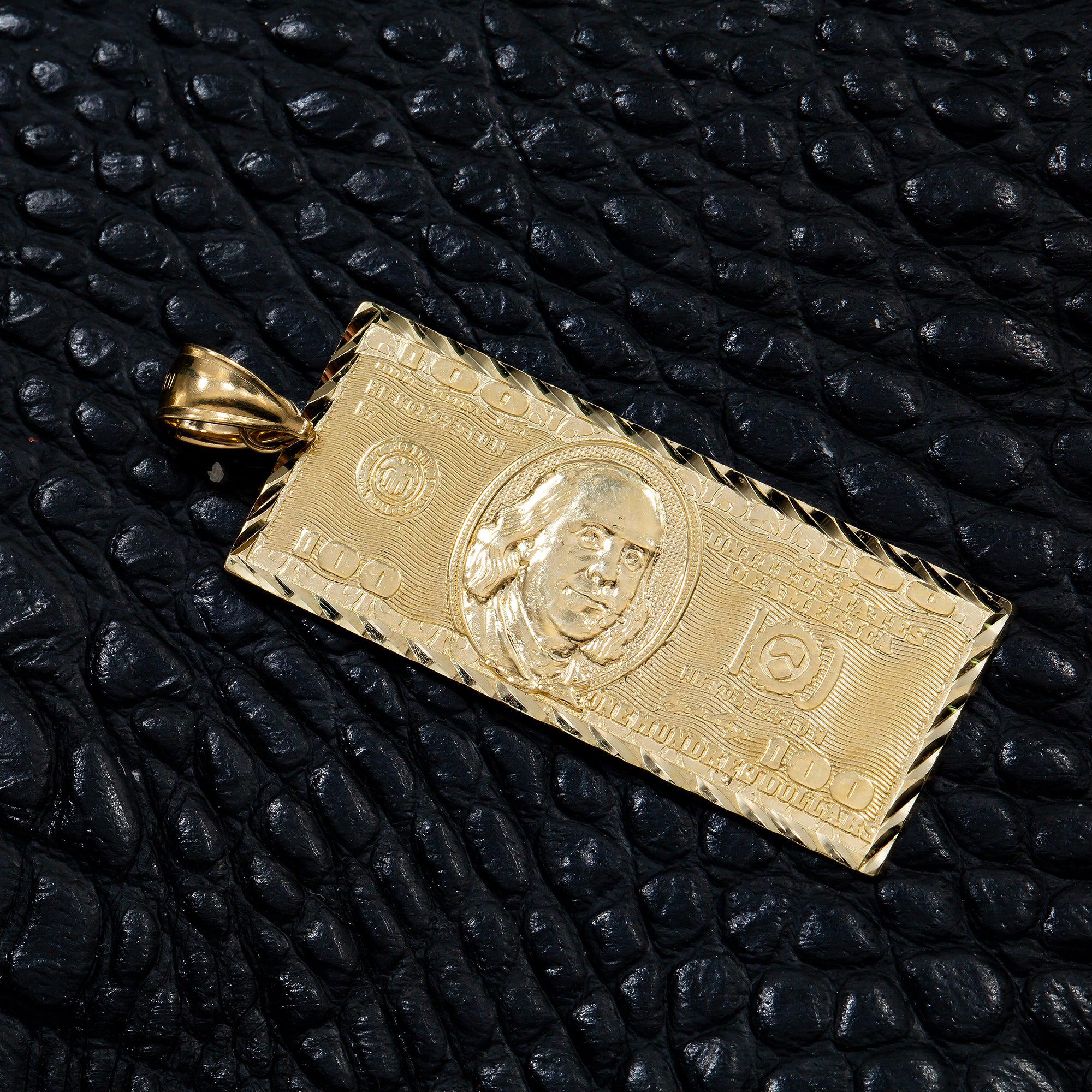 10K GOLD 100 DOLLAR BILL PENDANT 1.93"