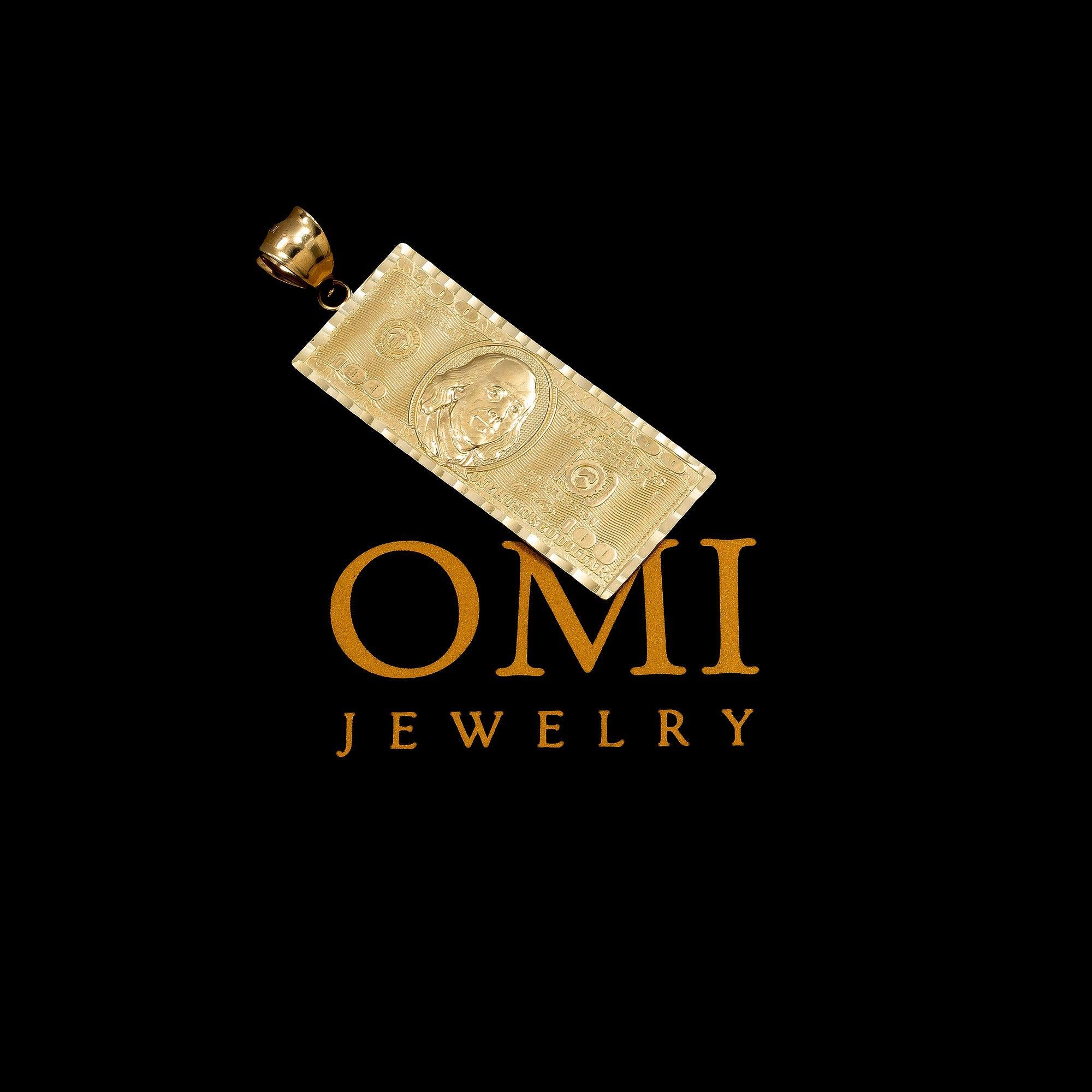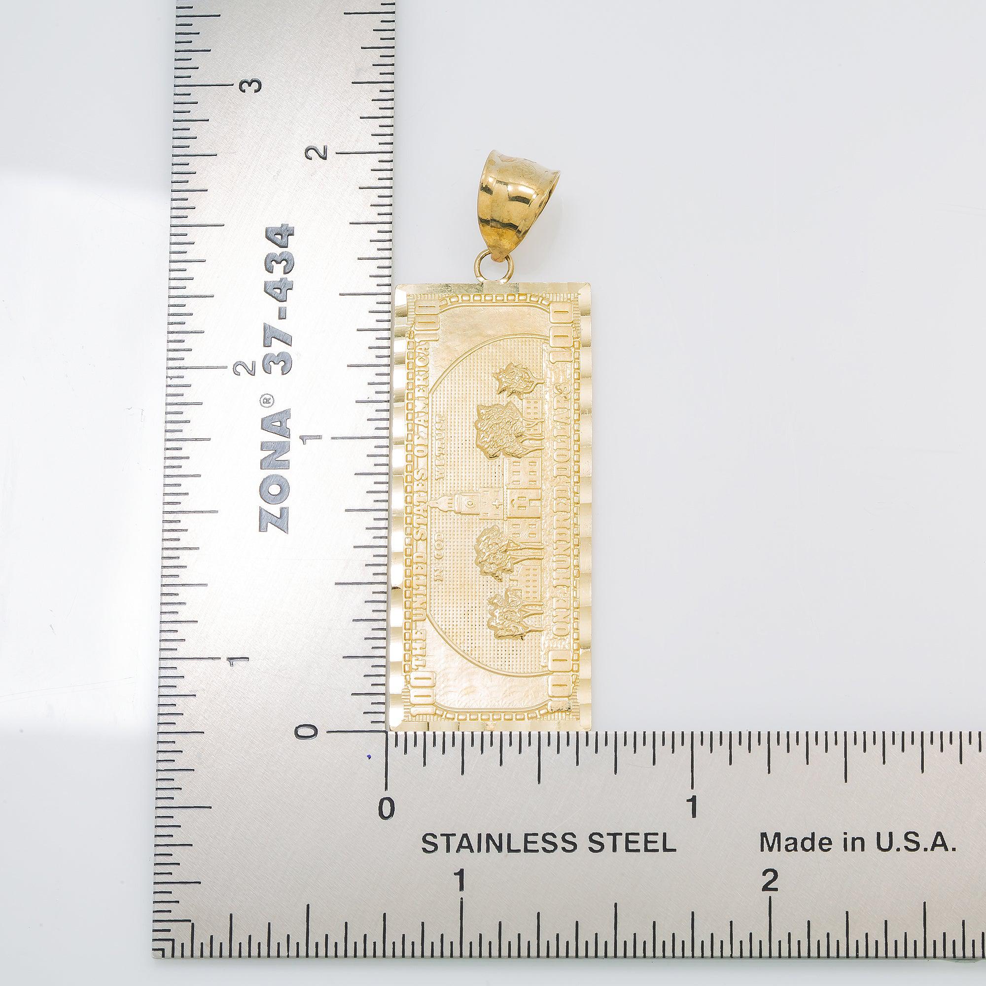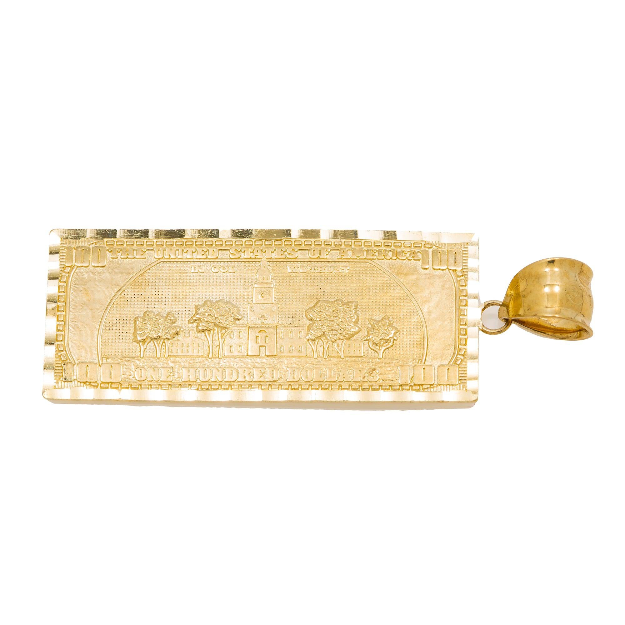 10K GOLD 100 DOLLAR BILL PENDANT 2"