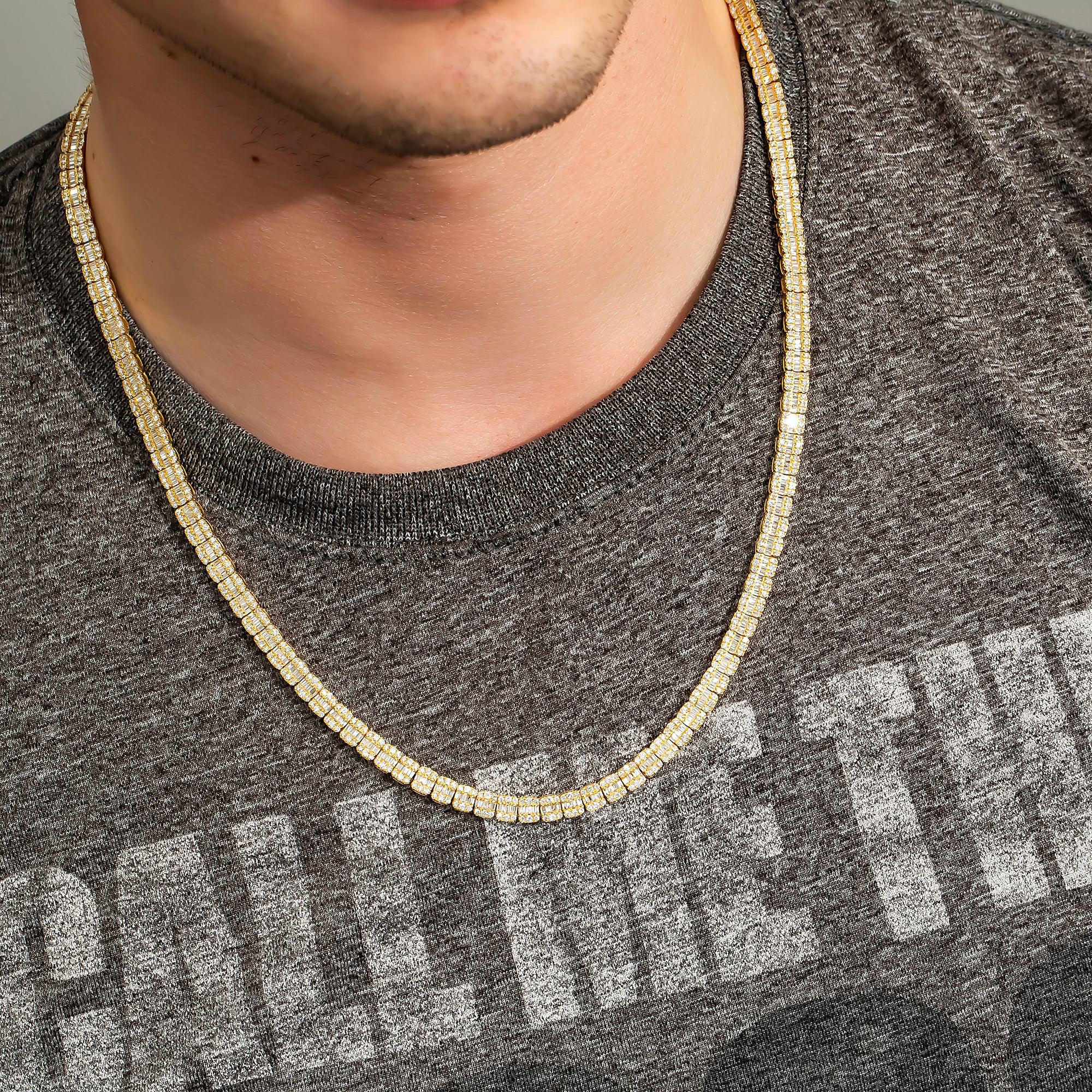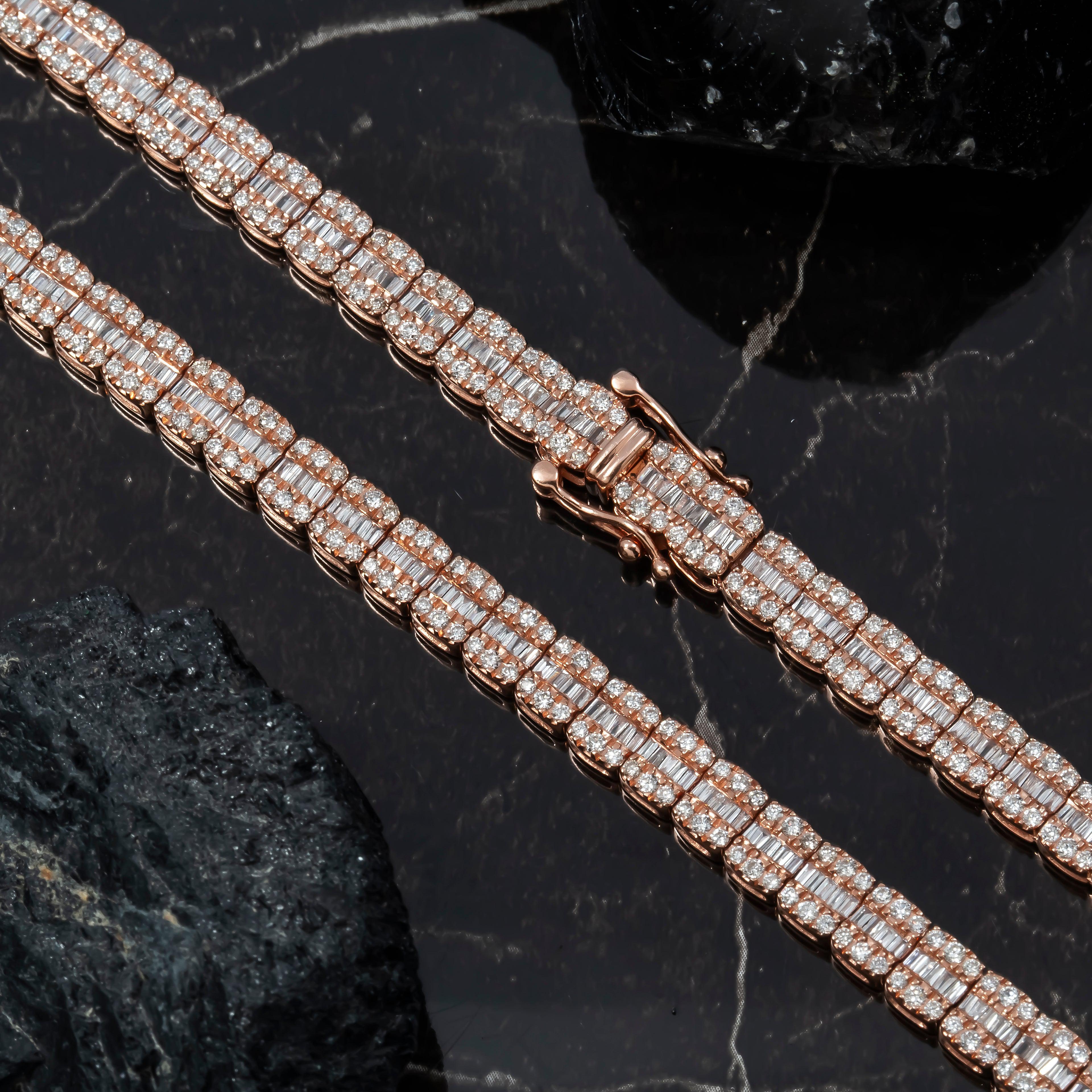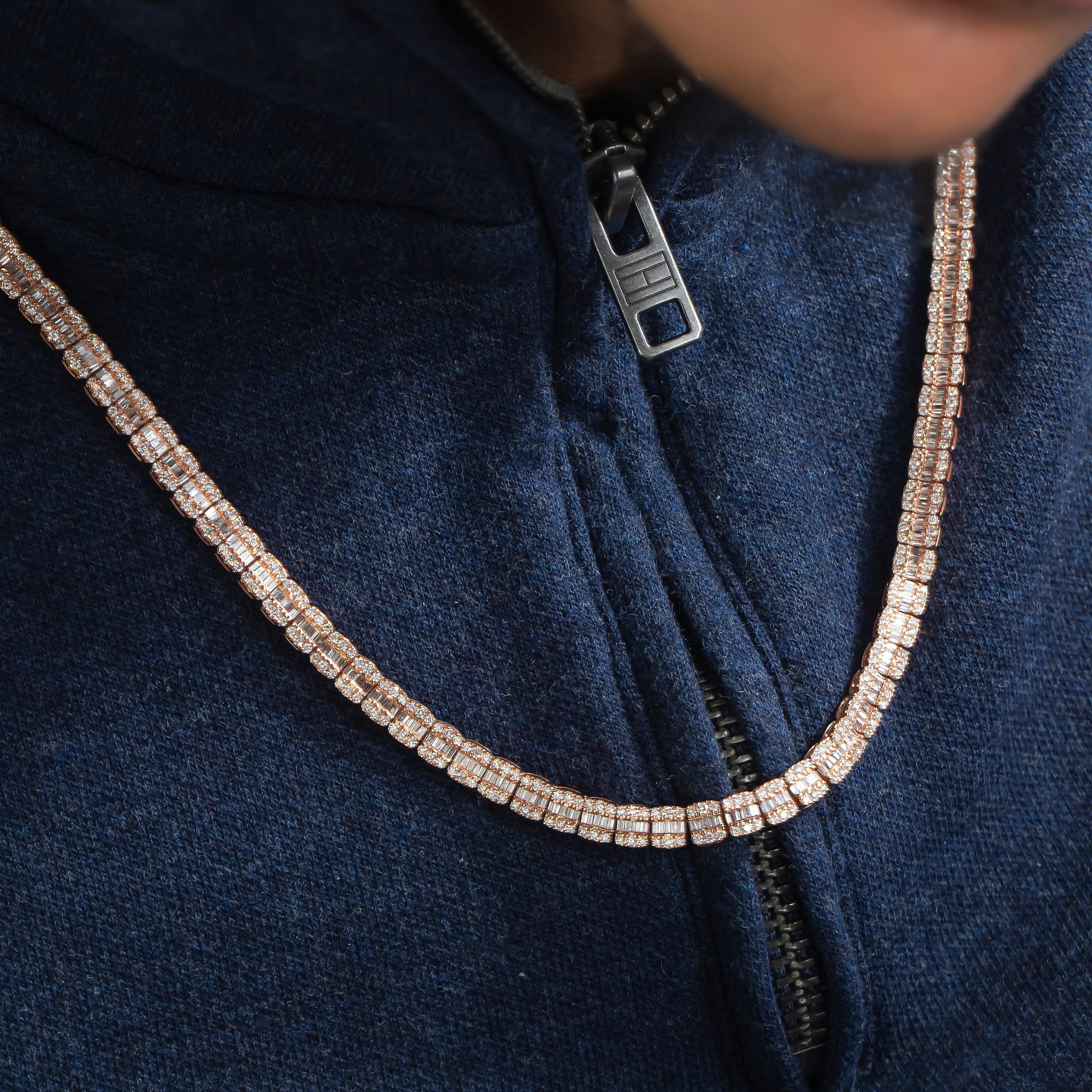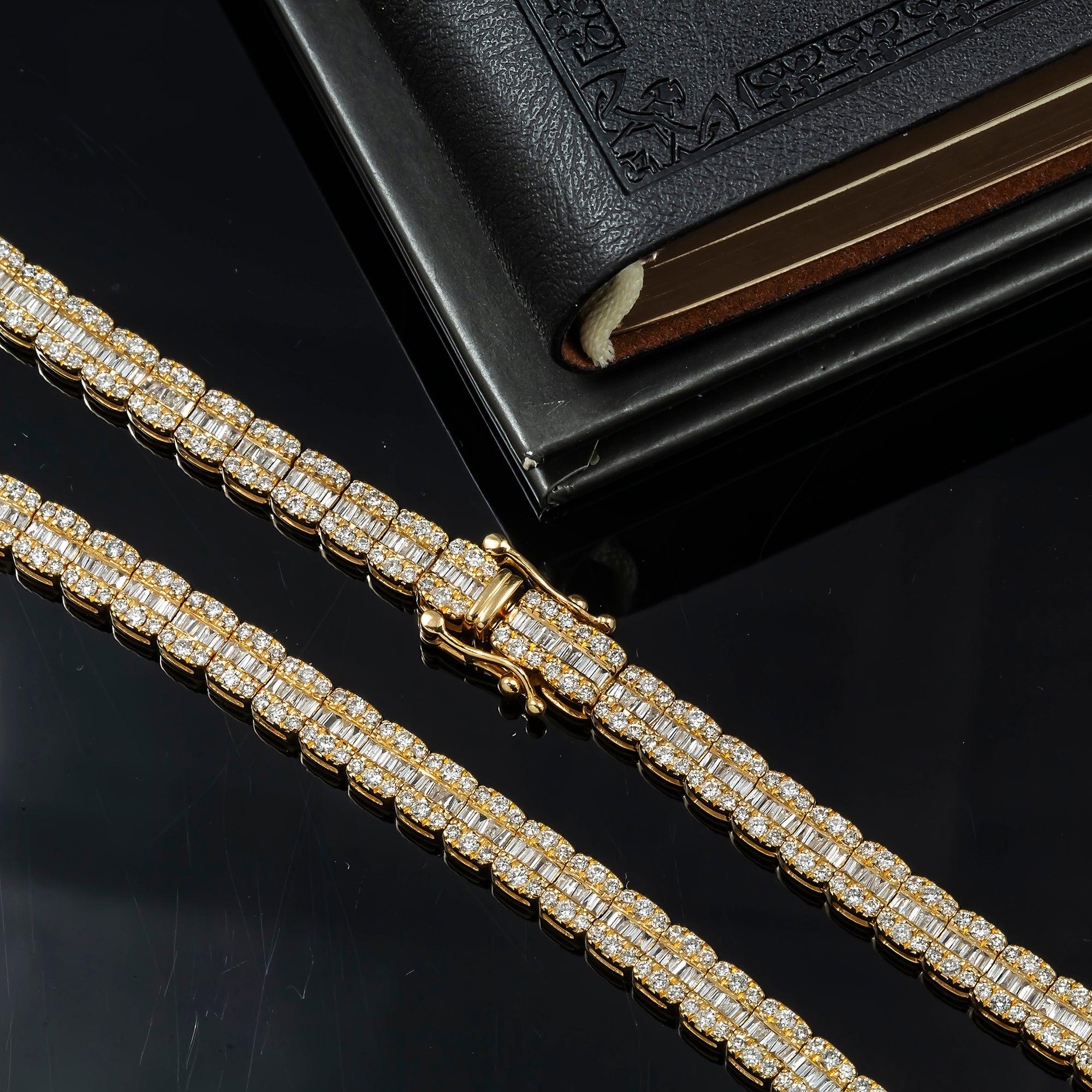 10K GOLD 5MM BAGUETTE AND ROUND DIAMOND CHAIN 10.64 CT