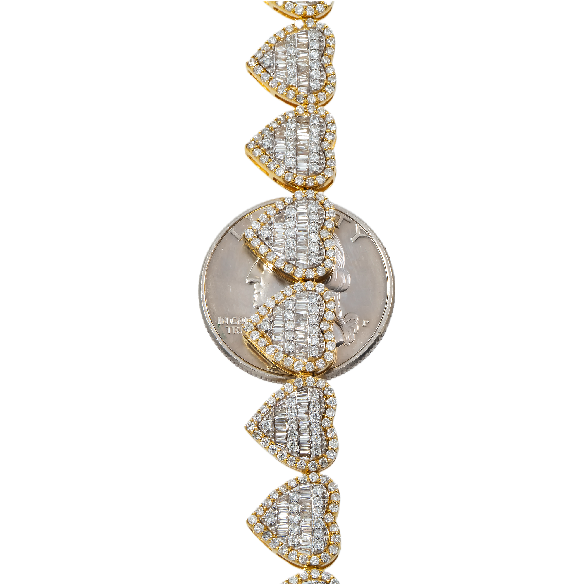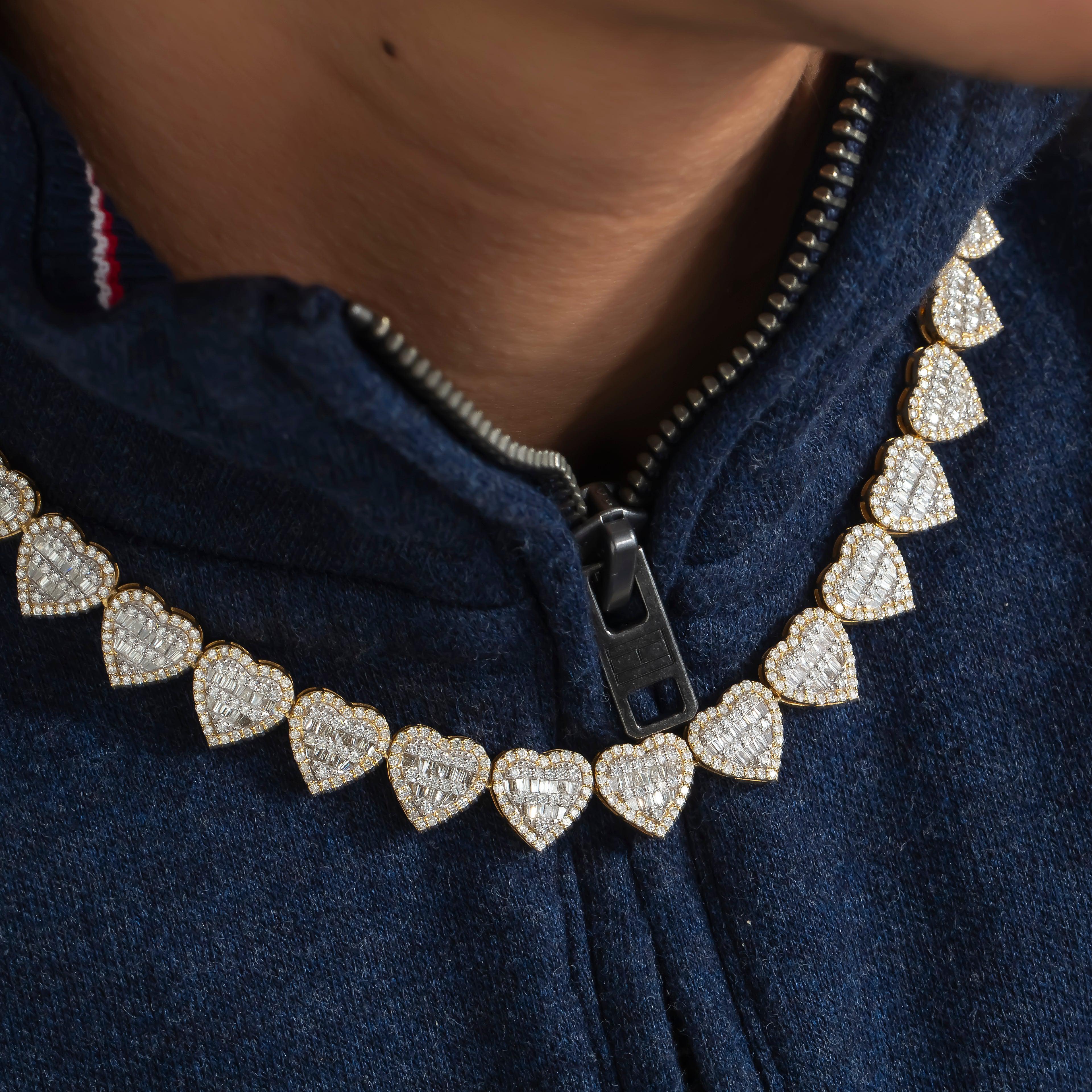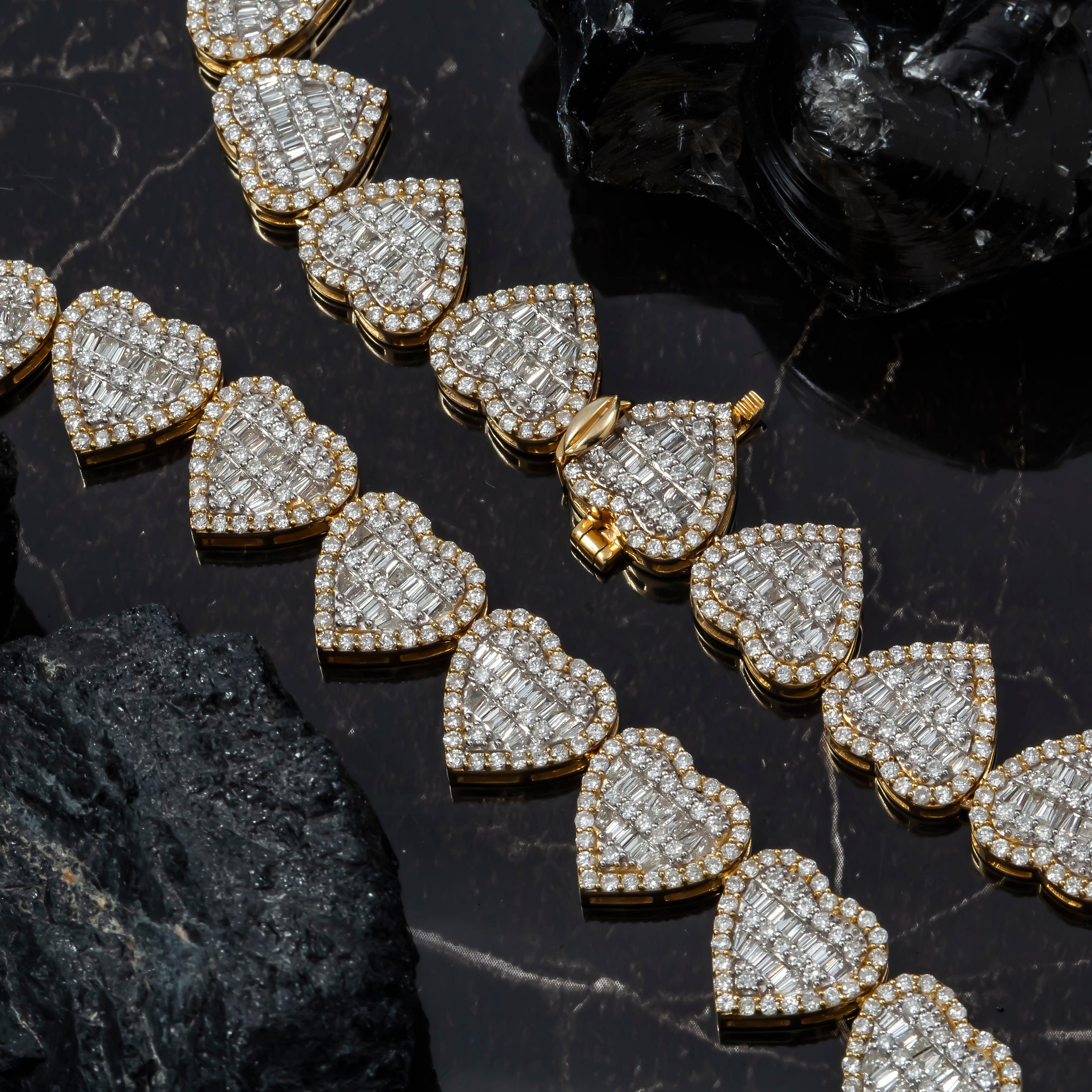 10K GOLD BAGUETTE AND ROUND DIAMOND CLUSTER HEART CHAIN 16.14 CT