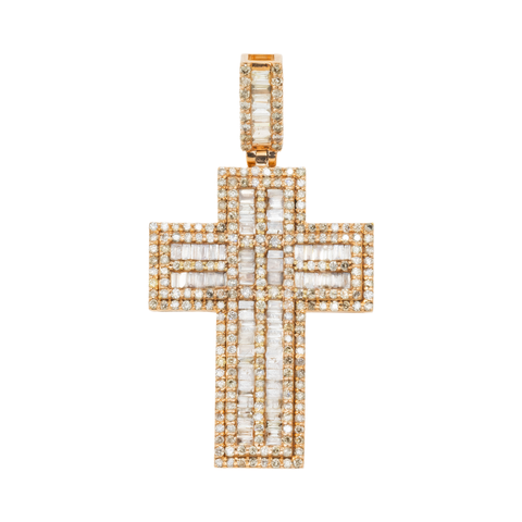 10K GOLD BAGUETTE AND ROUND DIAMOND CROSS PENDANT 1.13 CT