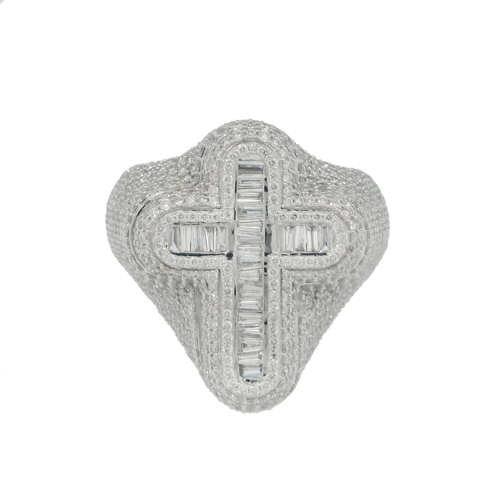 10K GOLD BAGUETTE AND ROUND DIAMOND CROSS RING 3.96 CT