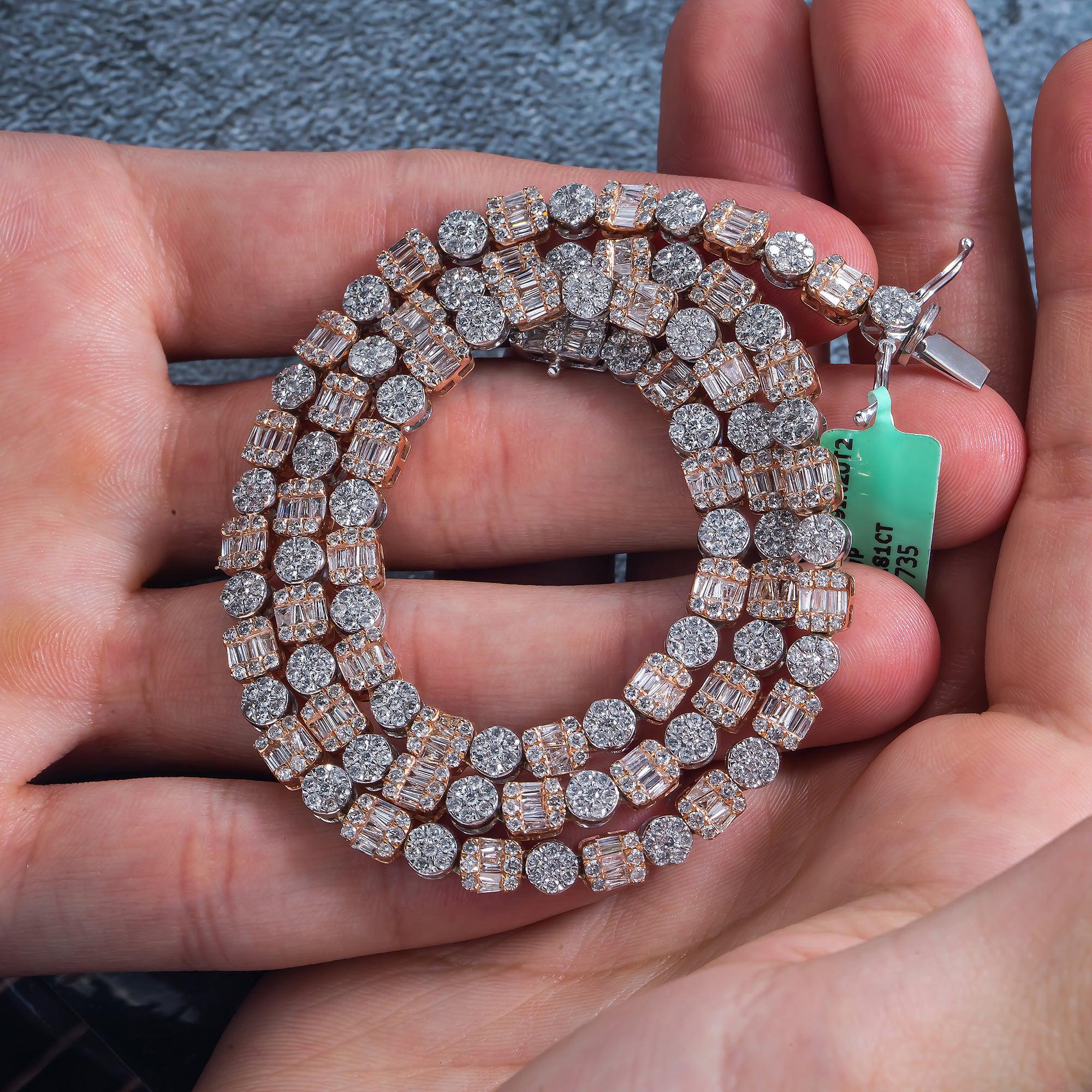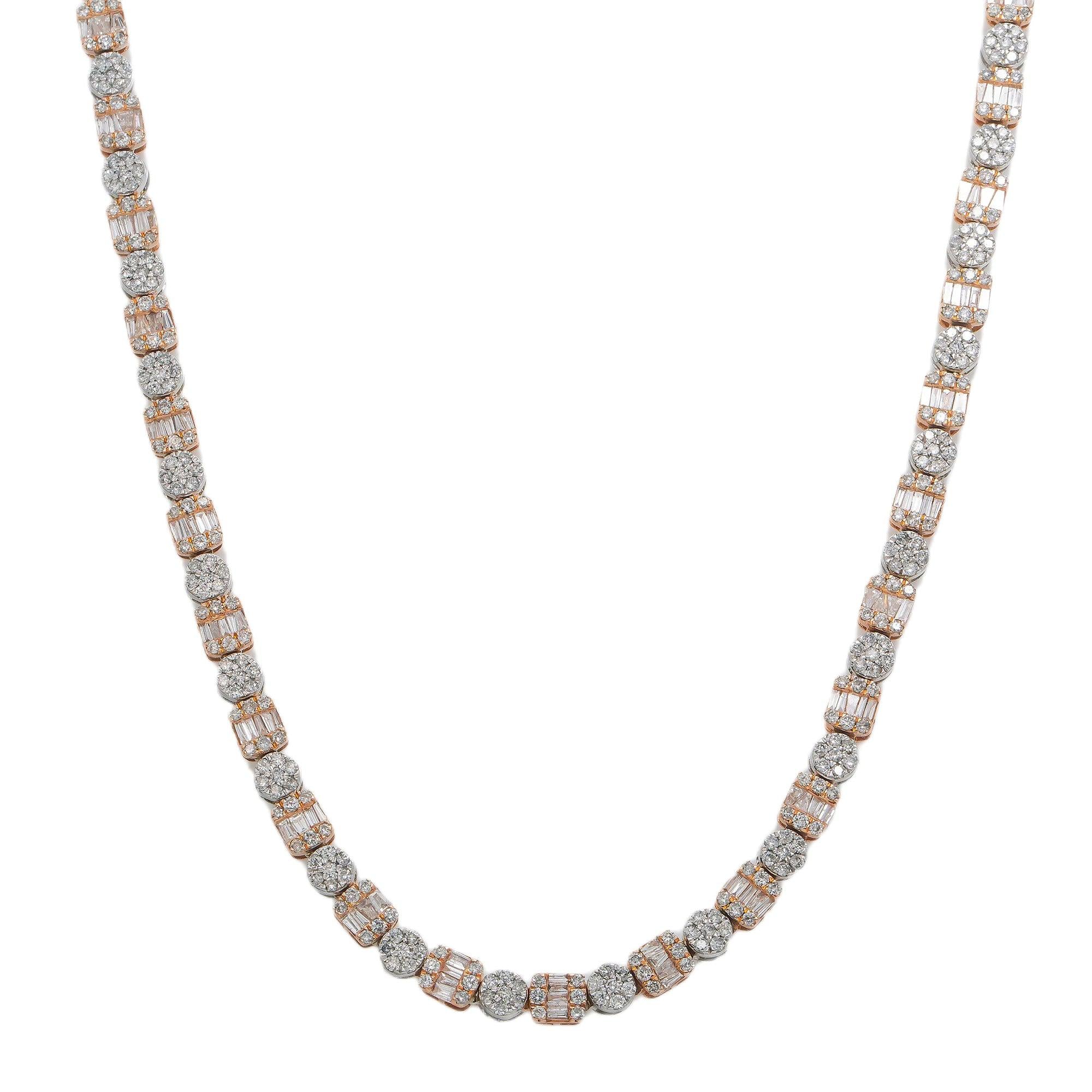 10K GOLD BAGUETTE AND ROUND DIAMOND TWO TONE CHAIN 11.81 CT