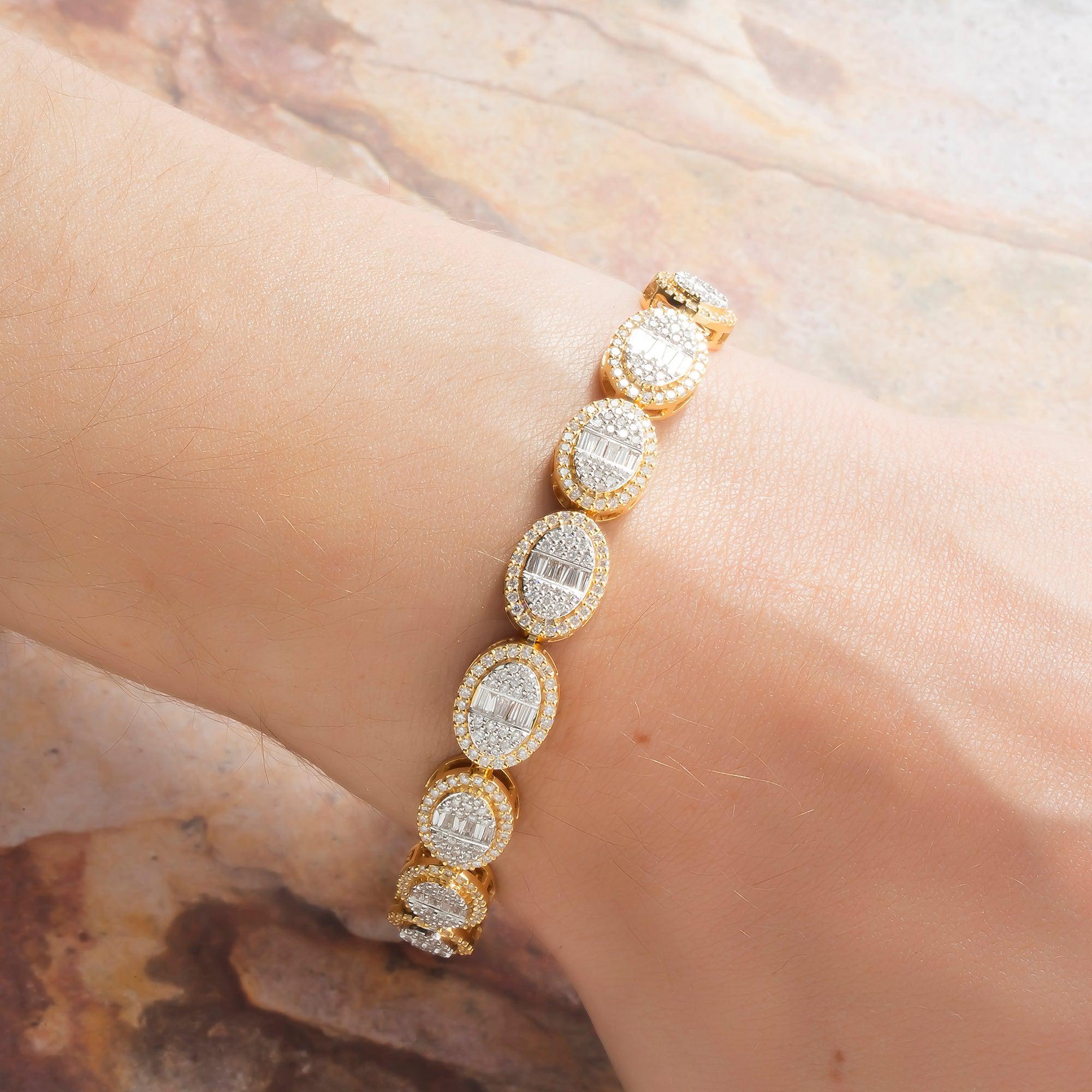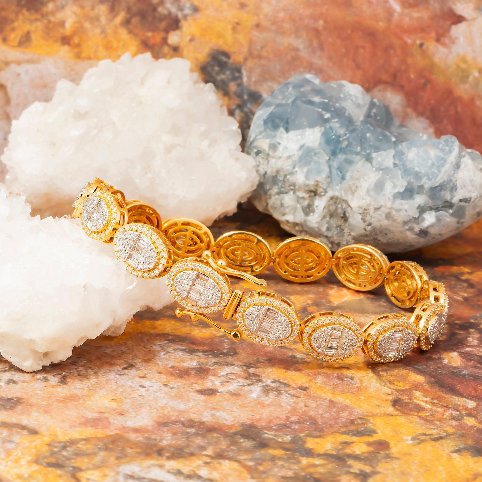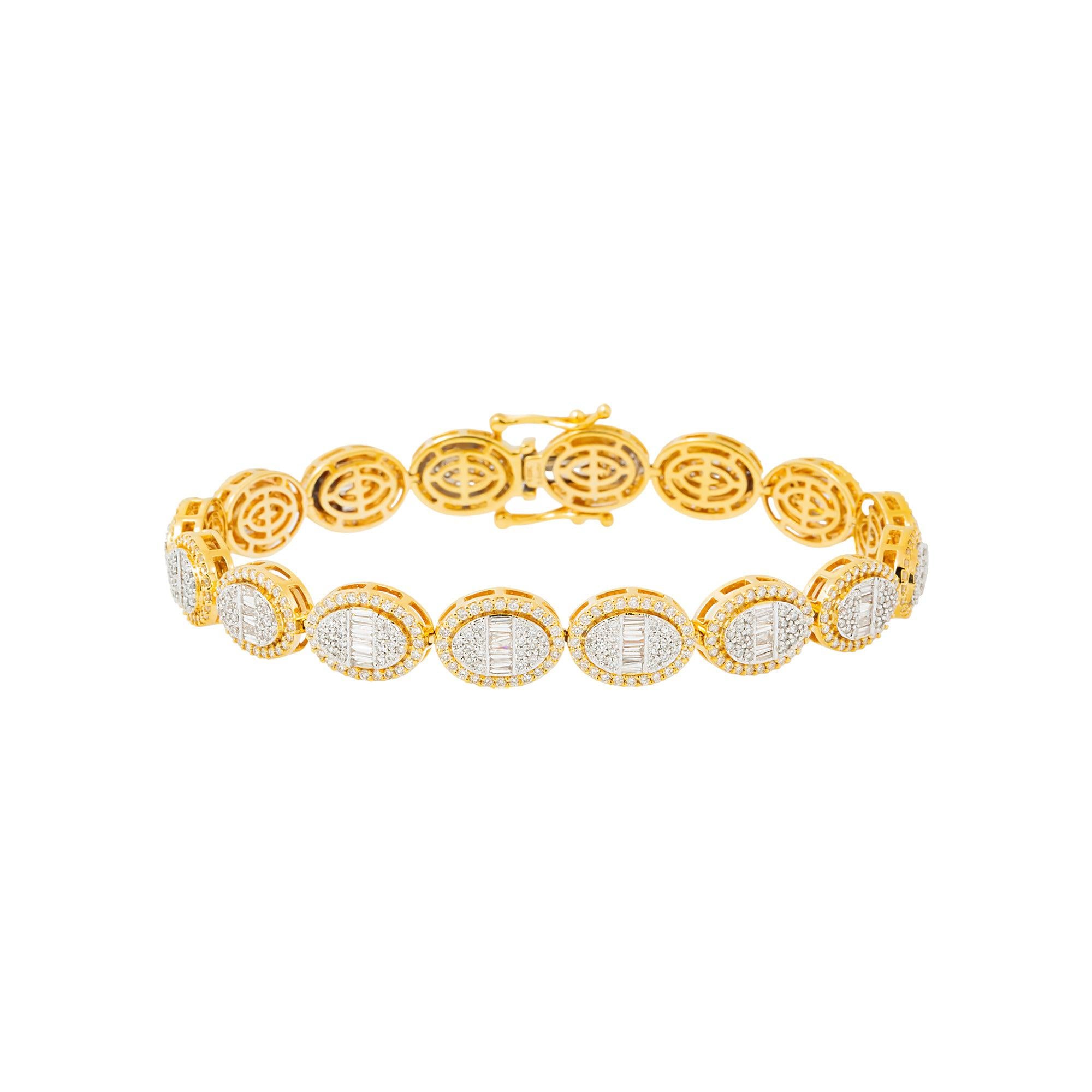 10K GOLD BAGUETTE AND ROUND DIAMONDS CLUSTER OVAL SHAPE STATEMENT BRACELET 5.94 CT