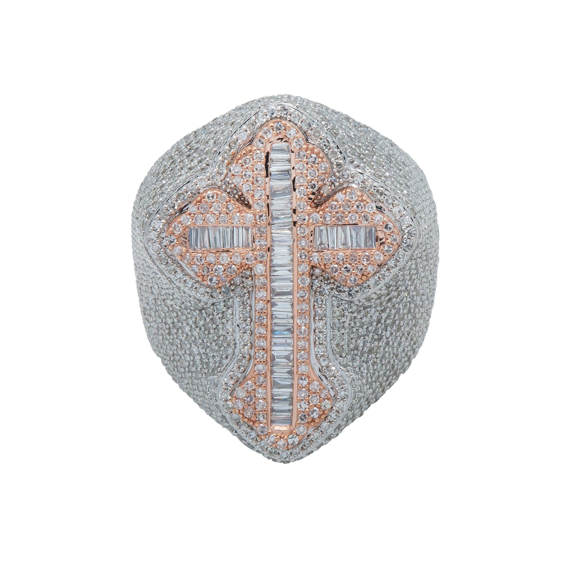 10K GOLD BAGUETTE AND ROUND CLUSTER DIAMOND CROSS RING 3.52 CT