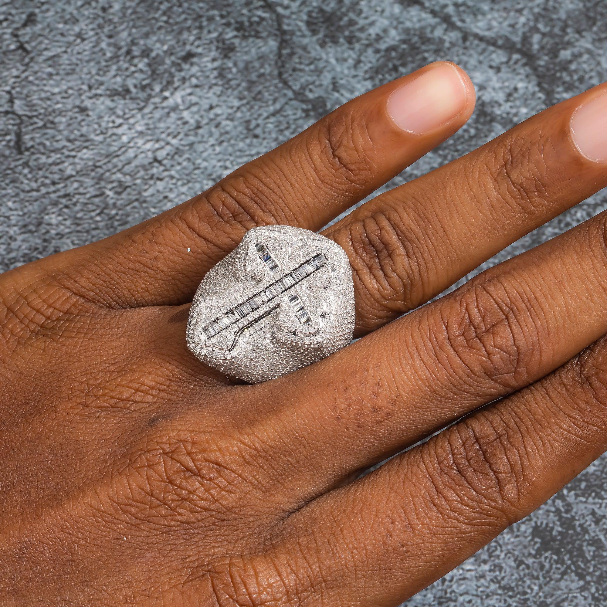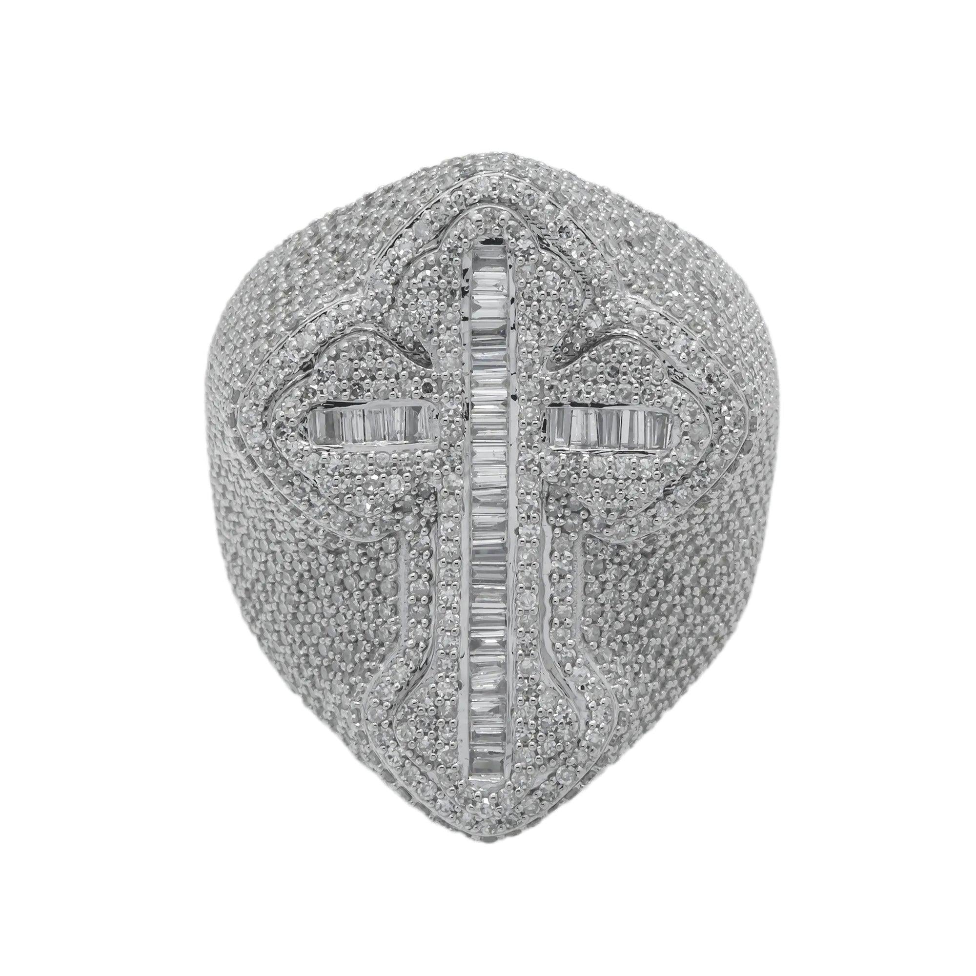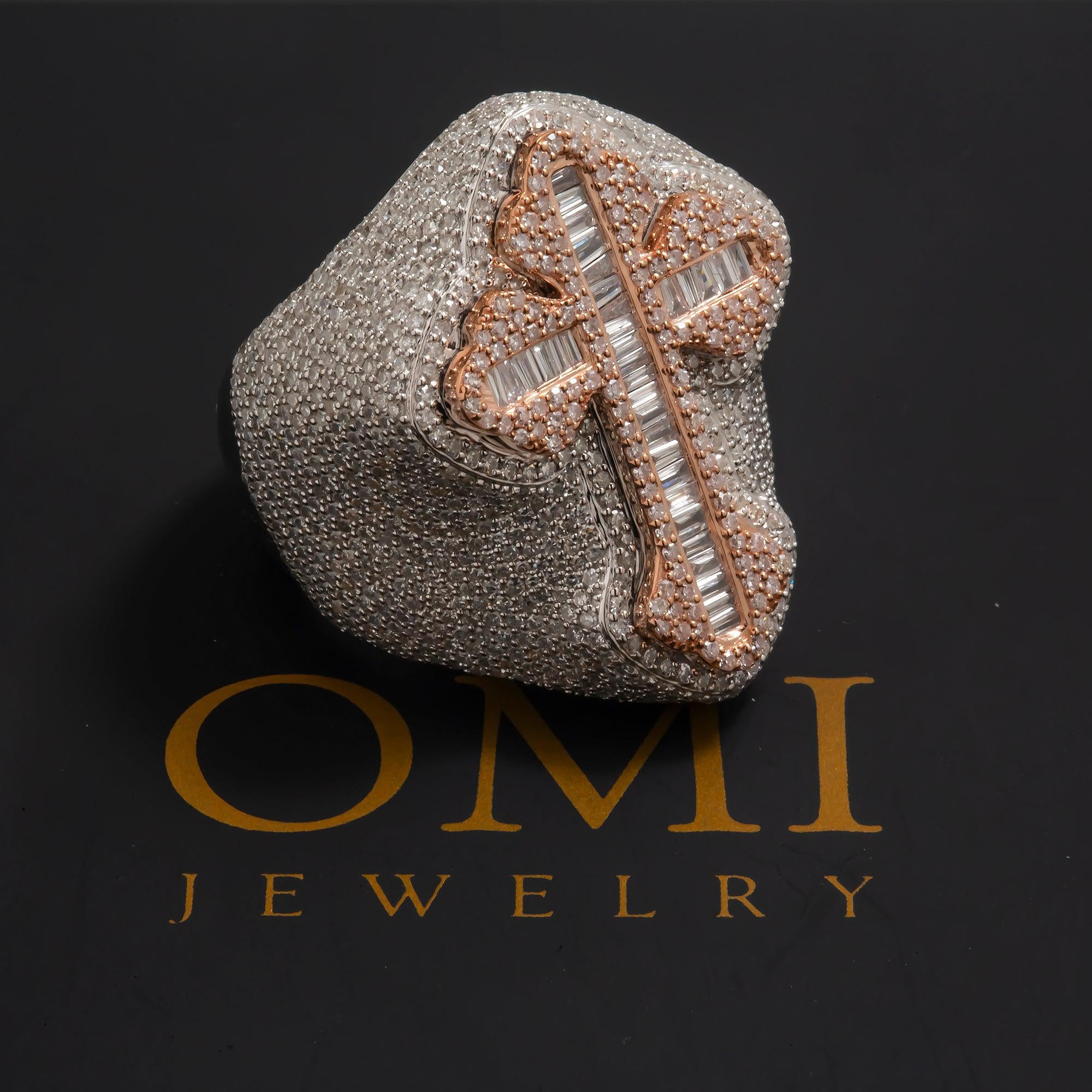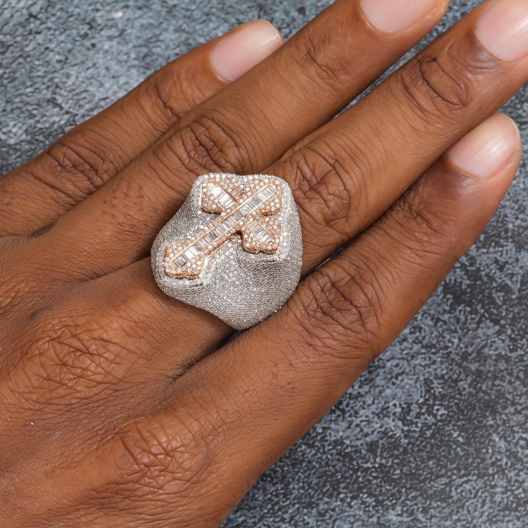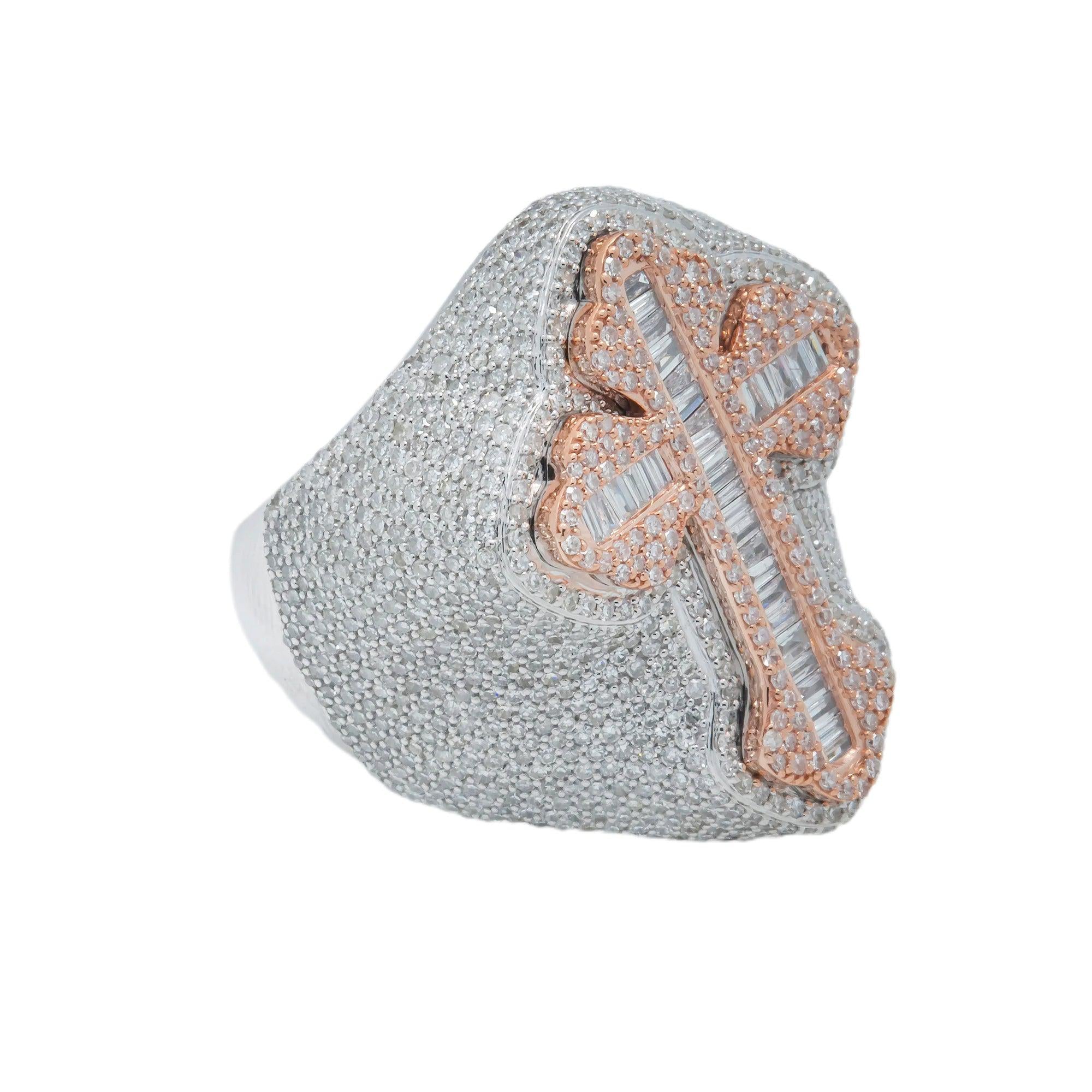 10K GOLD BAGUETTE DIAMOND CROSS RING 3.52 CT