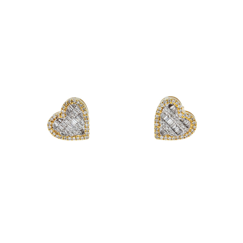 10K GOLD ROUND AND BAGUETTE DIAMOND HEART STUD EARRINGS 0.27 CTW