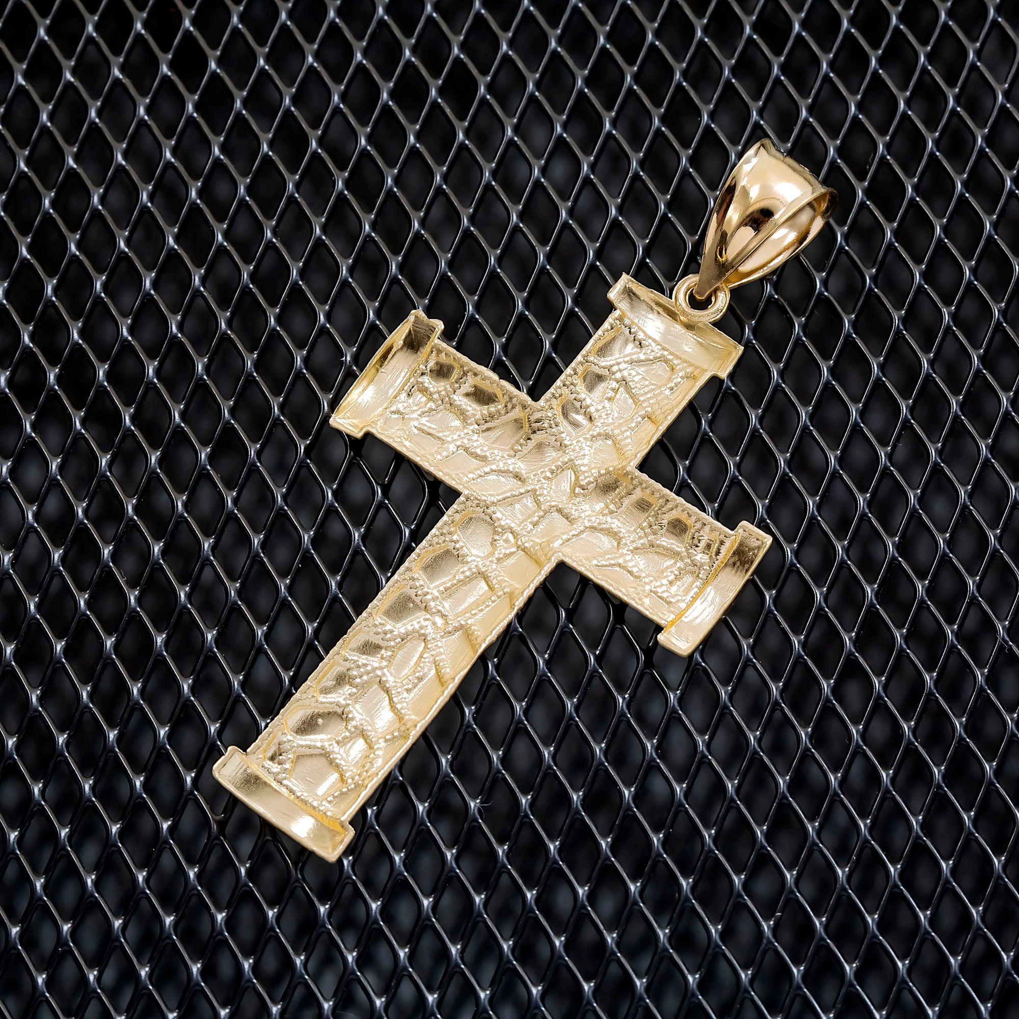 10K GOLD CROSS NUGGET PENDANT 5.4G