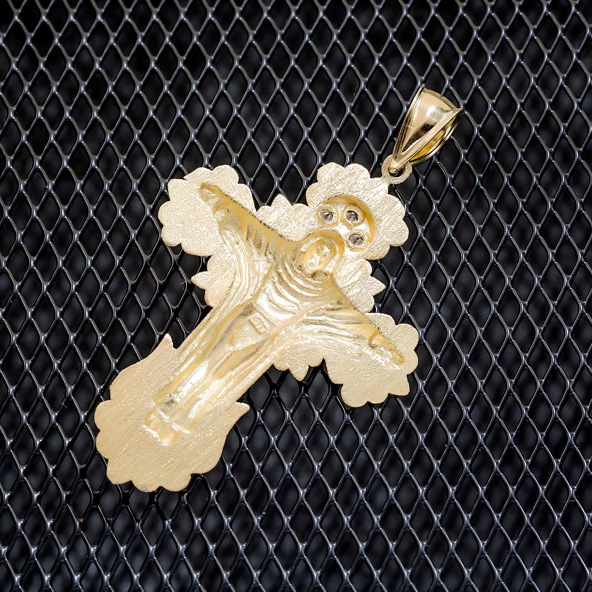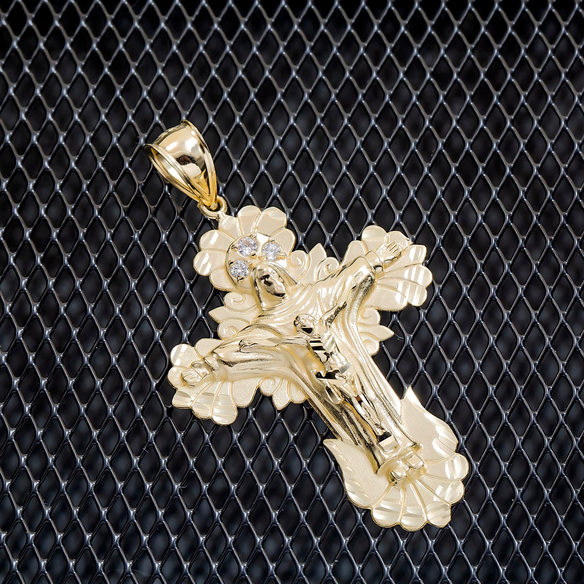 10K GOLD CRUCIFIX WITH ROUND DIAMONDS PENDANT 9.9G