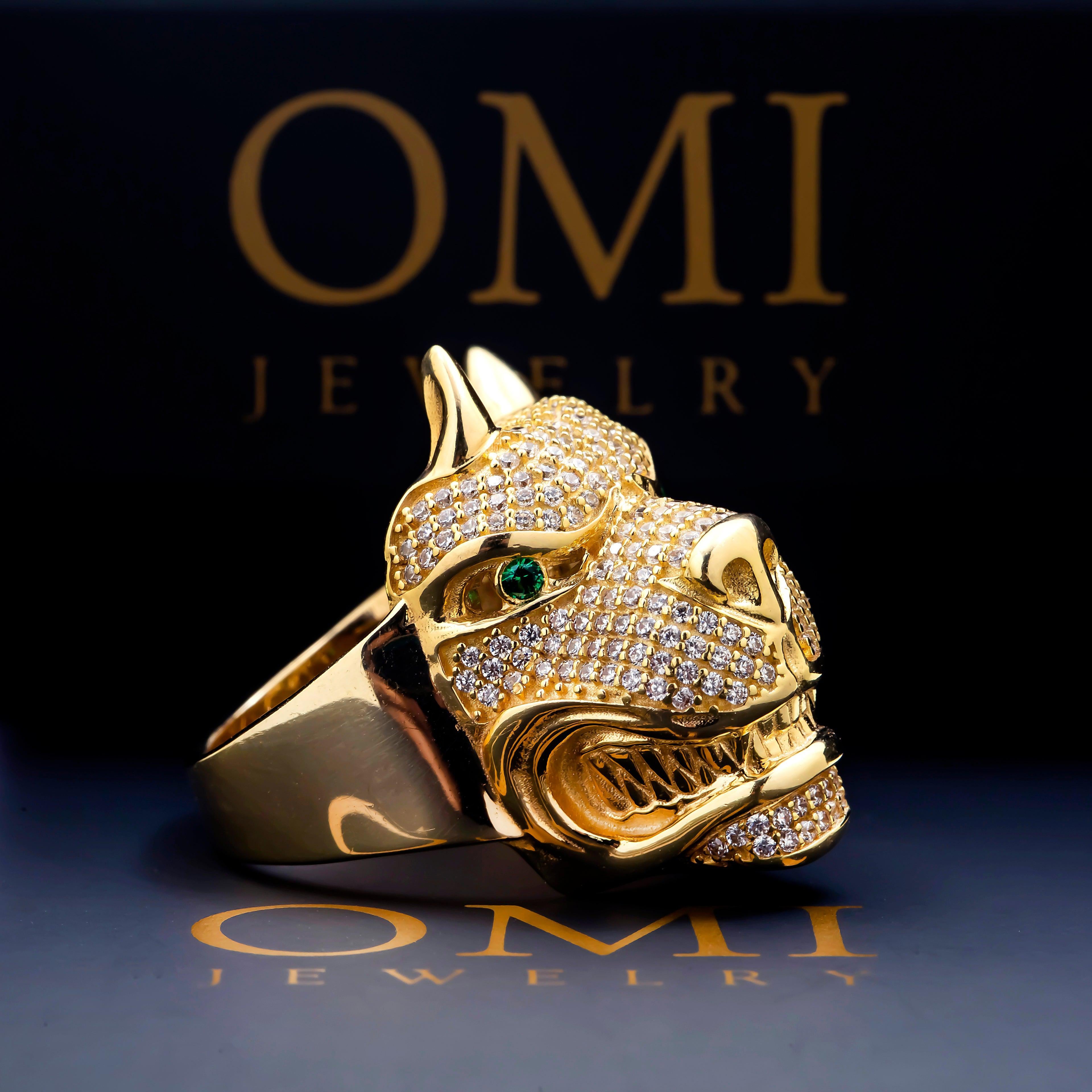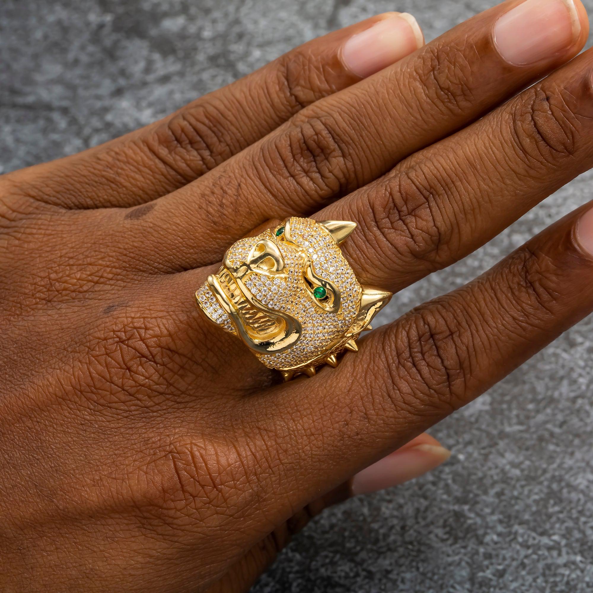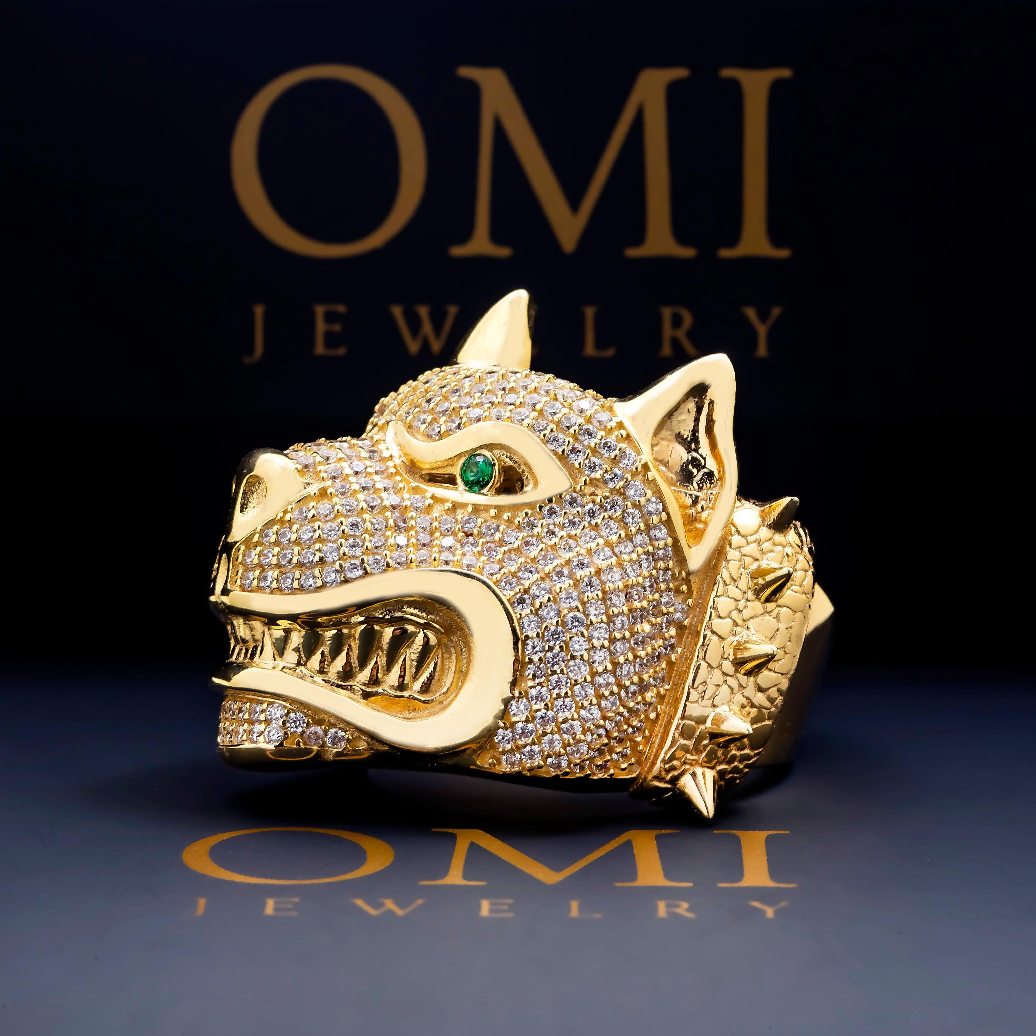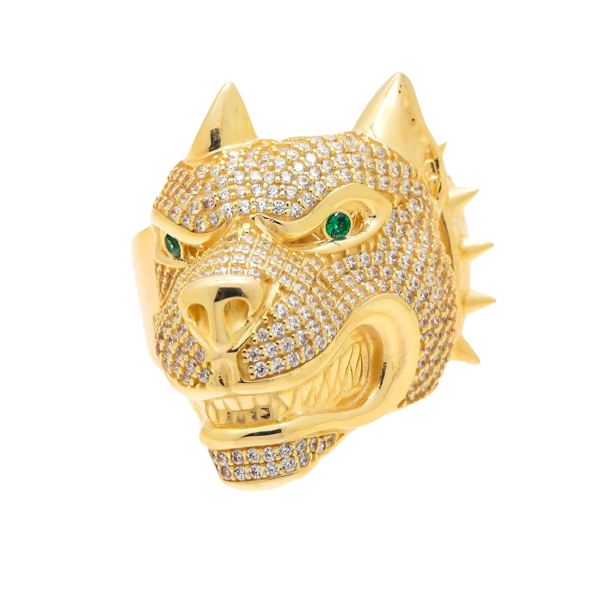 10K GOLD DIAMOND AND GREEN GEMSTONE DOG RING 15.1G