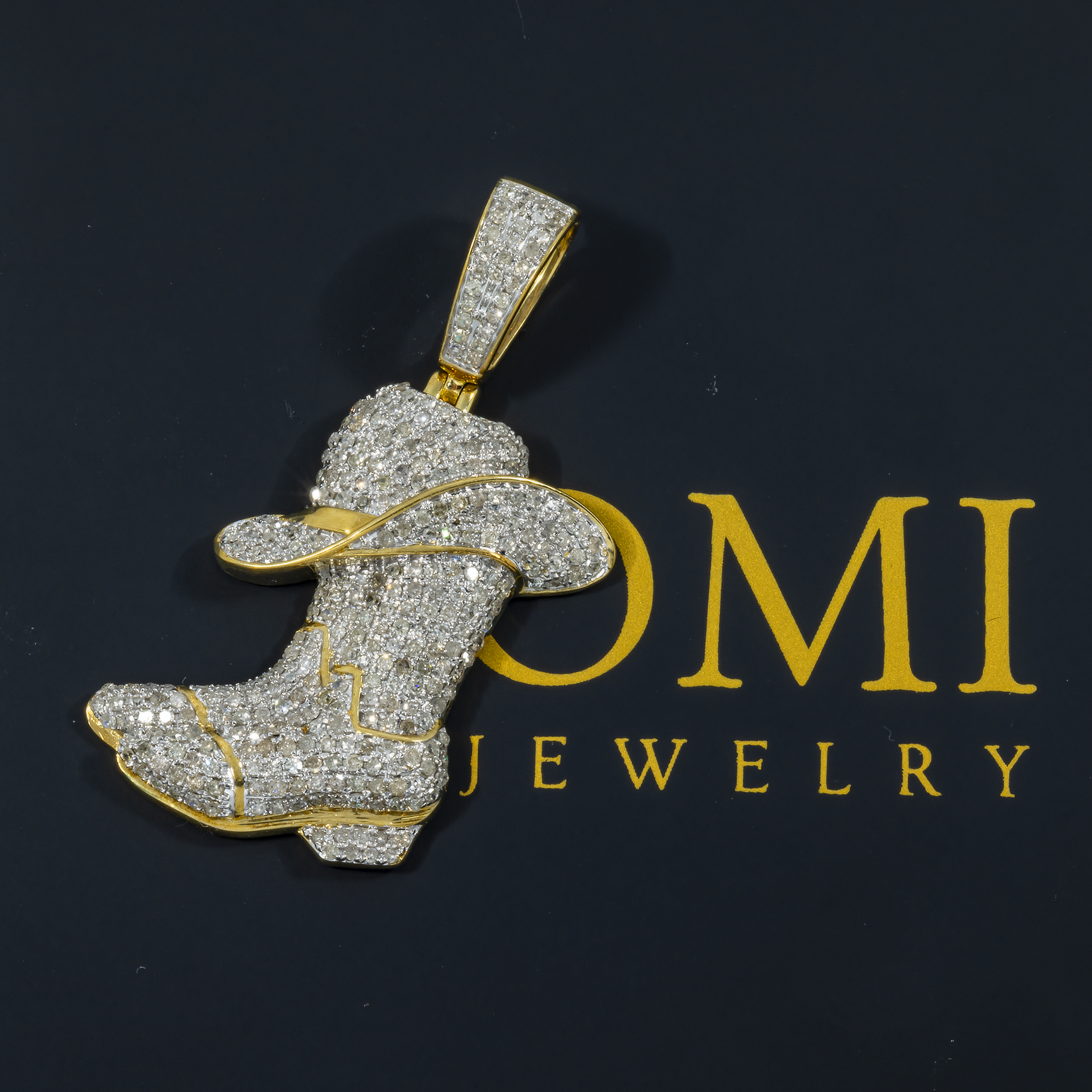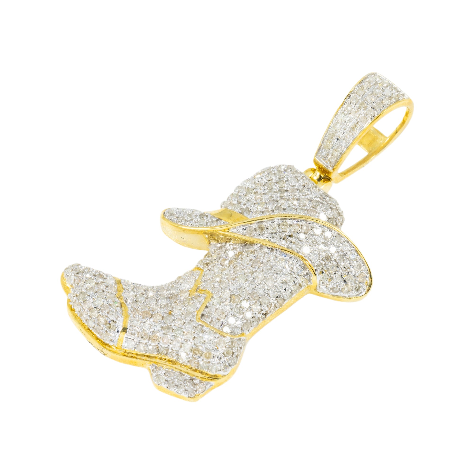 10K GOLD DIAMOND COWBOY BOOTS AND HAT PENDANT 1.08 CT