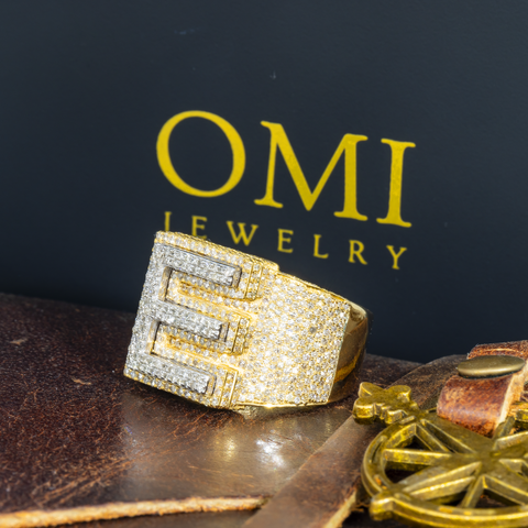 10K GOLD DIAMOND INITIAL LETTER E STATEMENT RING 2.48 CT