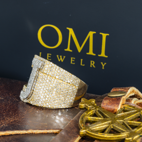 10K GOLD DIAMOND INITIAL LETTER J STATEMENT RING 3.20 CT