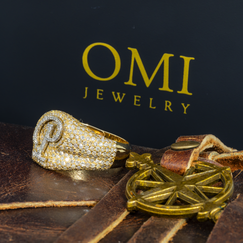 10K GOLD DIAMOND INITIAL LETTER P STATEMENT RING 2.68 CT