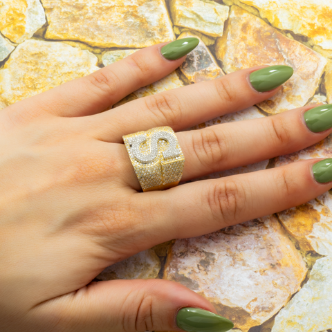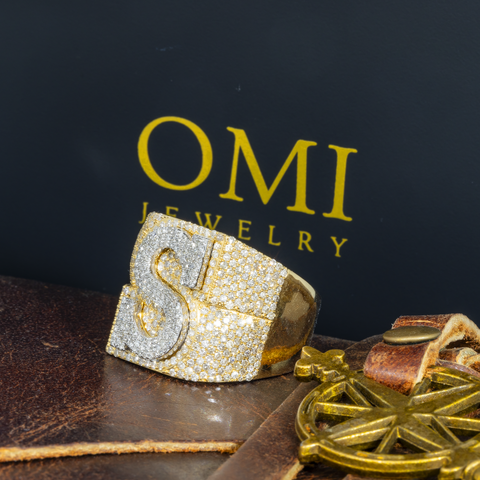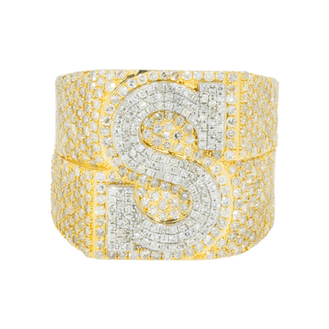 10K GOLD DIAMOND INITIAL LETTER S STATEMENT RING 2.68 CT