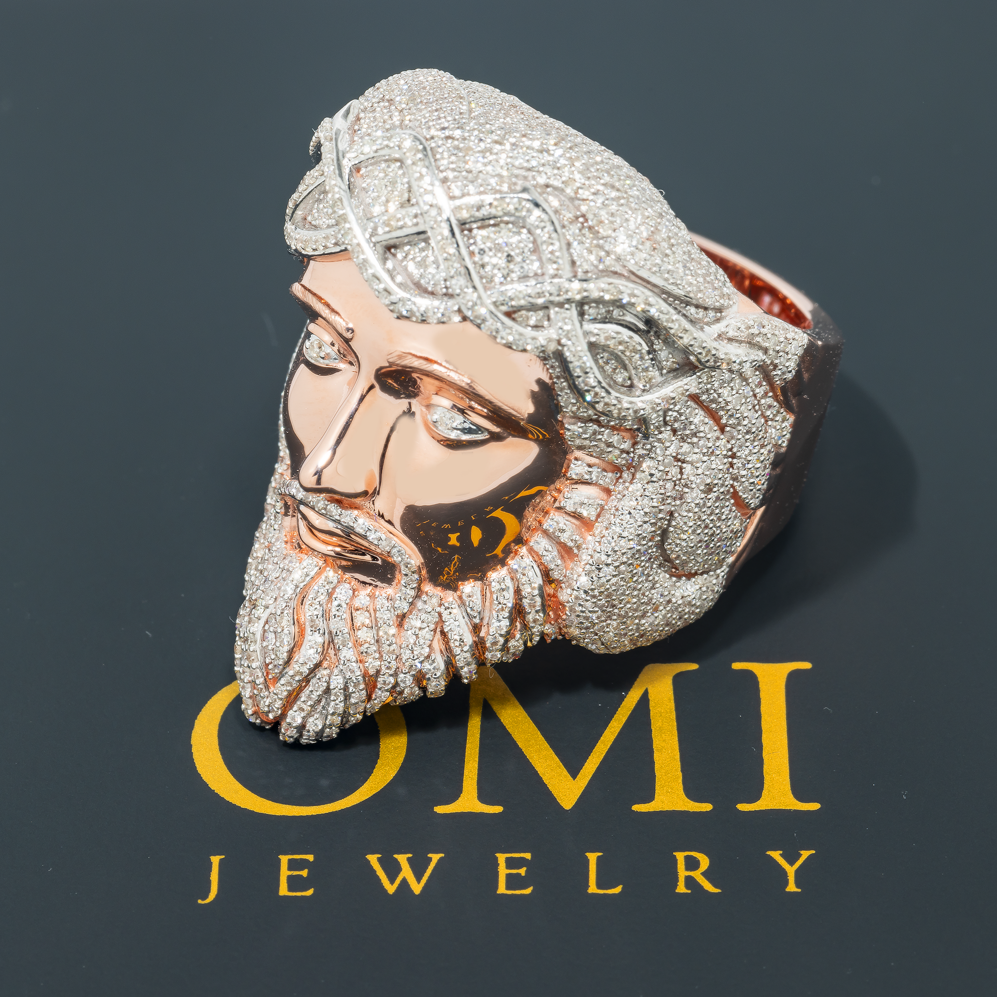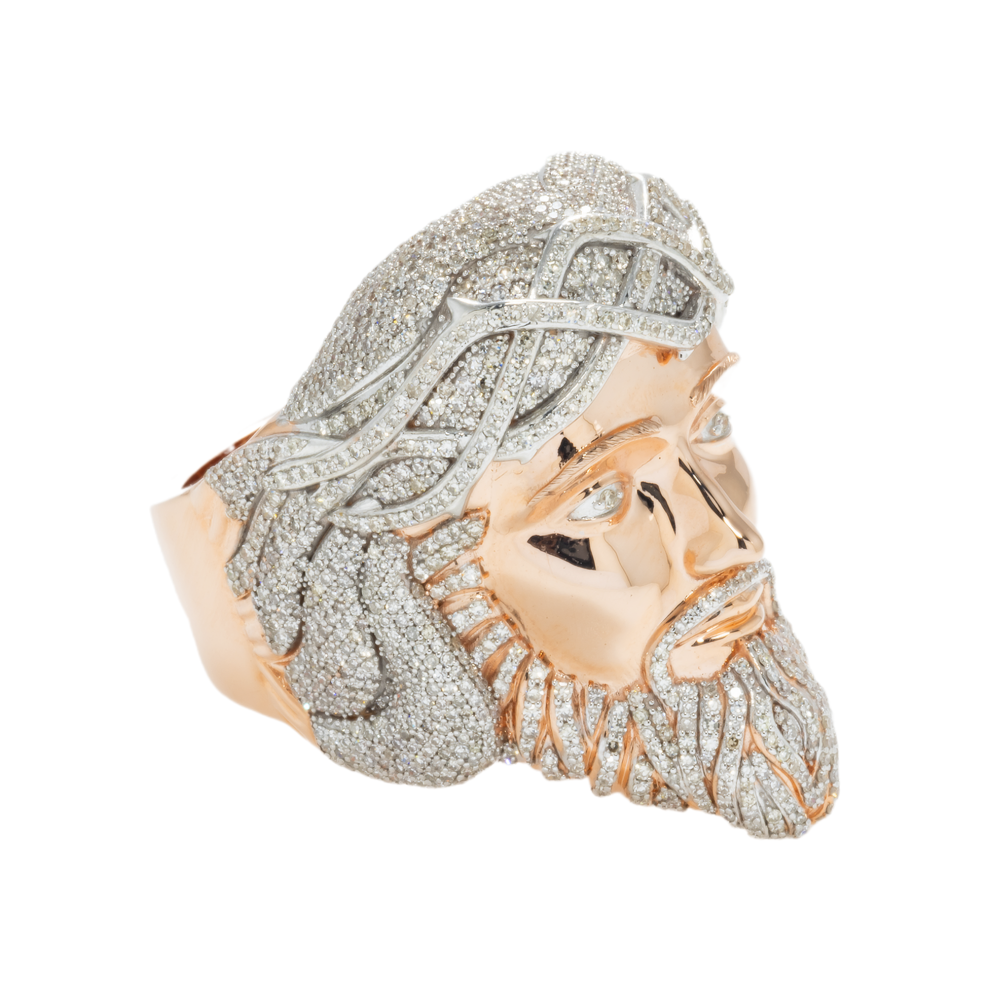 10K GOLD DIAMOND JESUS HEAD STATEMENT RING 2.87 CT