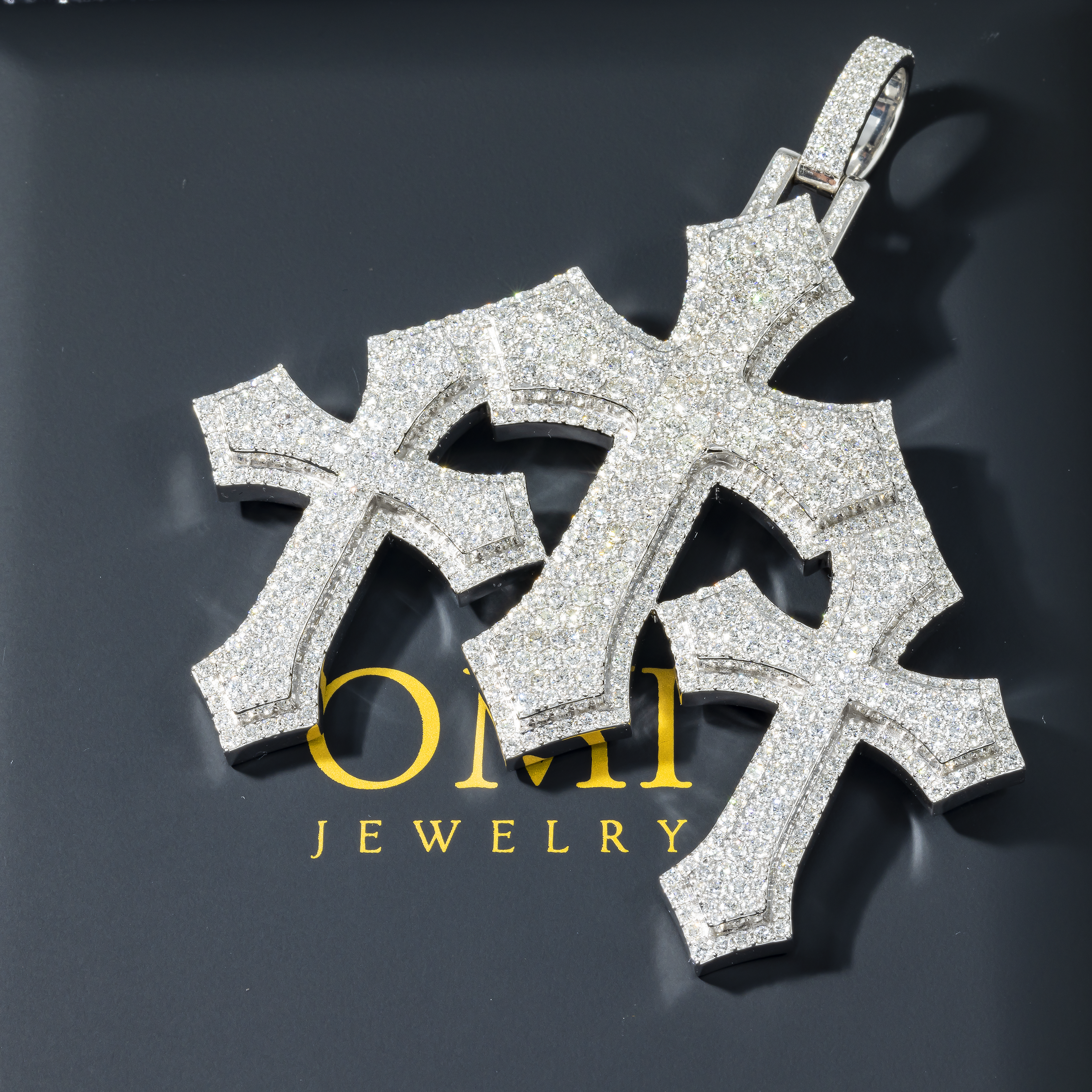10K GOLD DIAMOND TRIPLE CROSSES PENDANT 10.36 CT