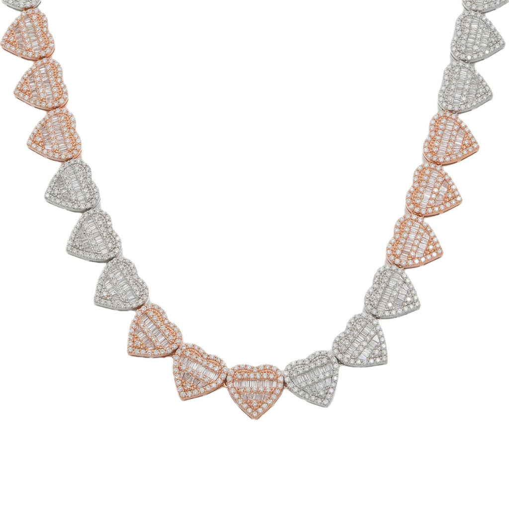 10K GOLD HEART BAGUETTE DIAMOND TWO TONE CHAIN 14.06 CT