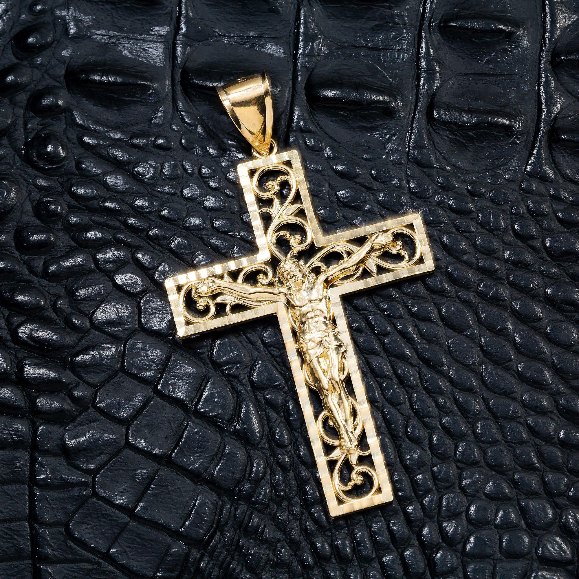 10K GOLD HOLLOW CRUCIFIX PENDANT 2.9"