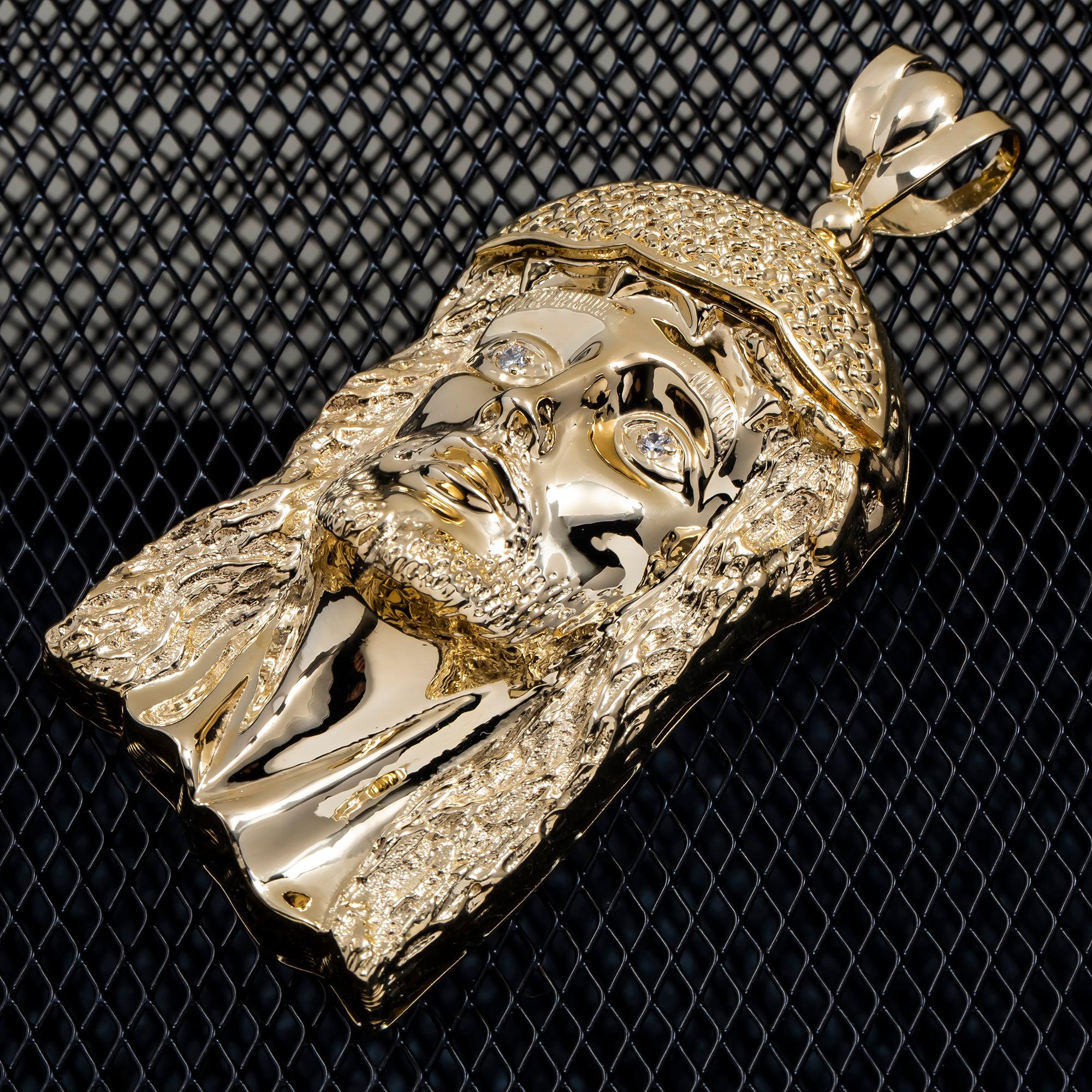 10K GOLD JESUS HEAD WITH ROUND DIAMOND EYES PENDANT 77.0G