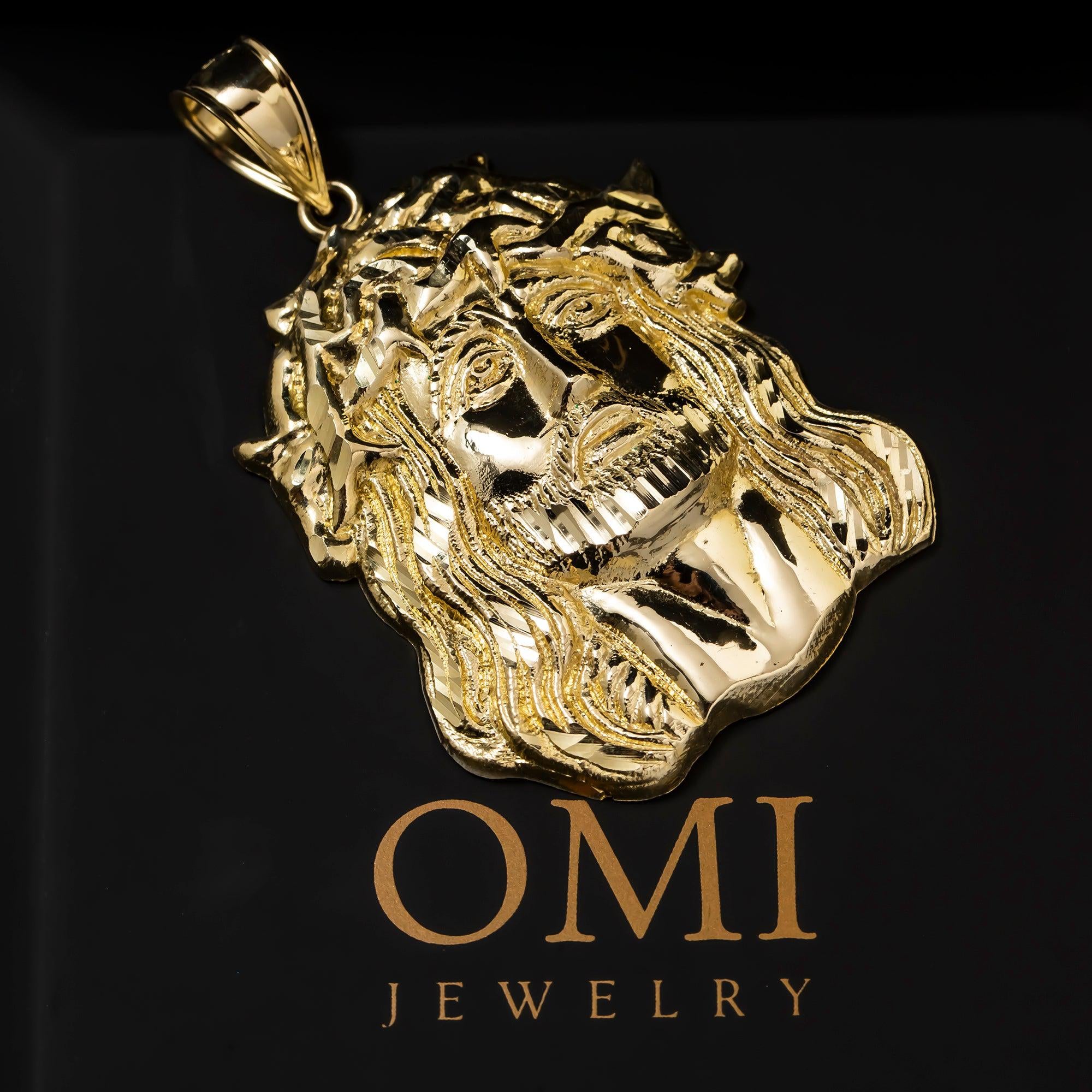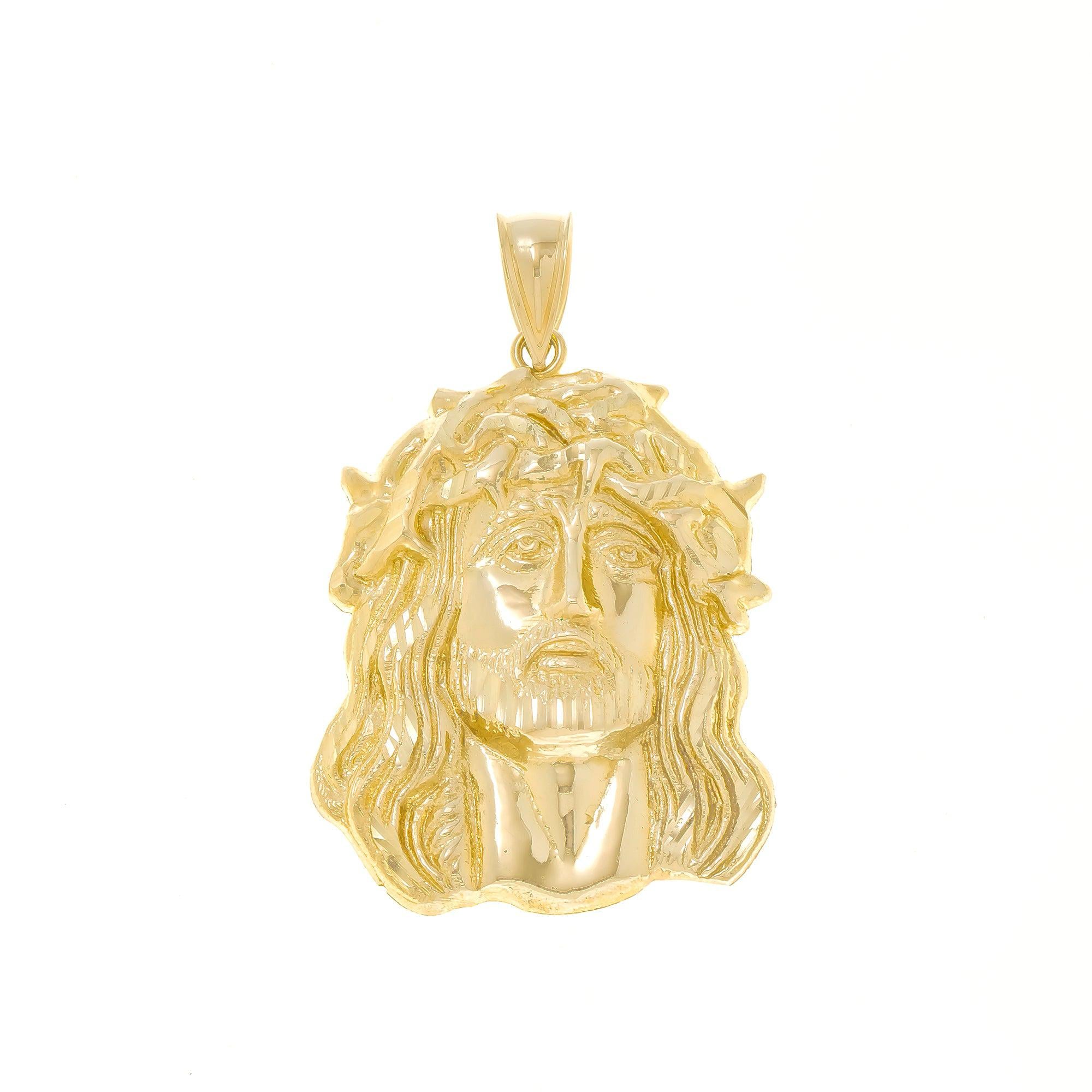 10K GOLD JESUS HEAD WITH CROWN OF THORNS PENDANT 14.9G