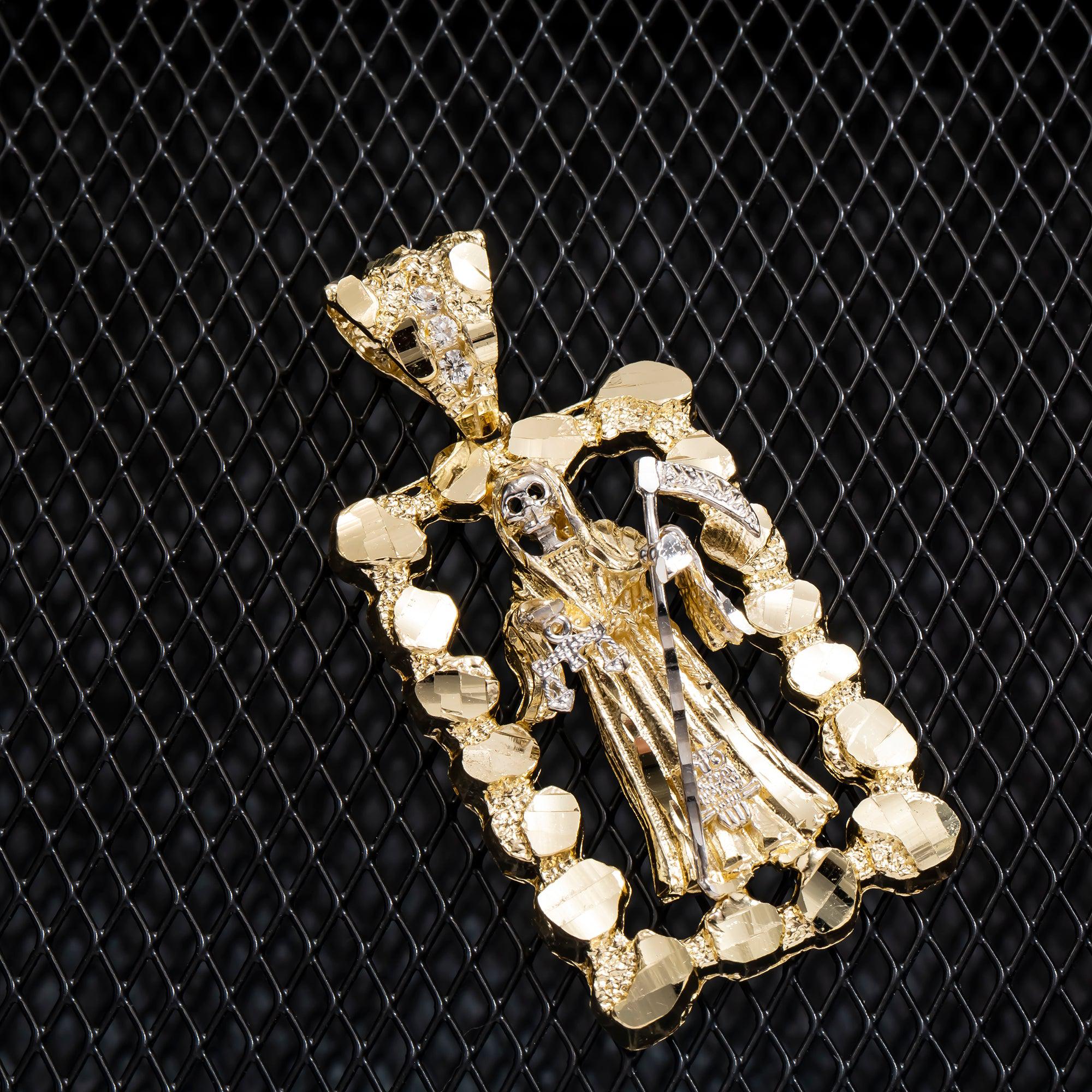 10K GOLD NUGGET TWO TONE GRIM REAPER PENDANT 18.3G