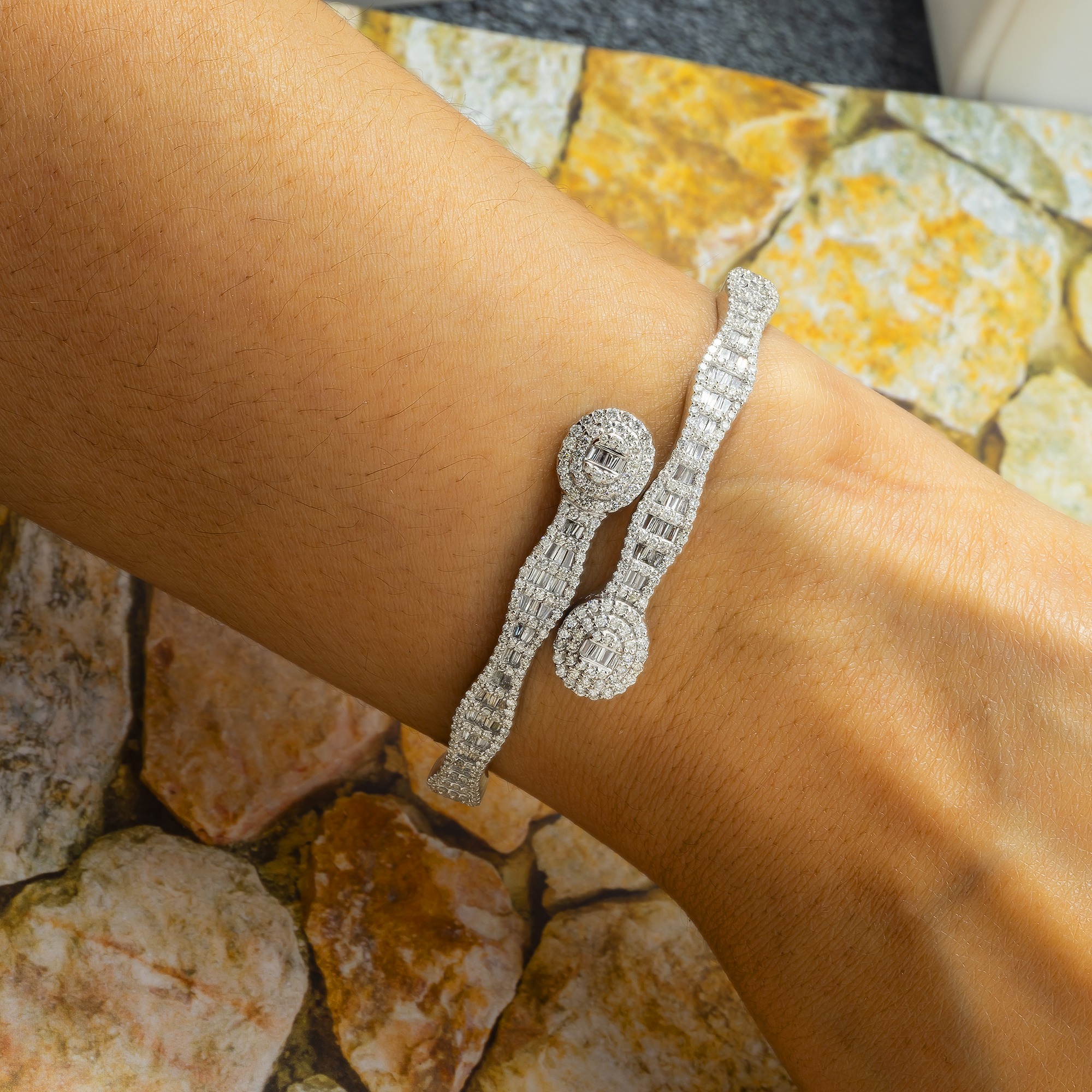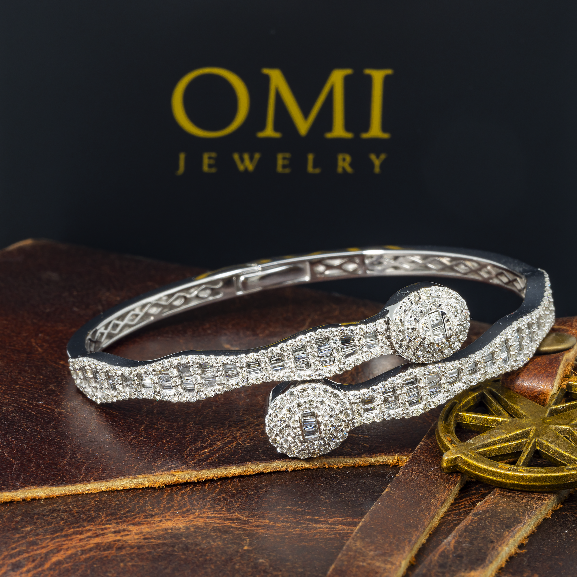 10K GOLD ROUND AND BAGUETTE DIAMOND OVAL BYPASS BANGLE 2.75 CT