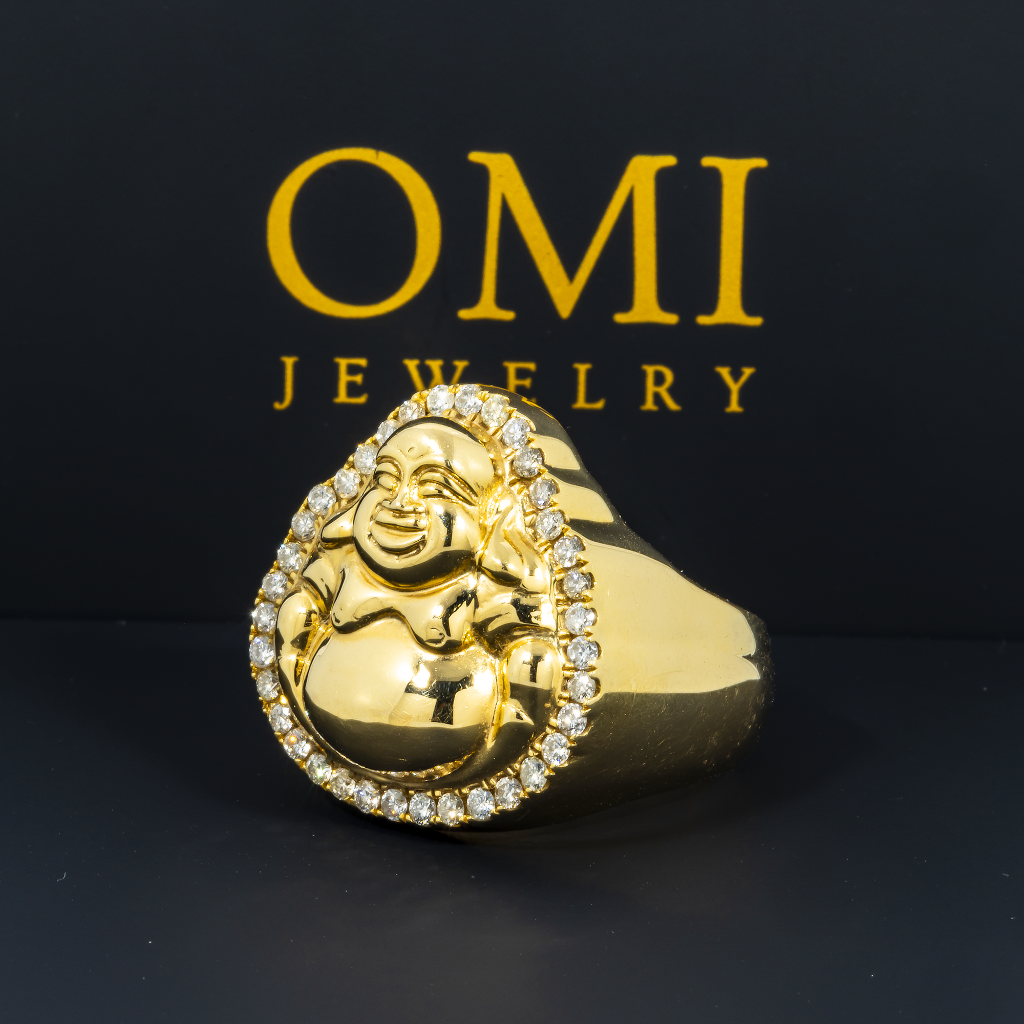 10K GOLD ROUND DIAMOND BUDDHA RING 0.83 CT