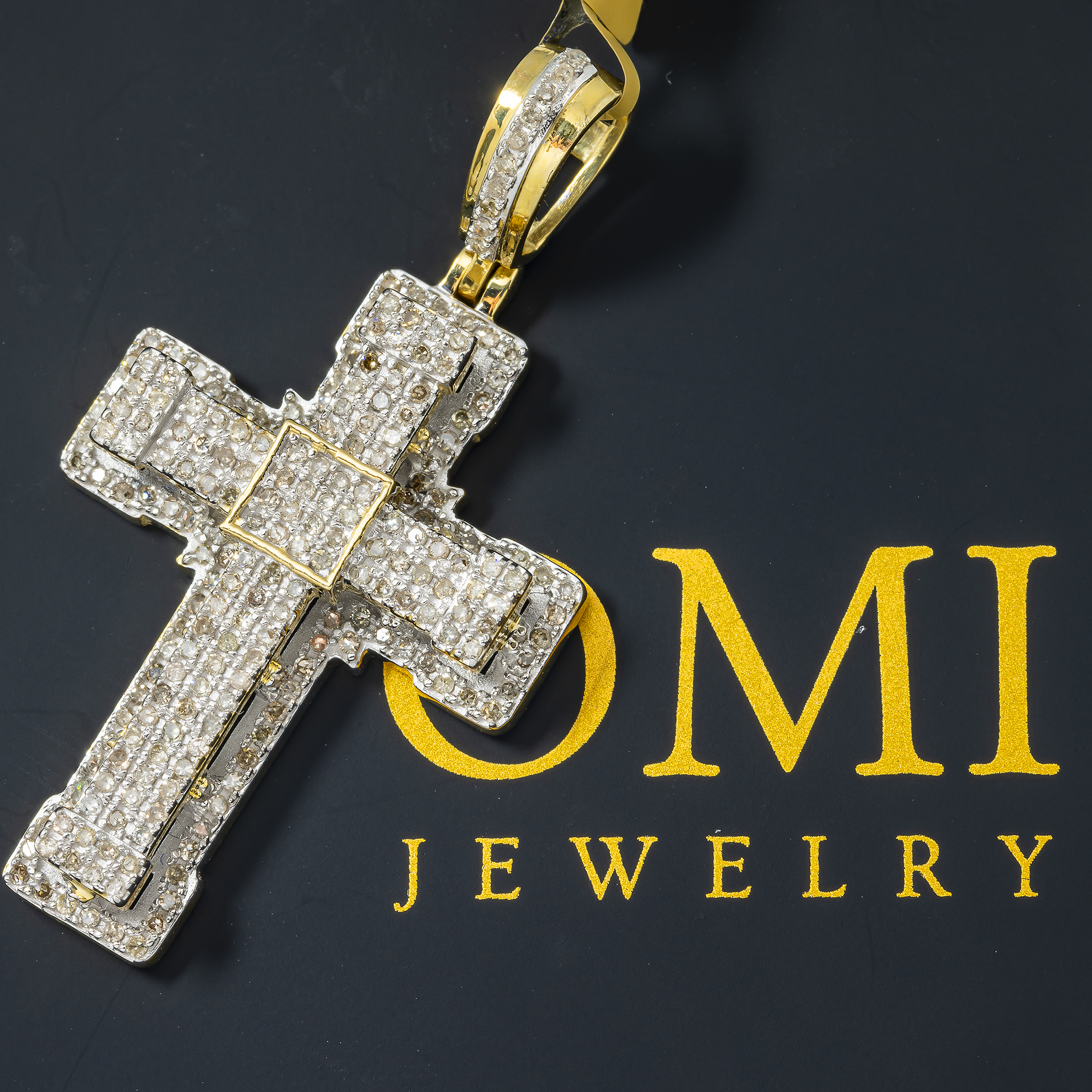 10K GOLD ROUND DIAMOND CROSS PENDANT 0.73 CT