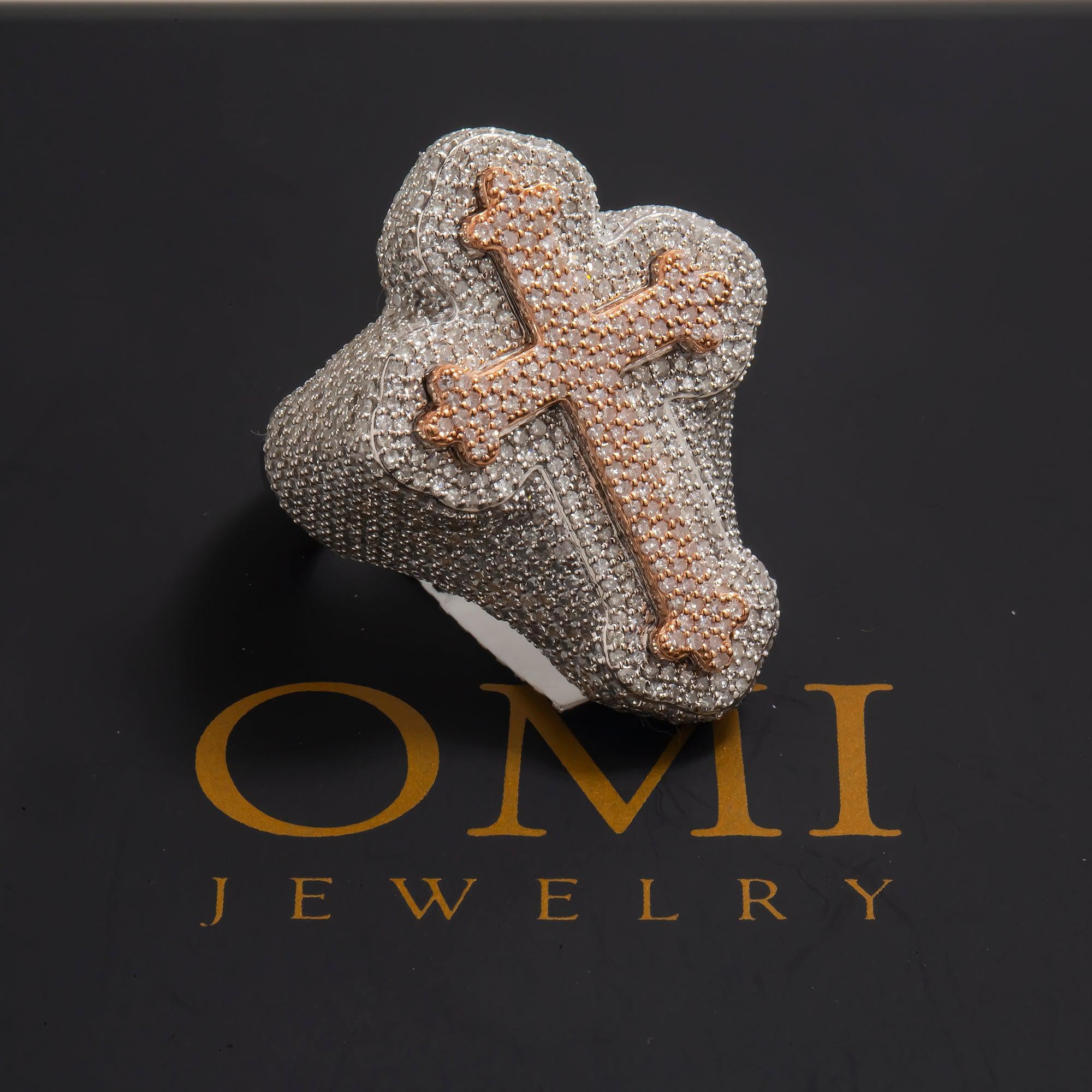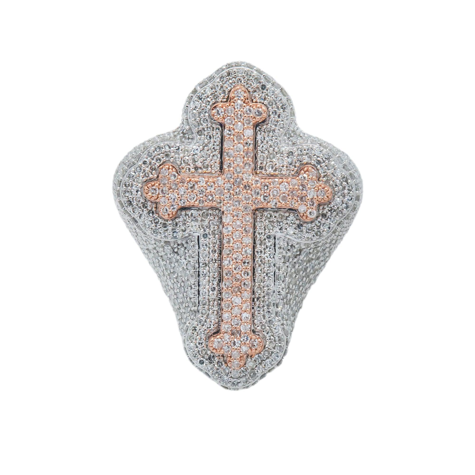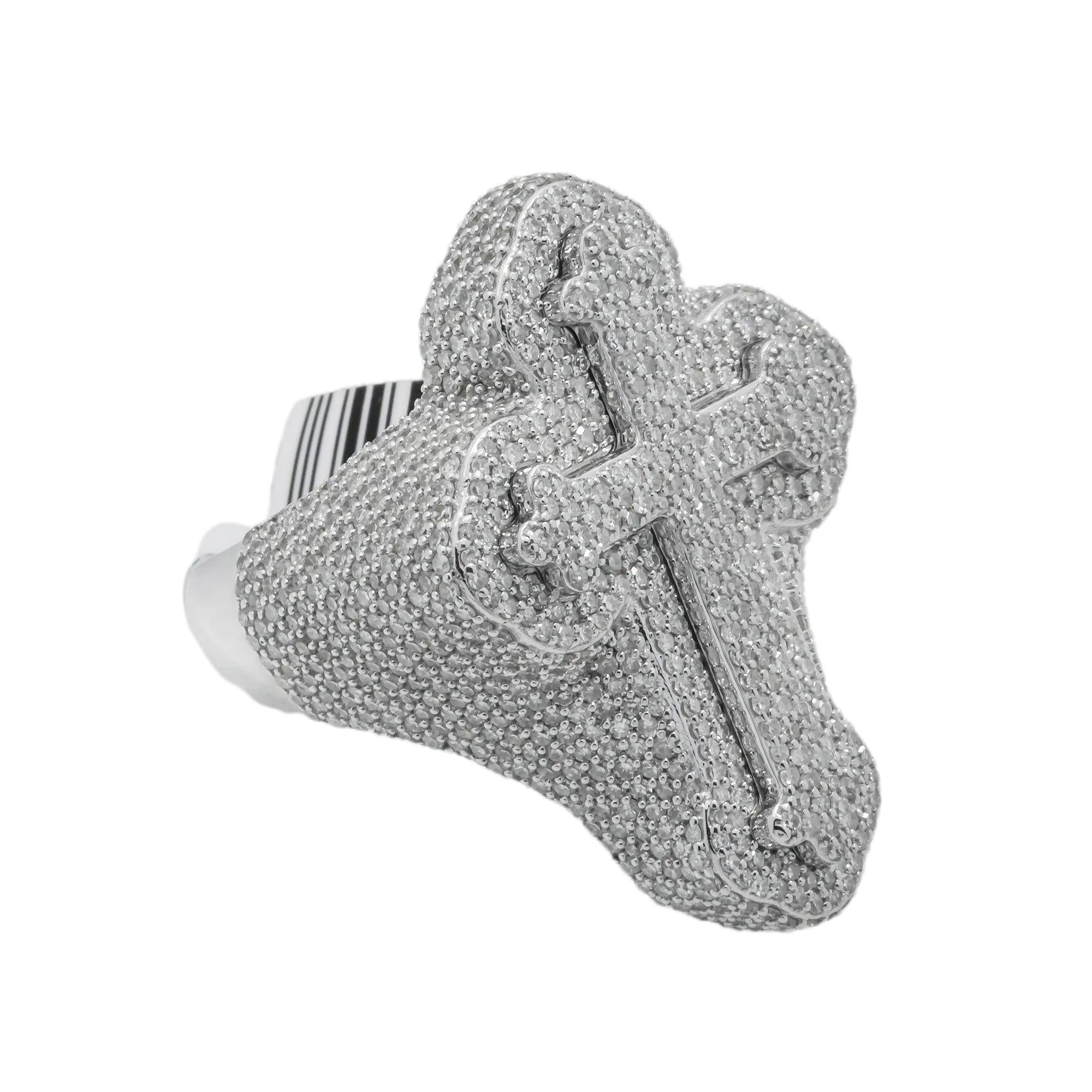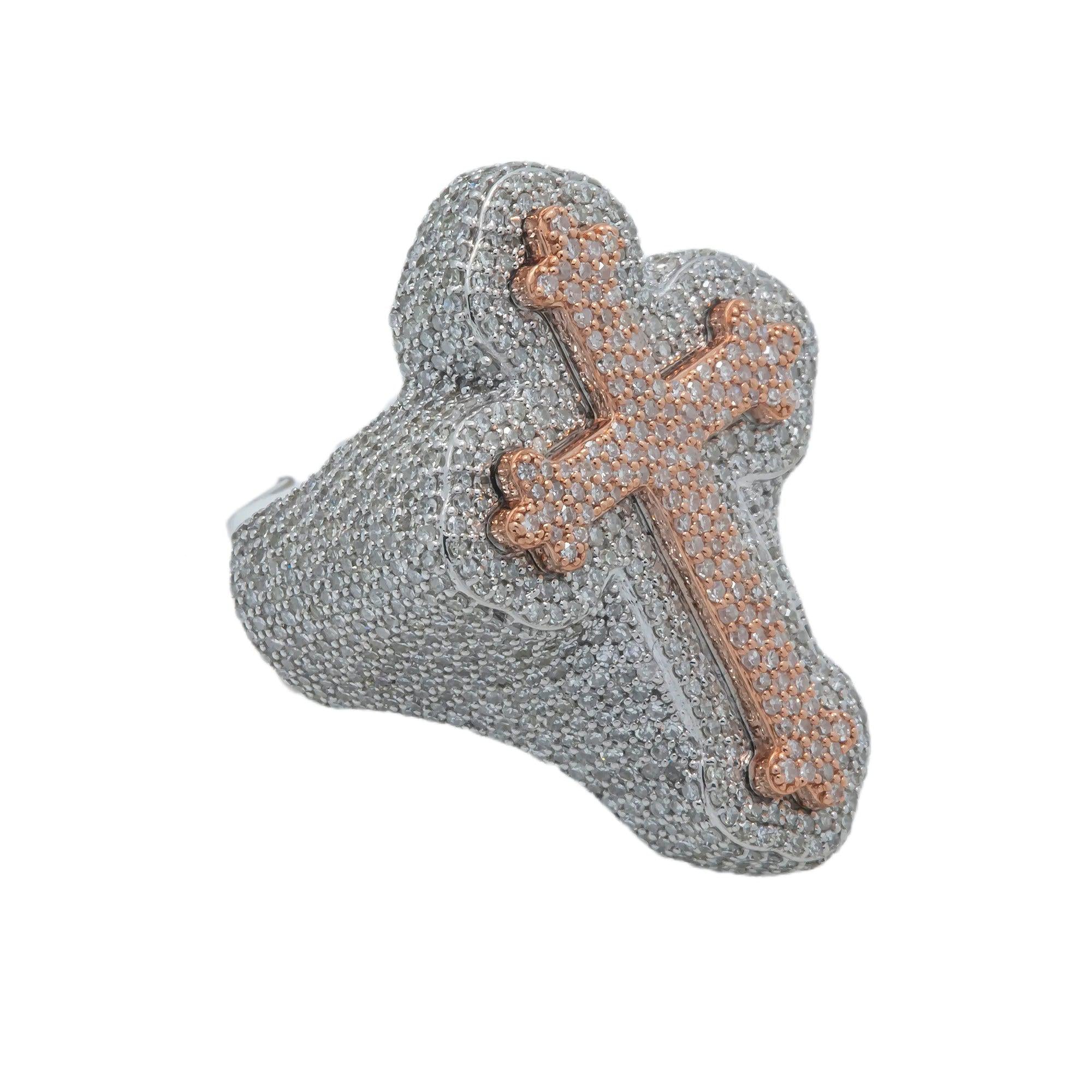10K GOLD ROUND DIAMOND CROSS RING 2.71 CT