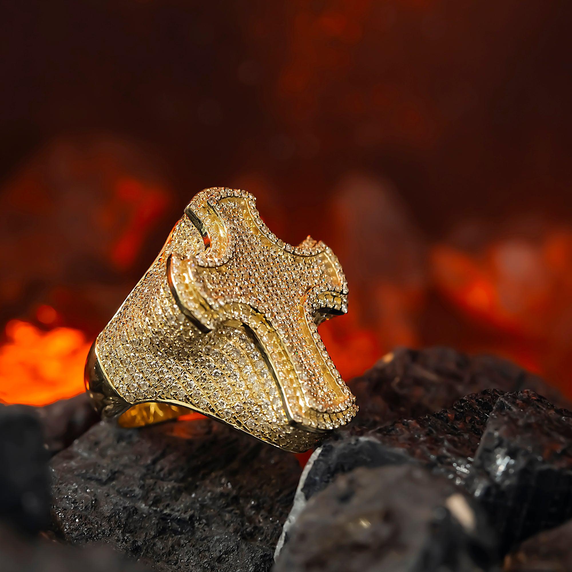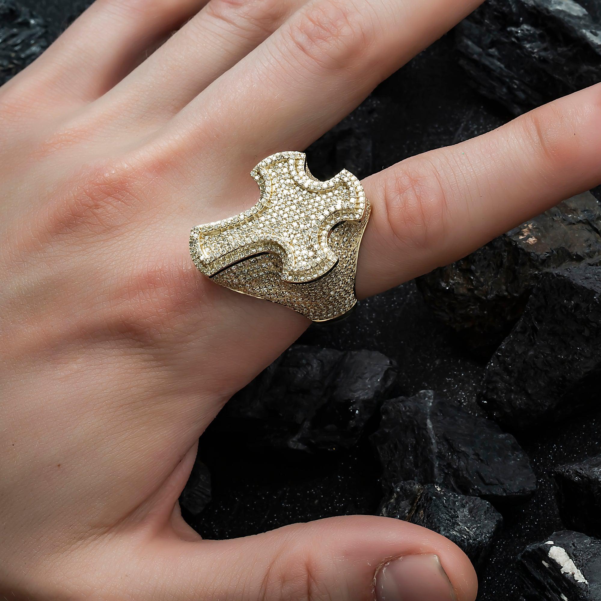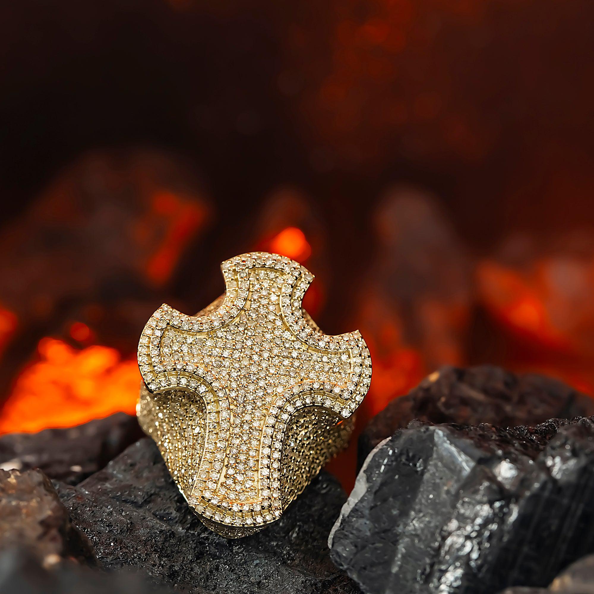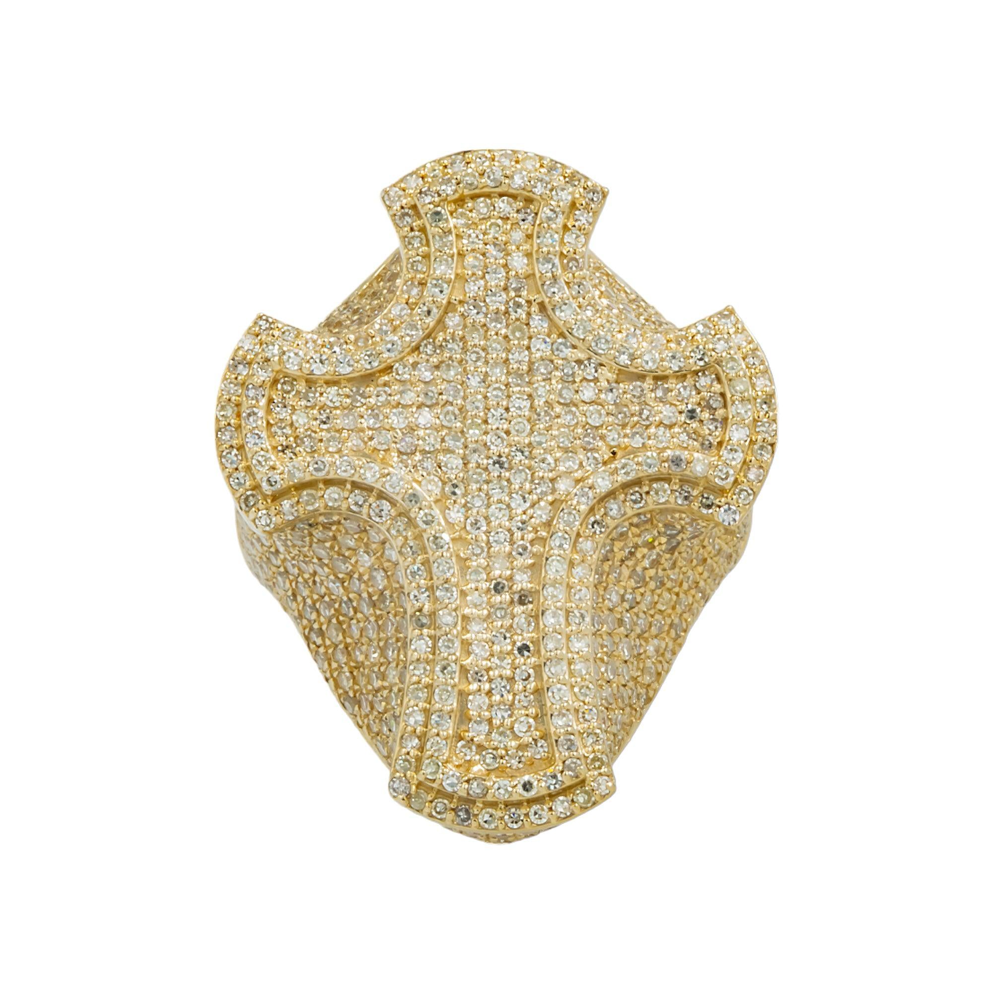 10K GOLD ROUND DIAMOND CROSS STATEMENT RING 3.90 CT