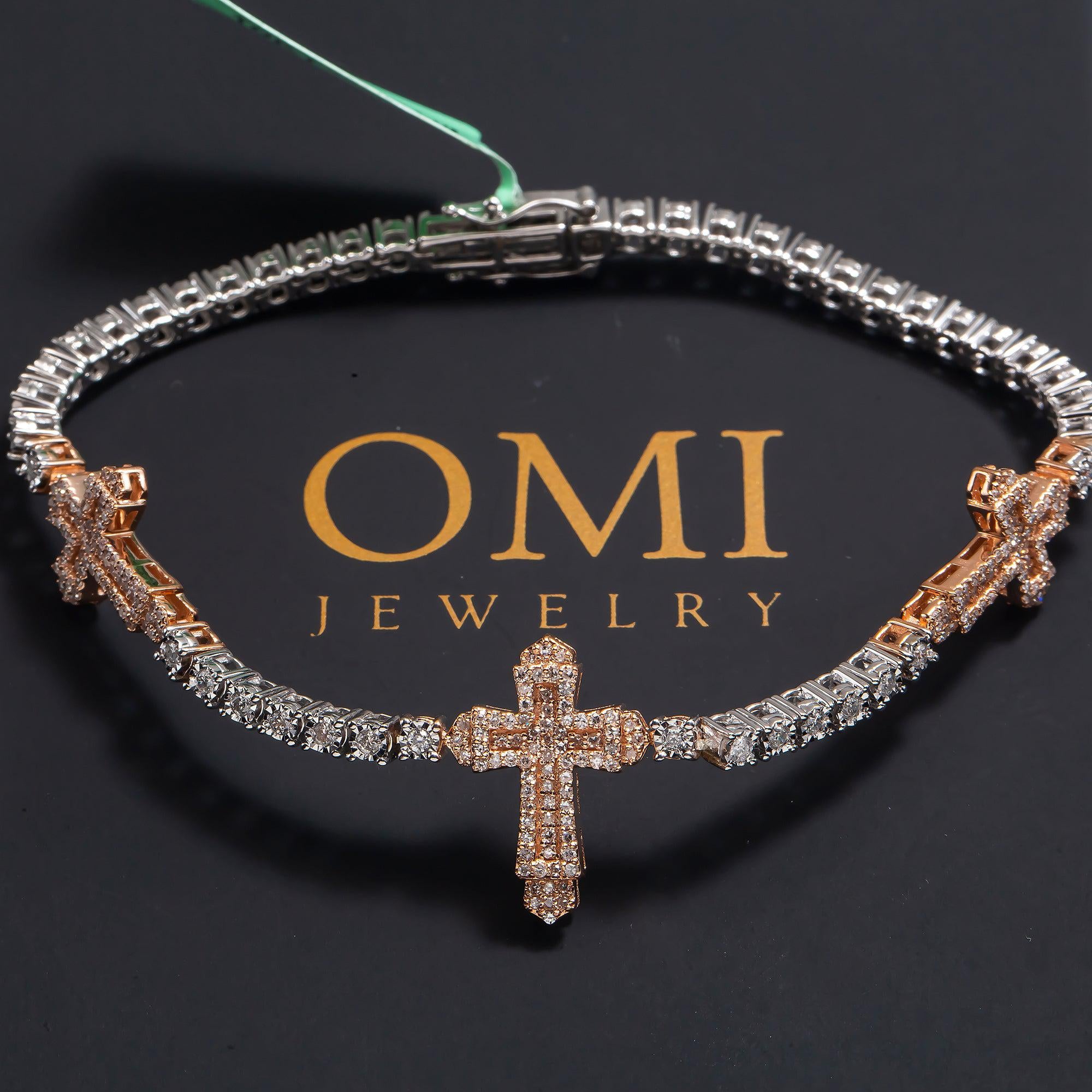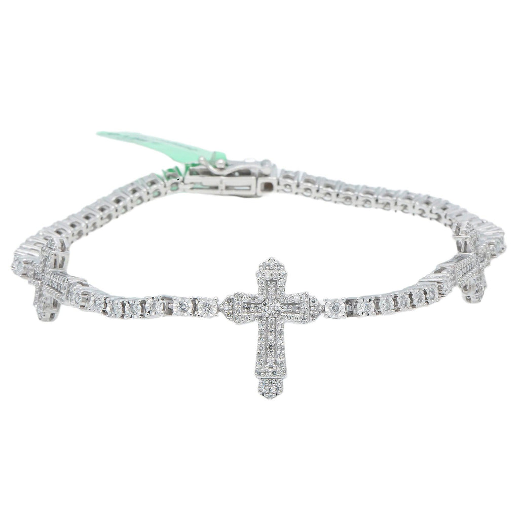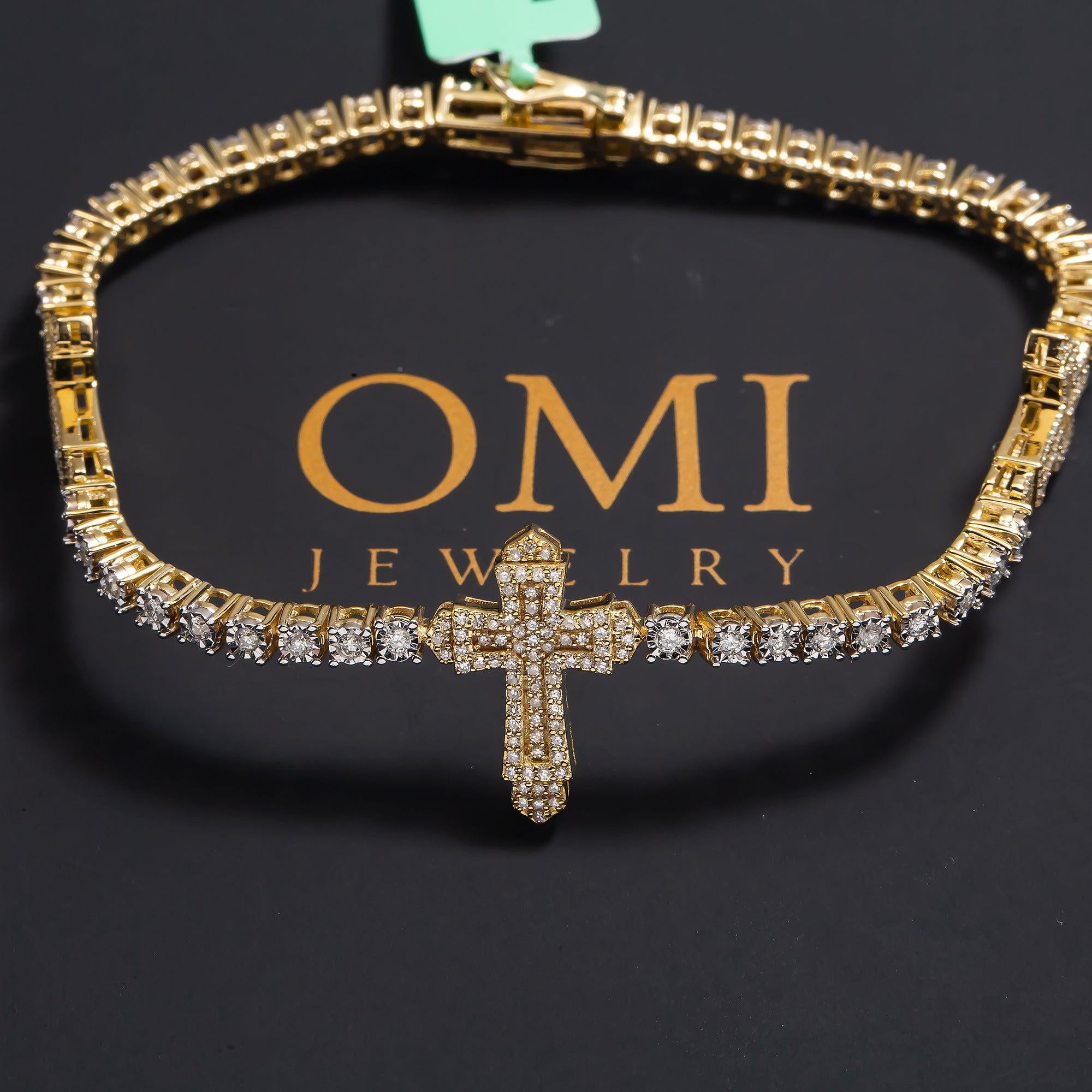 10K GOLD ROUND DIAMONDS CROSS TENNIS BRACELET 1.25 CT
