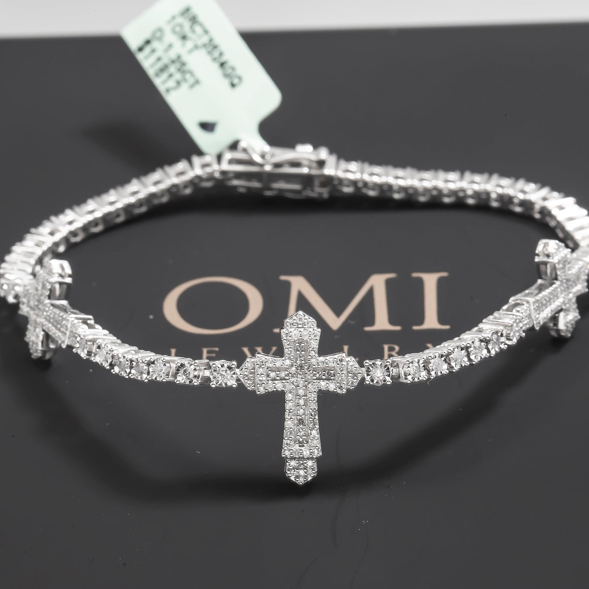 10K GOLD ROUND DIAMOND CROSS TENNIS BRACELET 1.25 CT