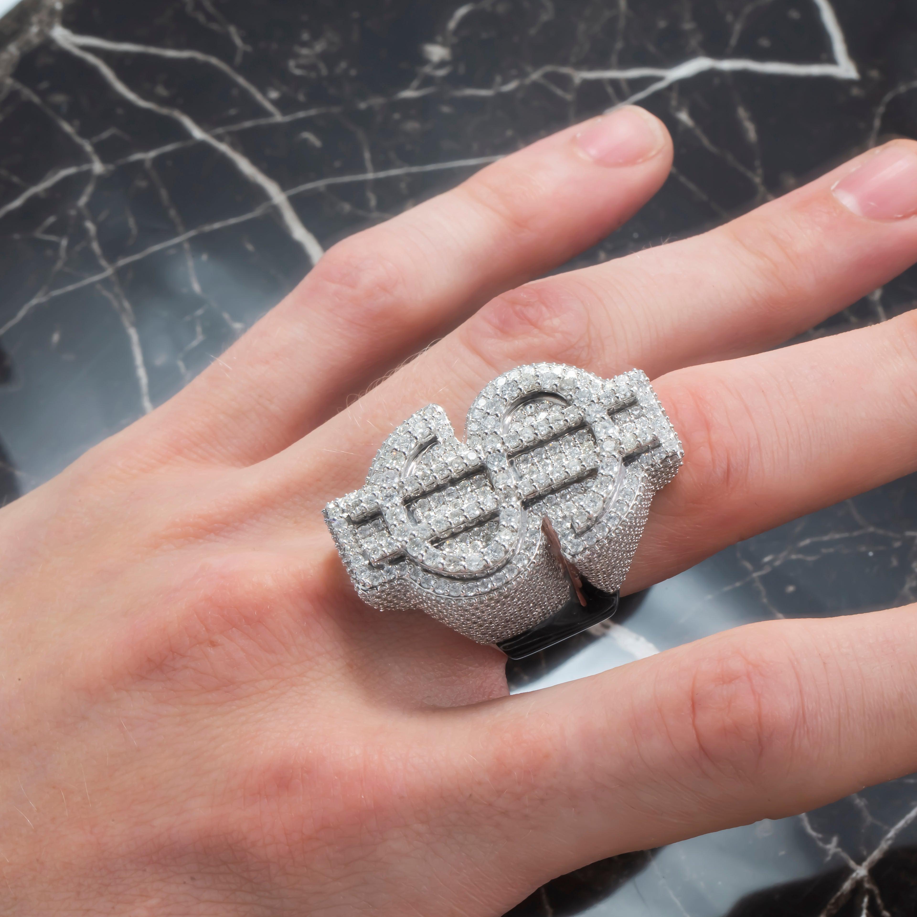 10K GOLD ROUND DIAMOND DOLLAR SIGN STATEMENT RING 6.56 CT
