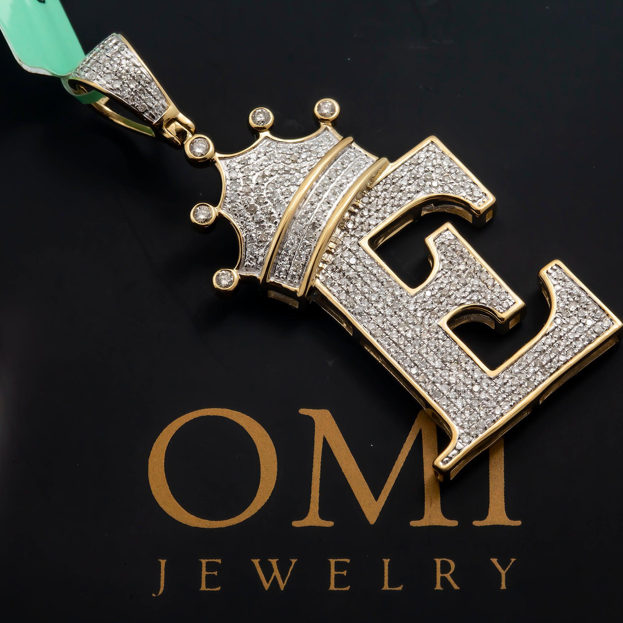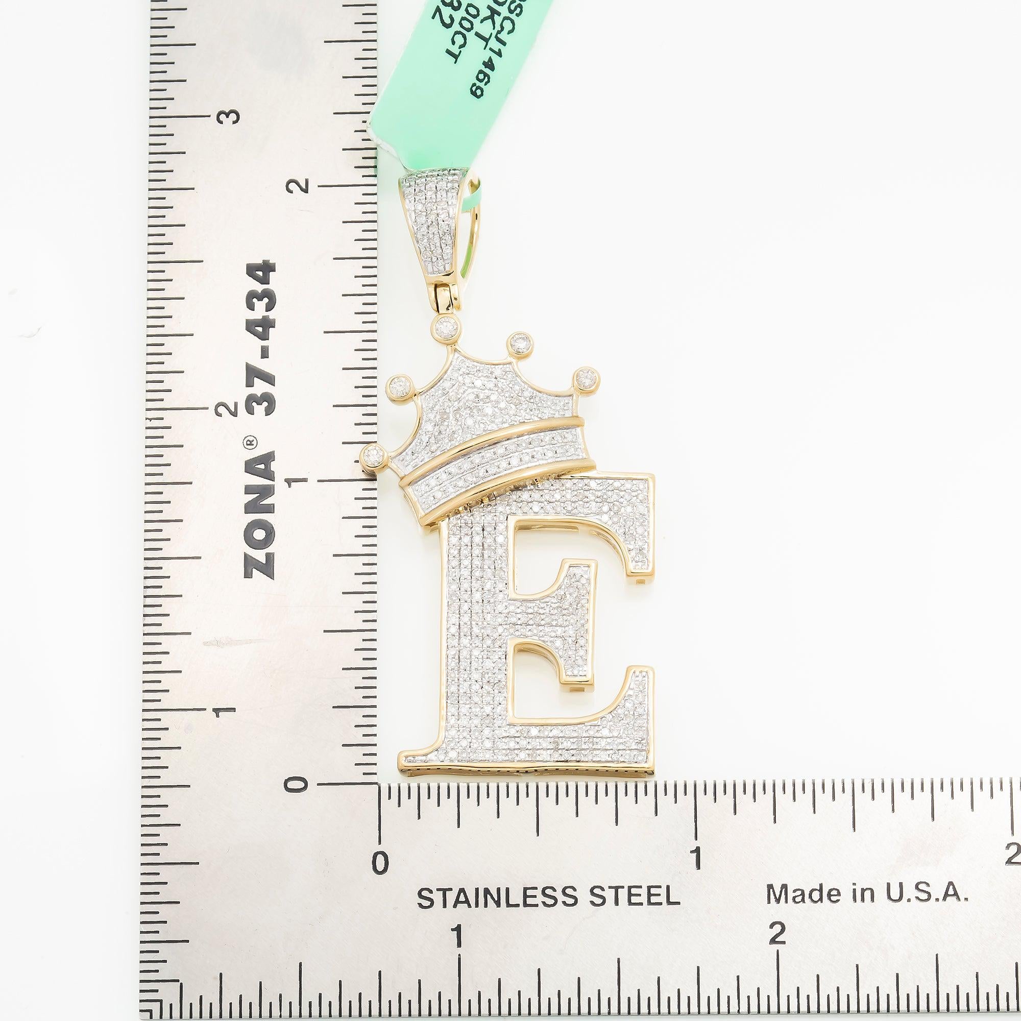 10K GOLD ROUND DIAMOND INITIAL E WITH CROWN PENDANT 1.00 CT