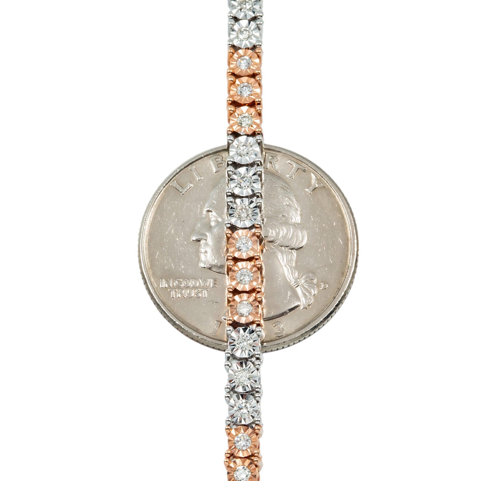 10K GOLD TRICOLOR 3.3MM ROUND DIAMOND TENNIS CHAIN 3.65 CT