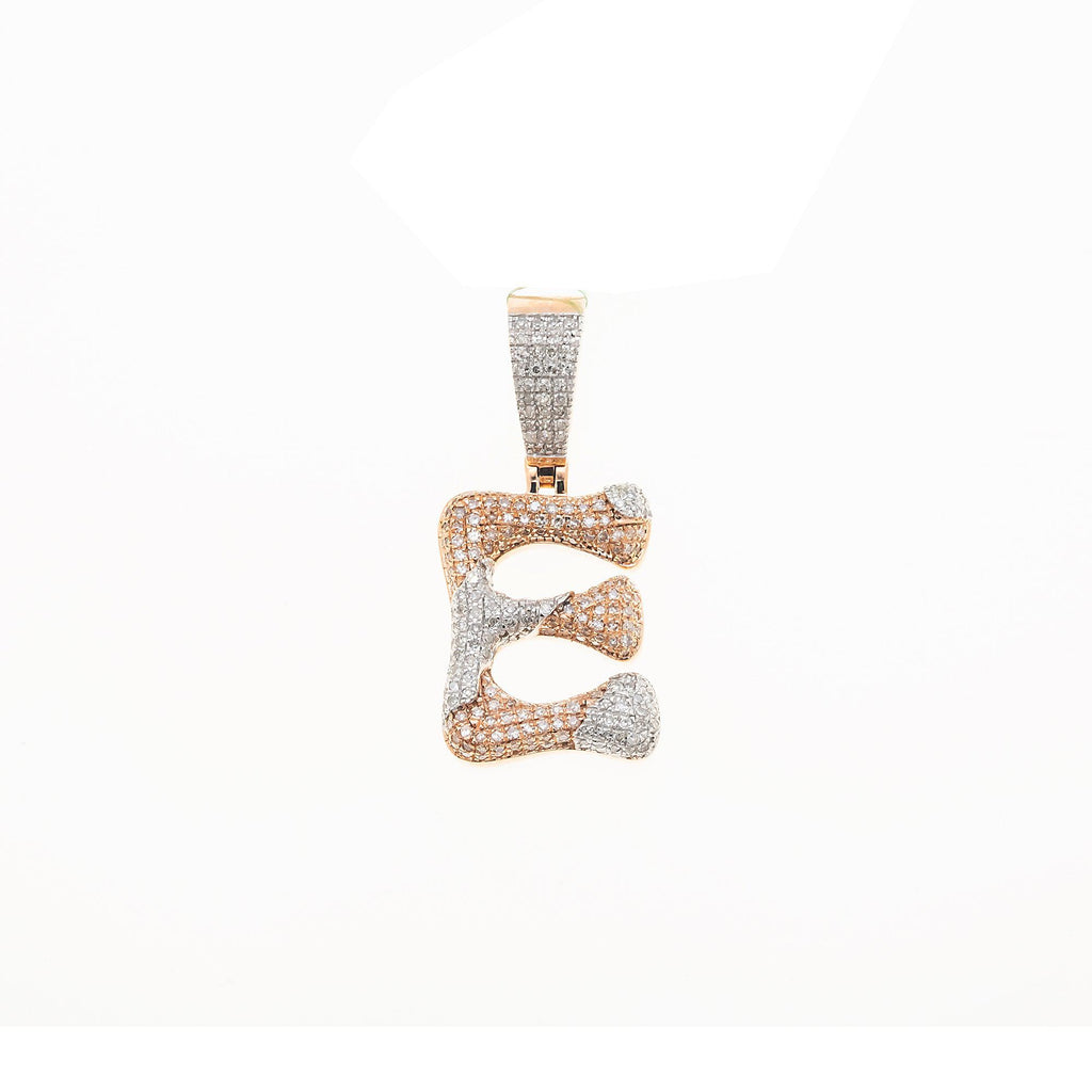10K GOLD ROUND DIAMOND TWO TONE INITIAL E PENDANT 0.89 CT