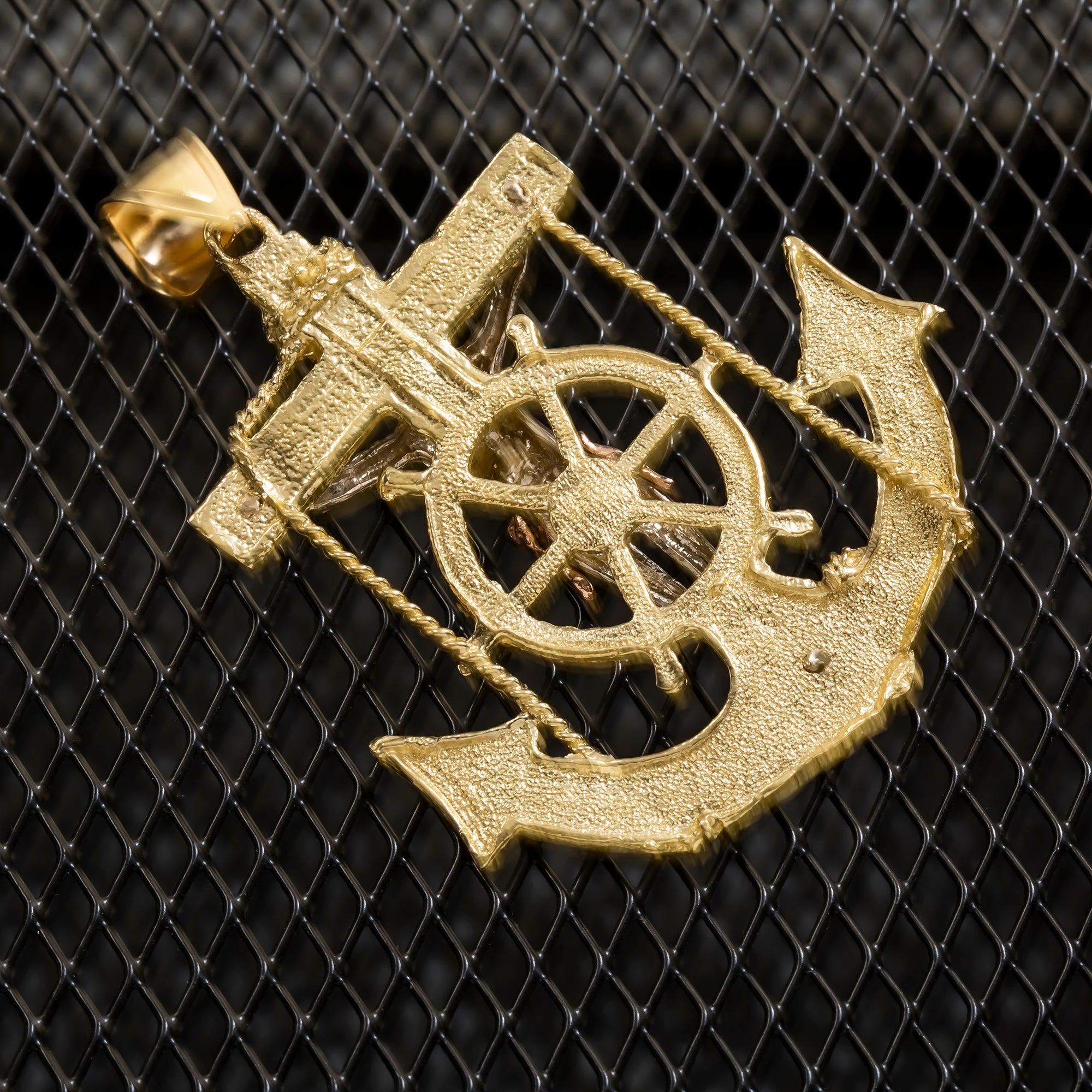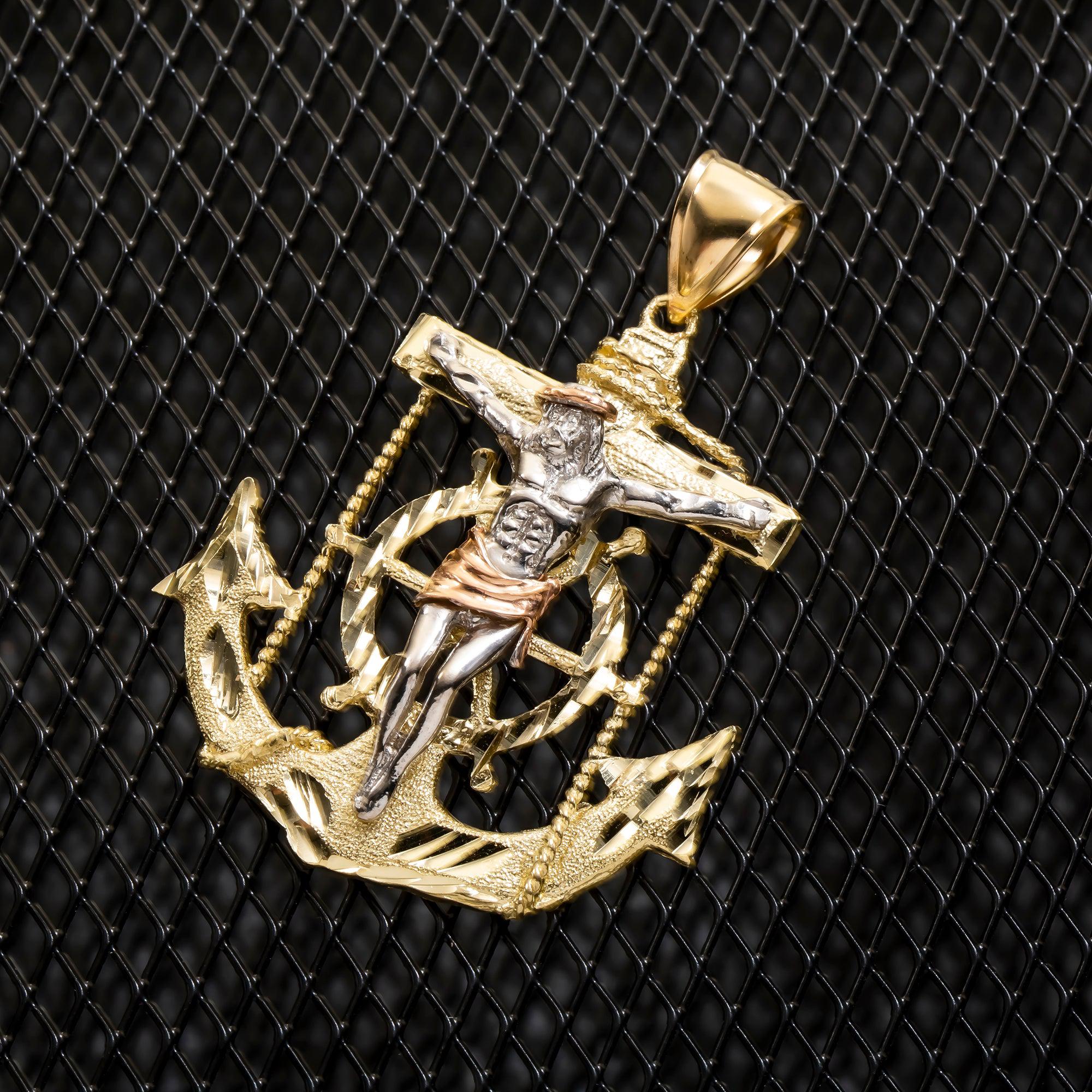 10K GOLD TRICOLOR CRUCIFIX ANCHOR PENDANT 15.9G