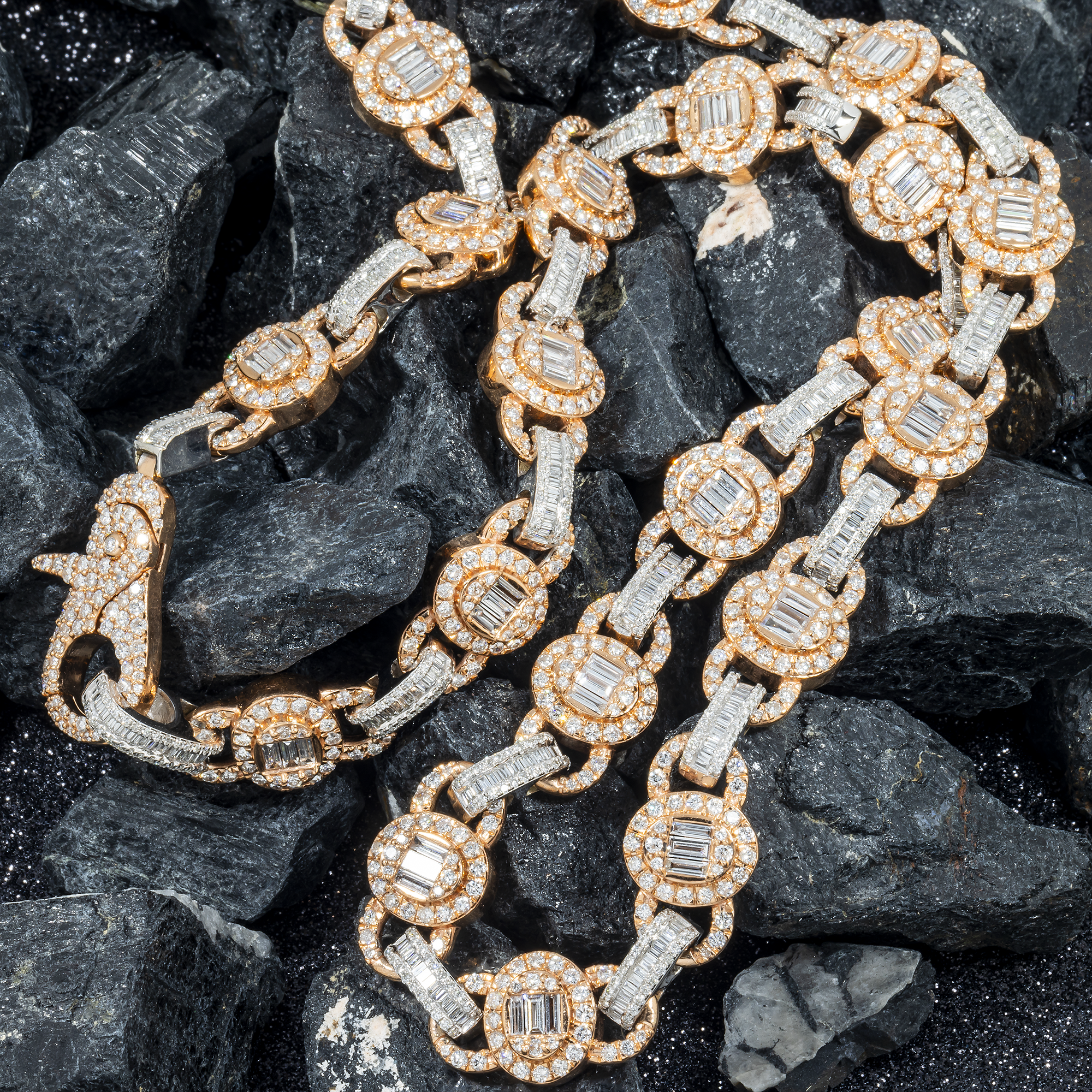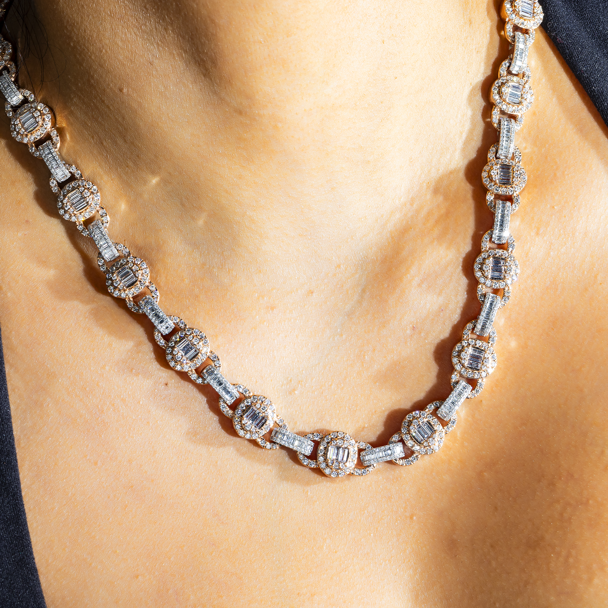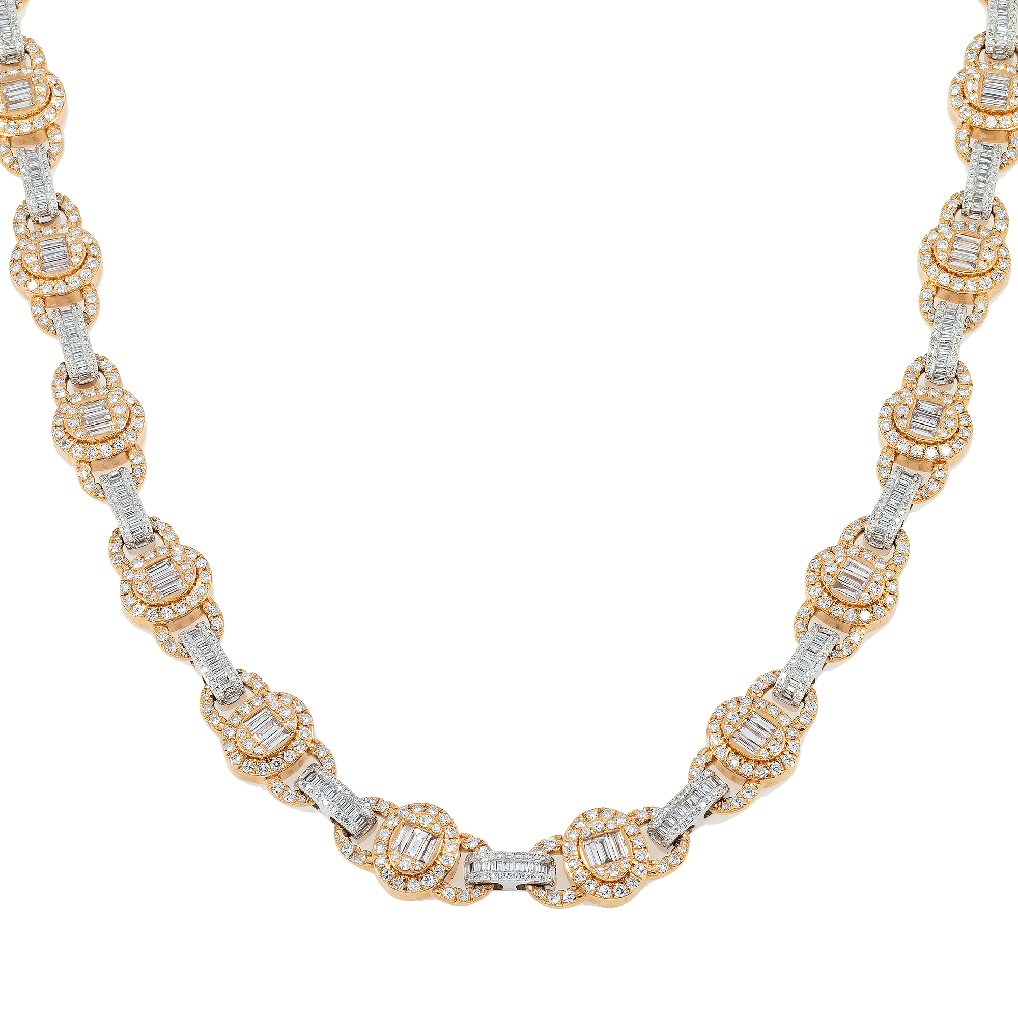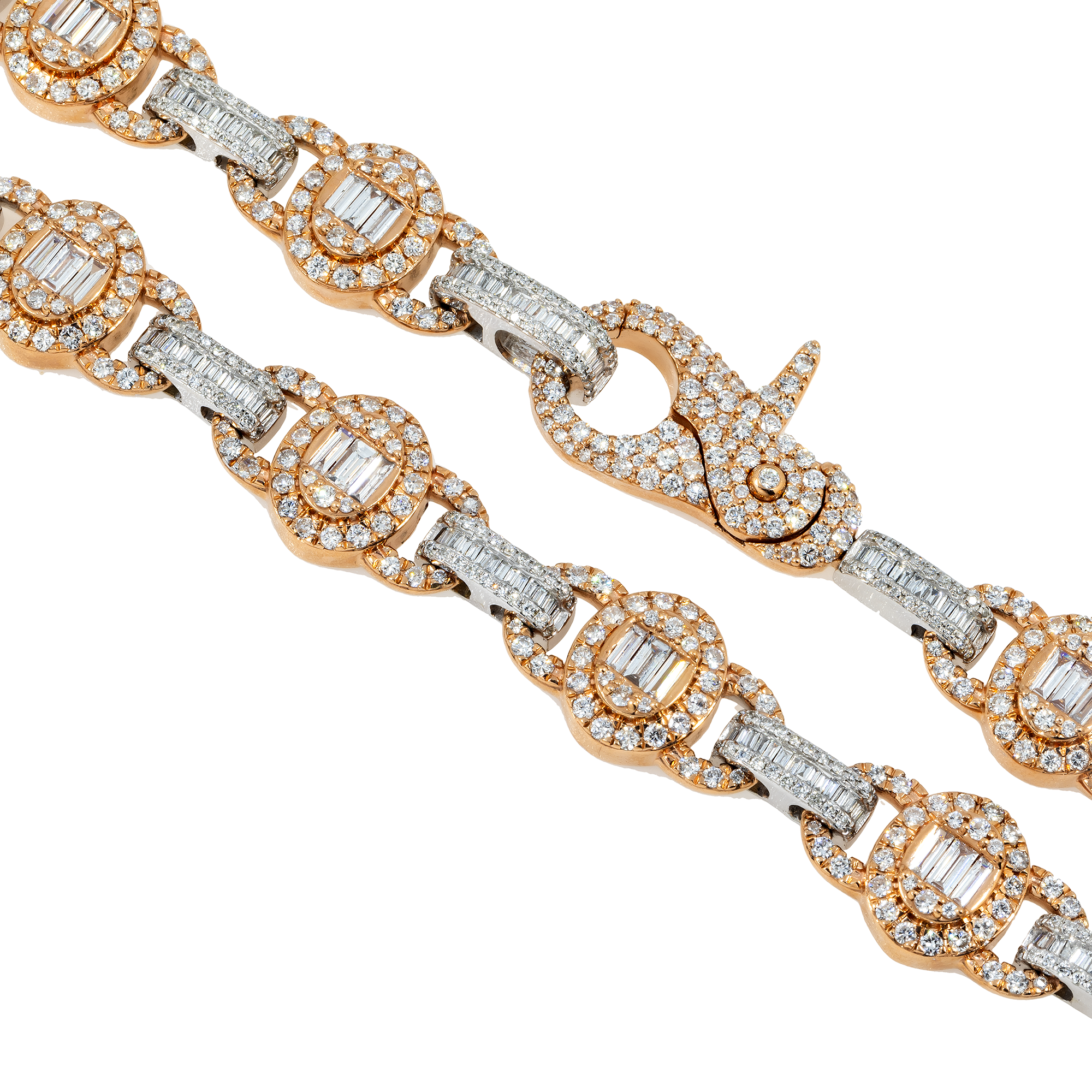 10K GOLD TWO TONE BAGUETTE AND ROUND DIAMOND MARINER LINK CHAIN 23.43 CTW