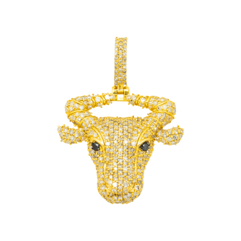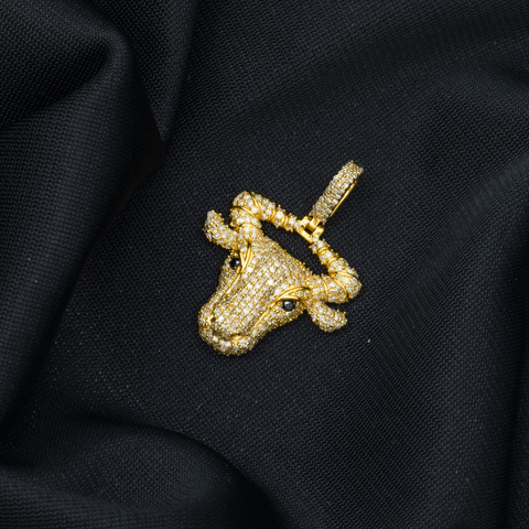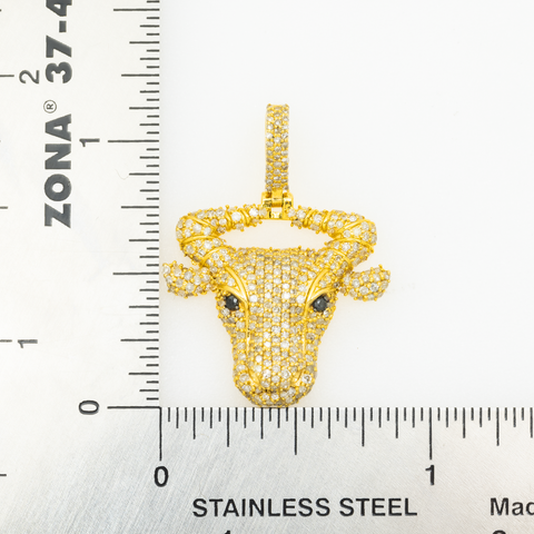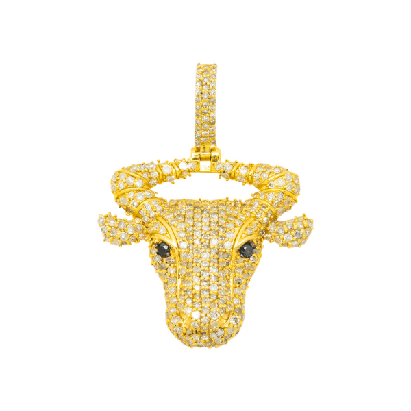 10K GOLD WHITE AND BLACK DIAMOND BULL HEAD PENDANT 1.44 CT